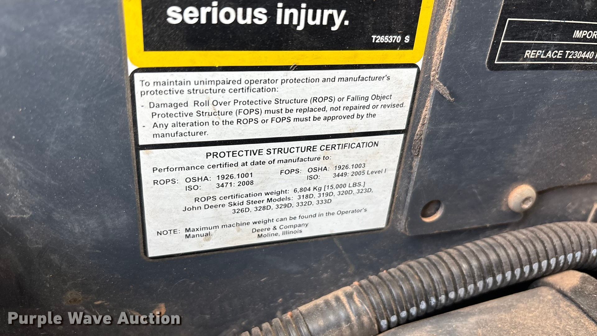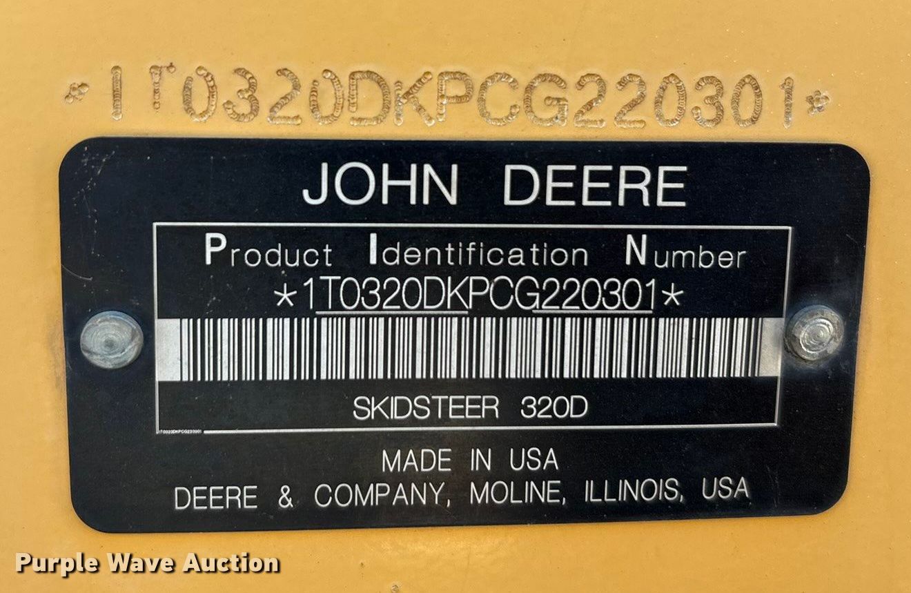 Purple Wave is selling a used Skid Steer Loader in Texas. This item is a 2012 John Deere 320D skid steer loader with the following: Hours: 1,815 on meter, Serial: 1T0320DKPCG220301