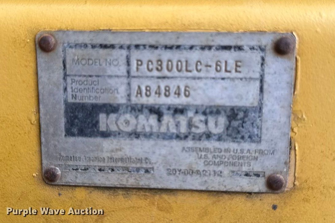 Purple Wave is selling a used Hydraulic Excavator in Missouri. This item is a 2002 Komatsu PC300LC-6 excavator with the following: Hours: Unknown, Serial: A84846