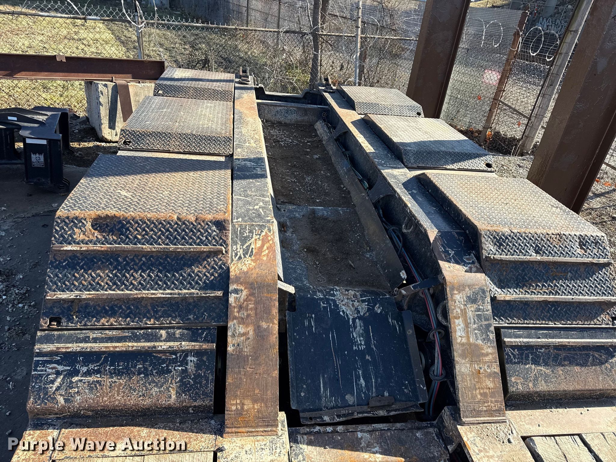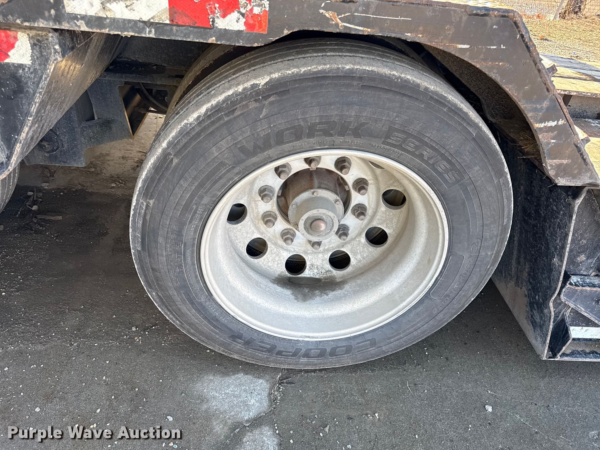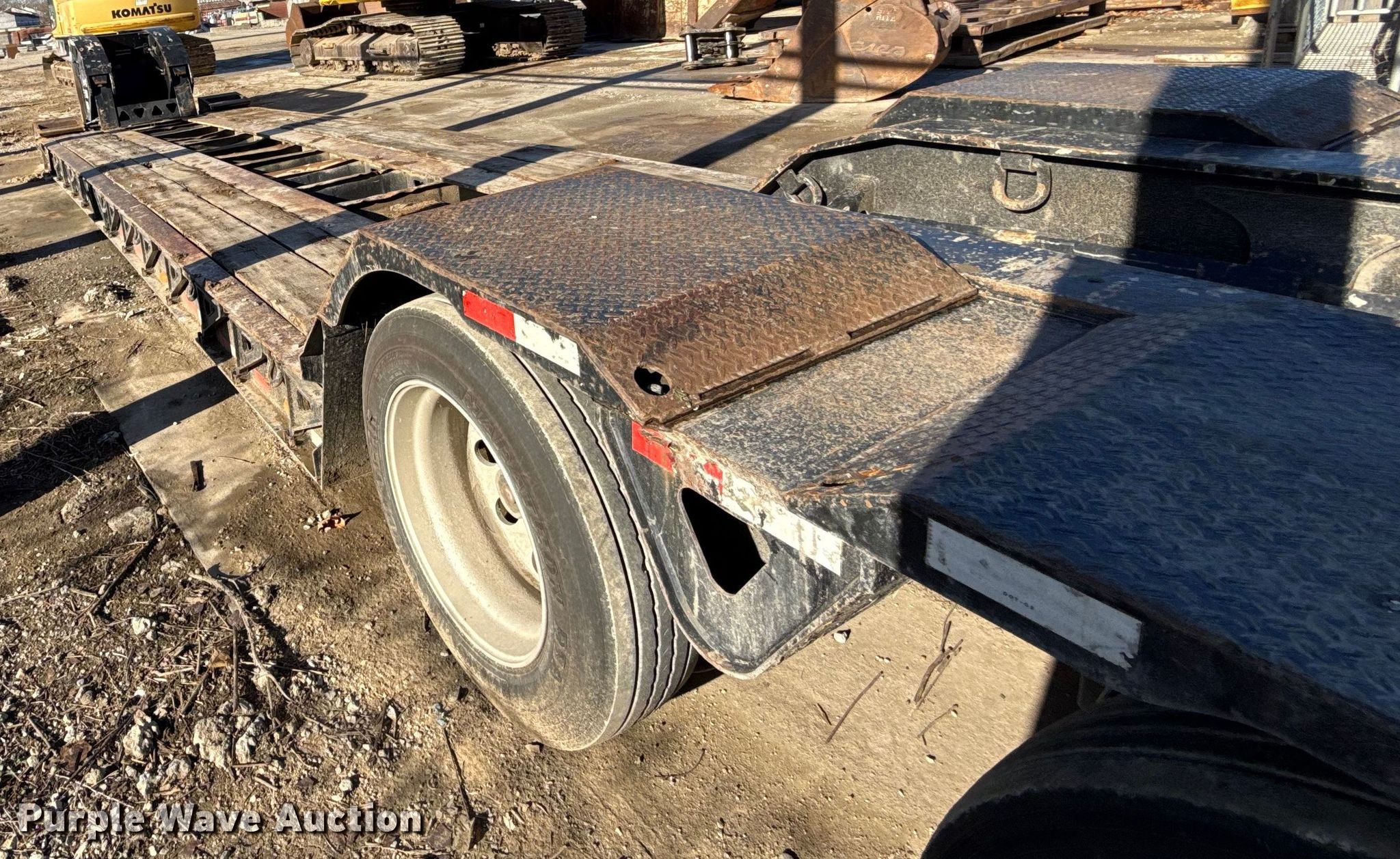 2014 Trail King lowboy equipment trailer. VIN: 1TKJ05339EM054901. Dimensions Overall Length: 50', Width: 102", Deck Length: 25' 6", Width: 102", Rear deck length: 14'. Features Deck type: Wood, Outriggers: Swing-out, Neck type: Detachable. Chassis Suspension: Air, Brakes: Air, Axles: Triple, GVWR: 133,740 lbs, GAWR: 21,511 lbs. Tires Aluminum wheels, Size: 255/70R22.5. Missouri title. Title distribution may be delayed up to 14 days from verification of funds. George Shaw Construction. Kansas City, MO 64127