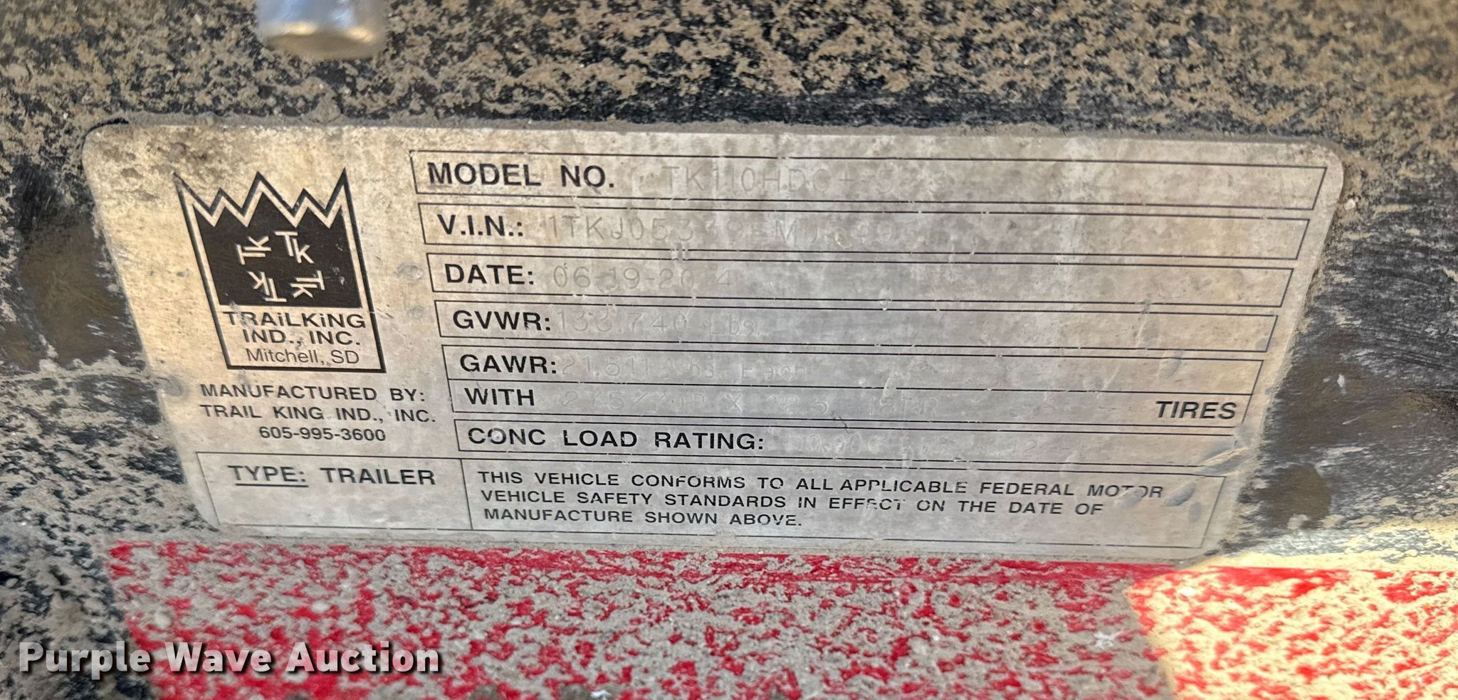 Purple Wave is selling a used Equip. Trailer in Missouri. This item is a 2014 Trail King lowboy equipment trailer with the following: VIN: 1TKJ05339EM054901