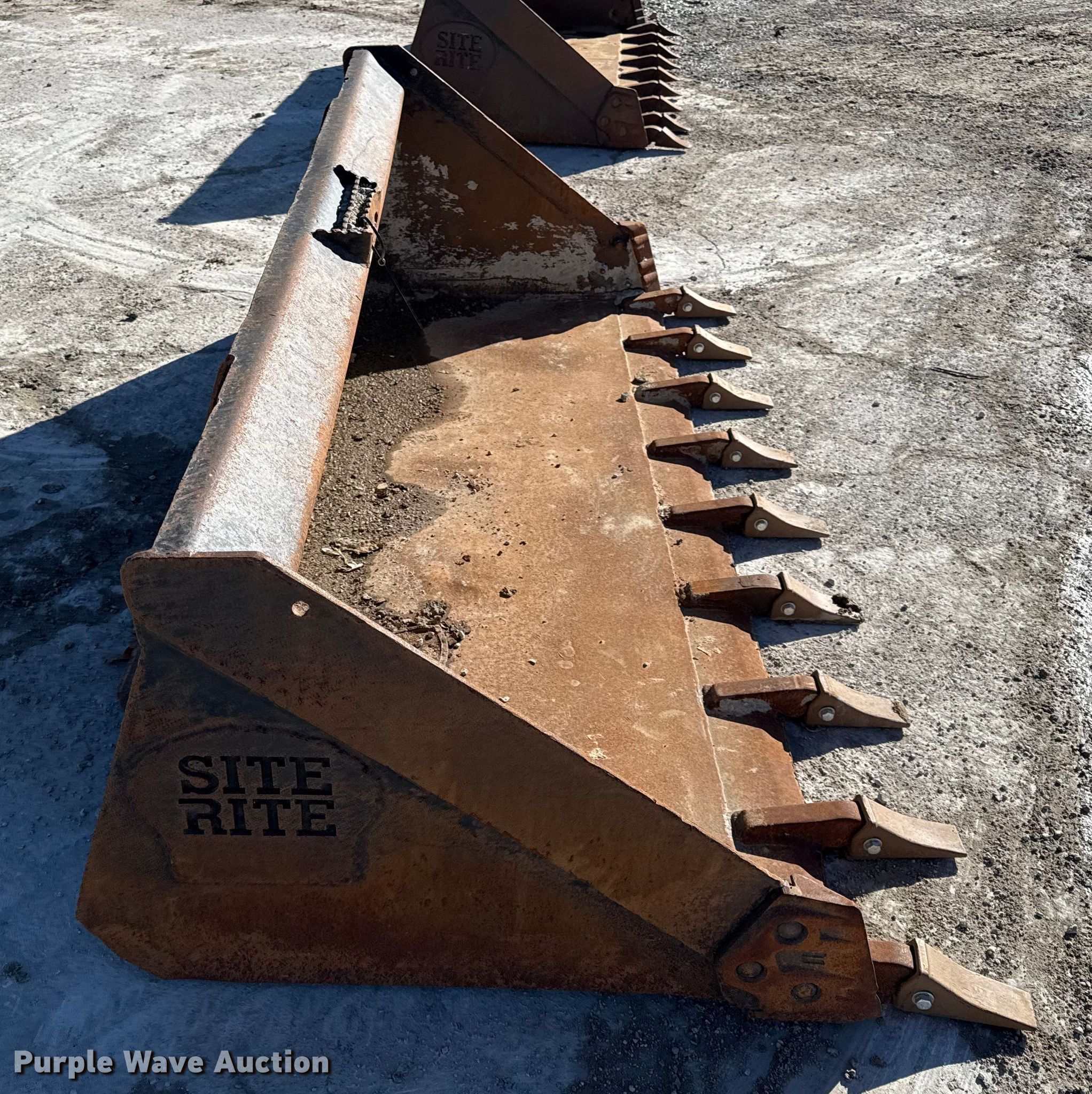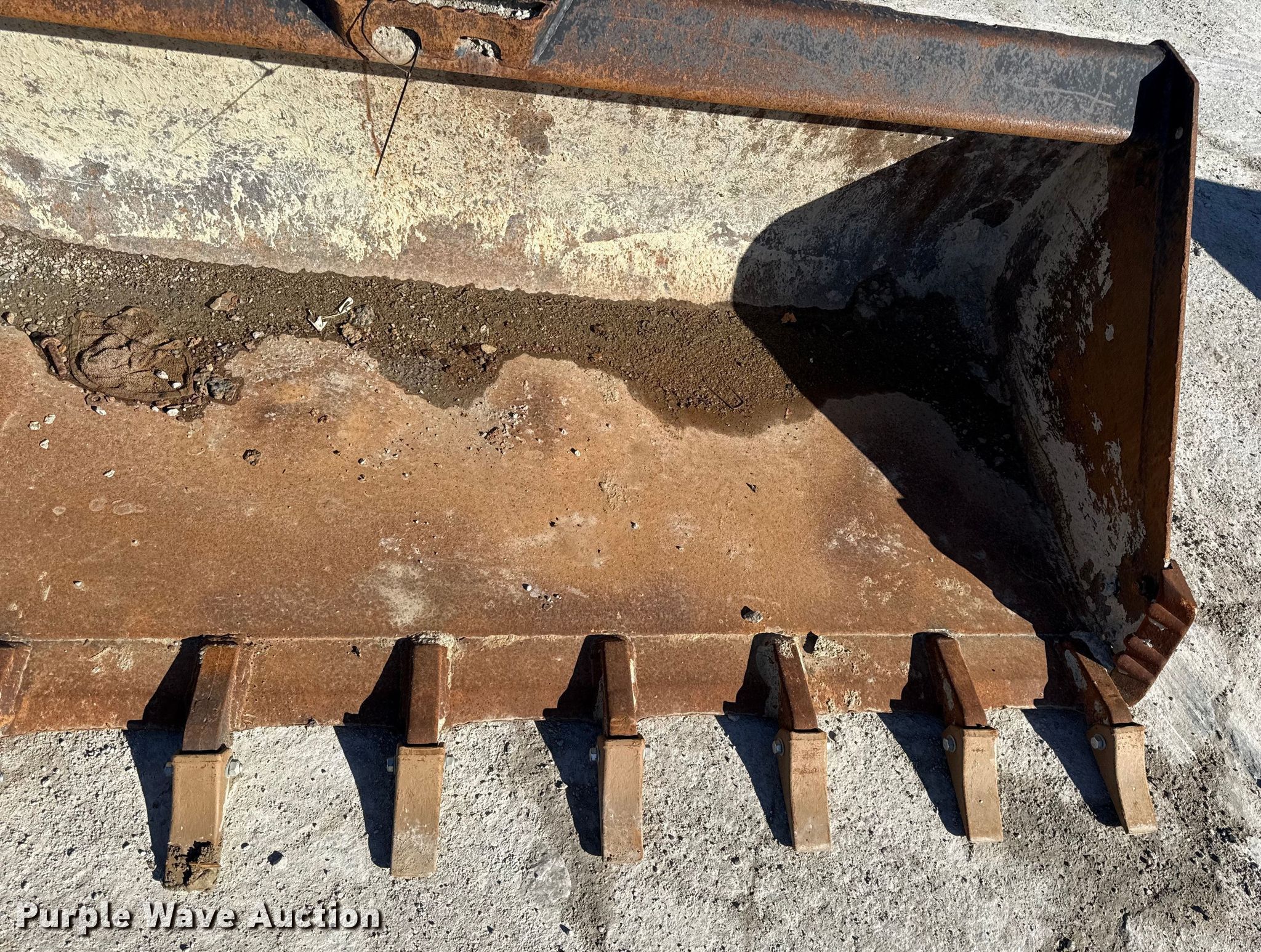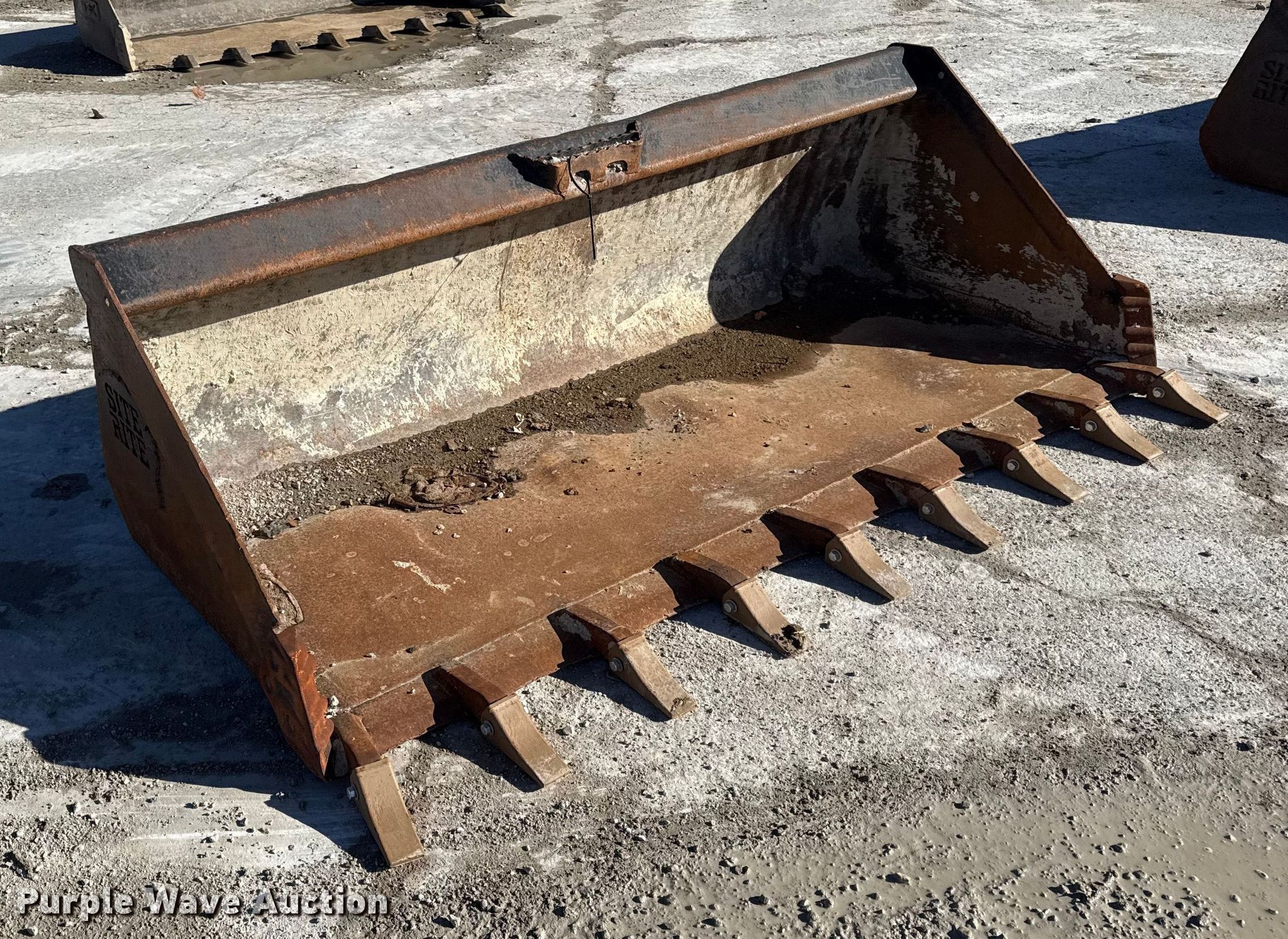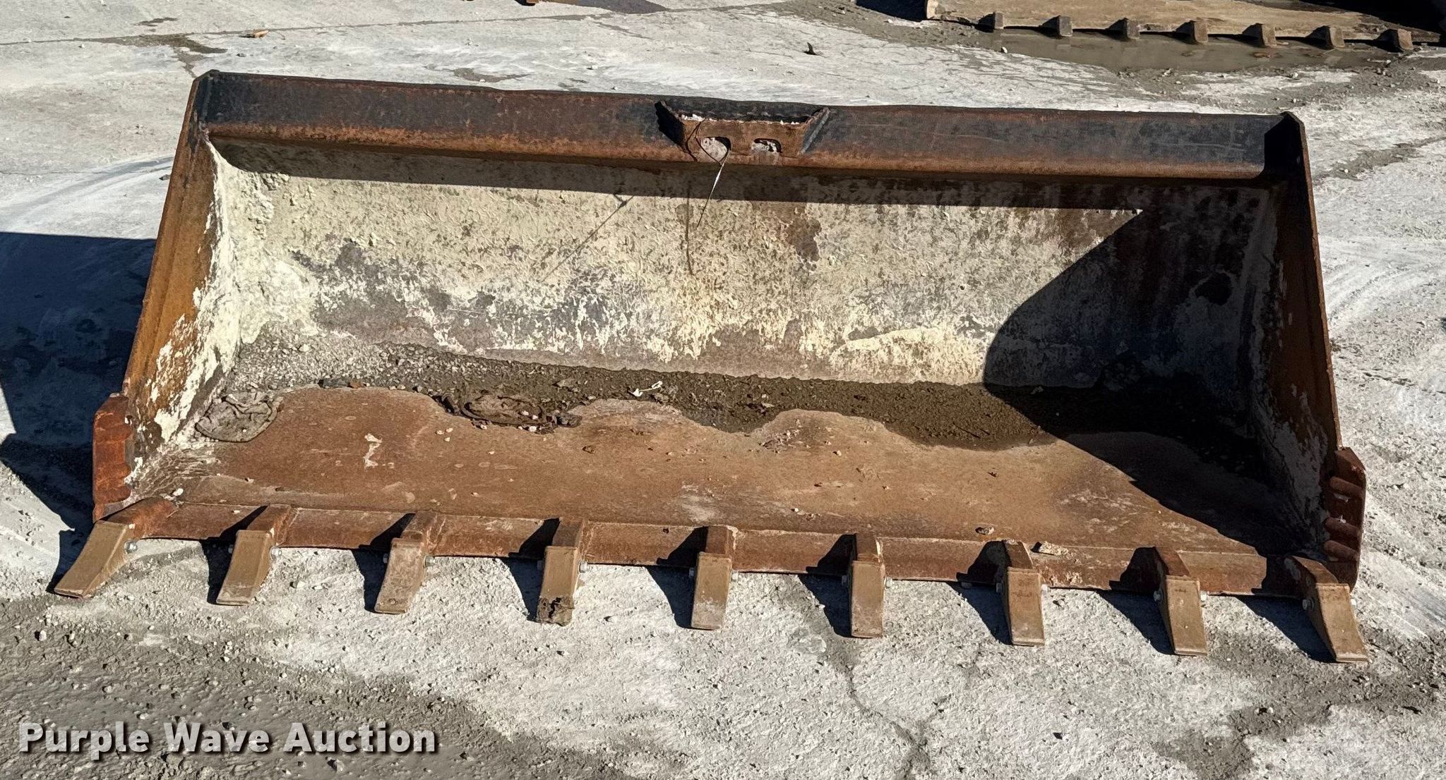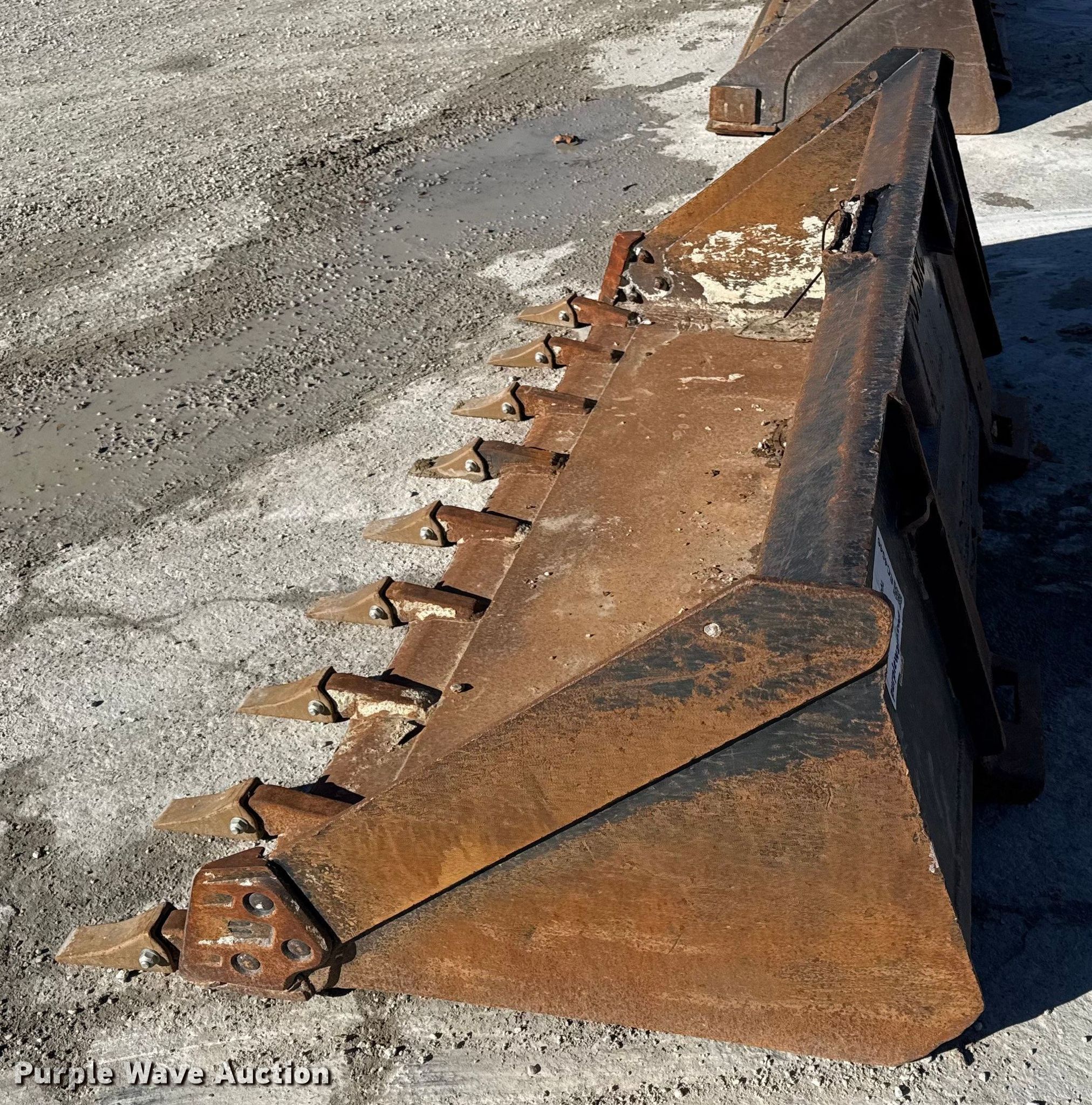 Purple Wave is selling a used Skid Steer Attach. in Missouri. This item is a 78" W skid steer bucket with the following: Teeth: Weld-on