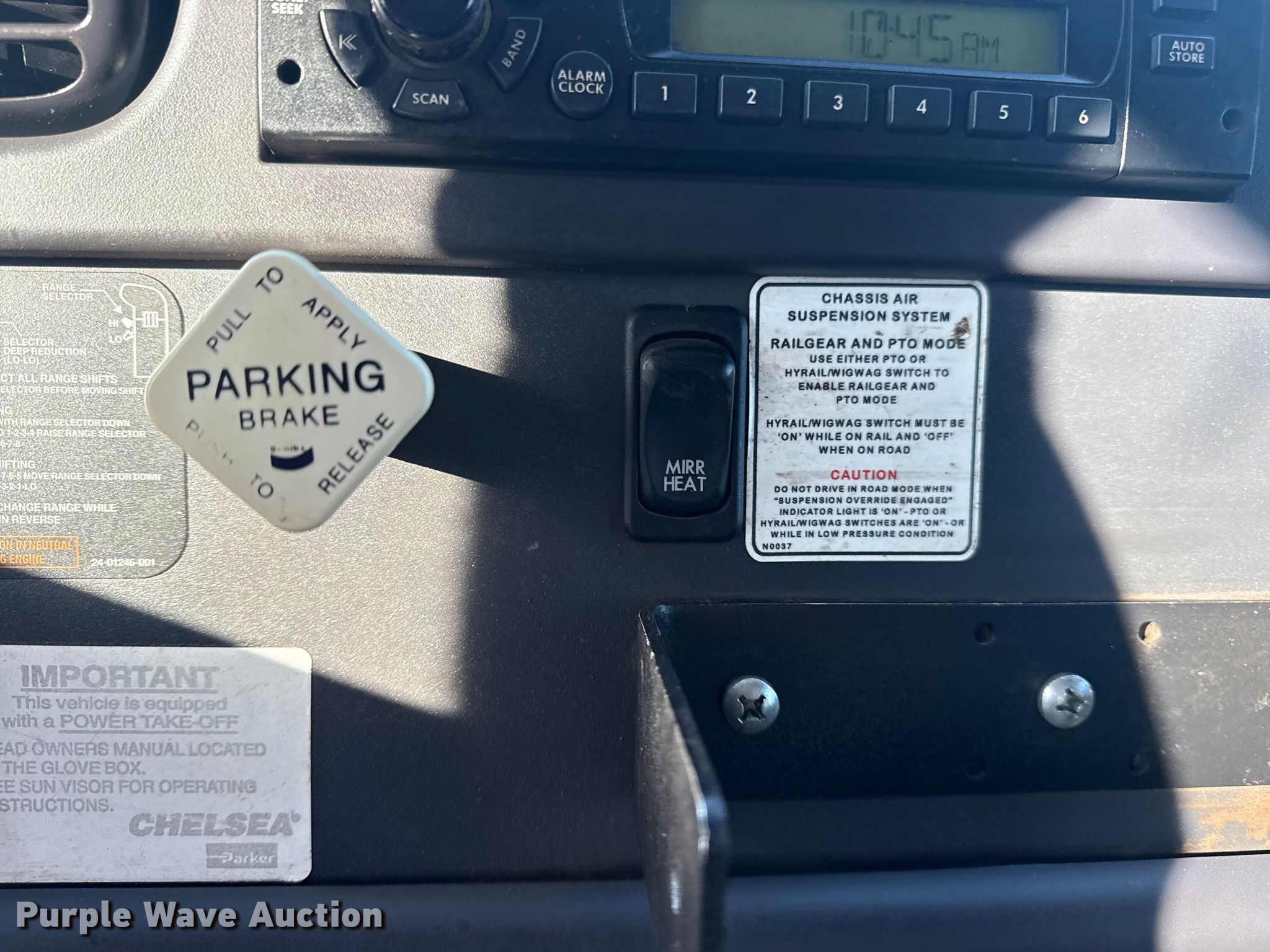 2010 Freightliner Business Class M2 crane truck. Miles: 200,345 on odometer, Hours: 20,213 on meter, VIN: 1FVHCYBS9ADAR5151. Engine Cummins ISC, Displacement: 8.3L, Cylinders: 6, Fuel type: Diesel. Transmission Eaton Fuller 8LL, Manual, Speed: 10. Chassis Hi-rail system, Axles: Tandem, Differential lock: Full, Suspension: Air, Brakes: Air, PTO, GVWR: 56,000 lbs FAWR: 16,000 lbs, IAWR: 20,000 lbs, RAWR: 20,000 lbs. Interior AC, Heat, Heated mirrors, Cruise control. Features Bed Length: 20' 7", Width: 96", Crane Palfinger PSC600021, Boom Telescopic, Maximum boom length: 24' Sections: 3, Maximum lift capacity: 3,300 lbs.. Tires Front: 315/80R22.5, Rear: 11R22.5. Oklahoma title. Seller is an Oklahoma licensed motor vehicle dealer. Buyers may be required to provide identification to the licensed dealer to comply with state laws. Title will be assigned and distributed by the dealer. Please contact the seller for distribution questions. Title distribution may be delayed up to 30 days from verification of funds. Collinsville, OK 74021