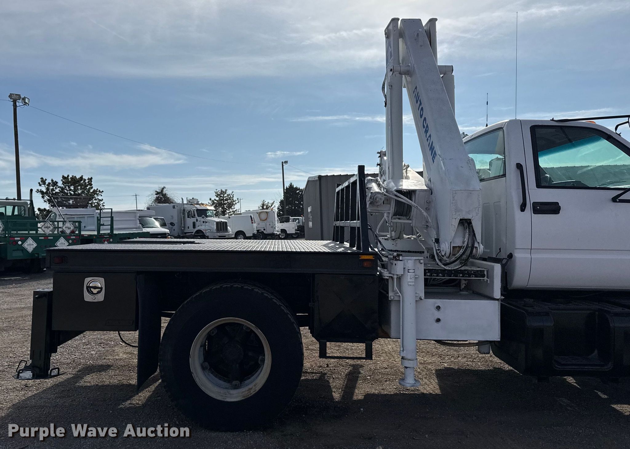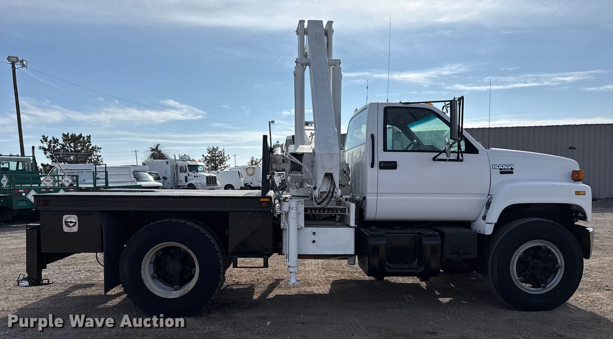 1997 Chevrolet Kodiak crane truck. Miles: 78,250 on odometer, VIN: 1GBM7H1J3TJ100163. Engine Caterpillar 3116, Serial: 96K33059, Displacement: 6.6L, Cylinders: 6, Fuel type: Diesel. Transmission Manual, Speed: 10. Chassis Axles: Single, Suspension: Spring, Brakes: Air, PTO, GVWR: 29,000 lbs. Interior AC, Heat, Brake controller. Features Bed Flatbed, Length: 8', Width: 95", Crane Auto Crane A72, Boom Telescopic, Knuckle, Maximum boom length: 30' Sections: 2, Maximum lift capacity: 4,350 lbs, Boom controls Ground, Lift chart. Tires Size: 11R22.5. Oklahoma classic title. Seller is an Oklahoma licensed motor vehicle dealer. Buyers may be required to provide identification to the licensed dealer to comply with state laws. Title will be assigned and distributed by the dealer. Please contact the seller for distribution questions. Title distribution may be delayed up to 30 days from verification of funds. Collinsville, OK 74021