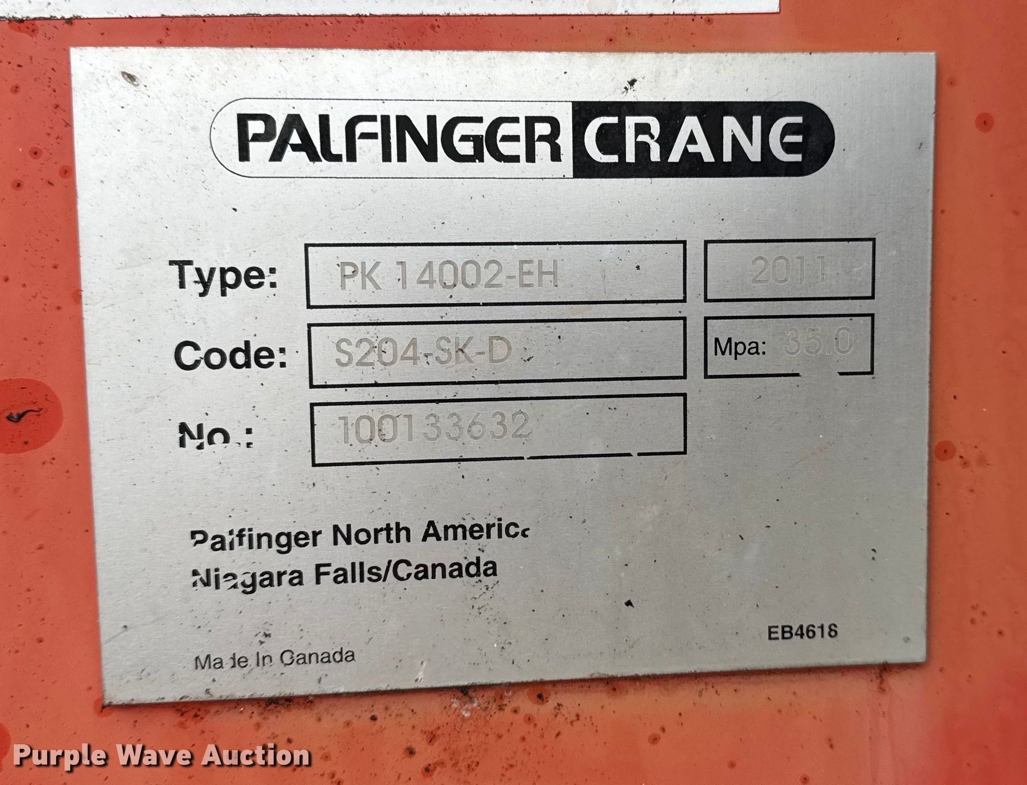 2012 Freightliner Business Class M2 Crew Cab crane truck. Miles: 278,838 on odometer, Hours: 3,676 on meter, VIN: 1FVHC3BS0CDBD8597. Engine Cummins ISC, Serial: 60350671, Displacement: 8.3L, Cylinders: 6, Fuel type: Diesel, HP: 300, Engine brake. Transmission Eaton Fuller 8LL, Manual, Speed: 10. Chassis Hi-rail system, Axles: Tandem, Differential lock: Inter-axle, Suspension: Air, Brakes: Air, PTO, GVWR: 56,000 lbs FAWR: 16,000 lbs, IAWR: 20,000 lbs, RAWR: 20,000 lbs. Interior AC, Heat, Heated mirrors, Cruise control. Features Bed Flatbed, Knapheide WLD-BNSF609, Serial: 20110609-0210607, Length: 15', Width: 9", Crane 2011 Palfinger PK 14002-EH Serial: 100133632, Boom Telescopic, Knuckle, Maximum boom length: 30' Sections: 4, Maximum lift capacity: 13,200 lbs, Boom controls Ground, Remote control, Lift chart. Tires Front: 315/80R22.5, Rear: 11R22.5. Oklahoma title. Seller is an Oklahoma licensed motor vehicle dealer. Buyers may be required to provide identification to the licensed dealer to comply with state laws. Title will be assigned and distributed by the dealer. Please contact the seller for distribution questions. Title distribution may be delayed up to 30 days from verification of funds. Collinsville, OK 74021