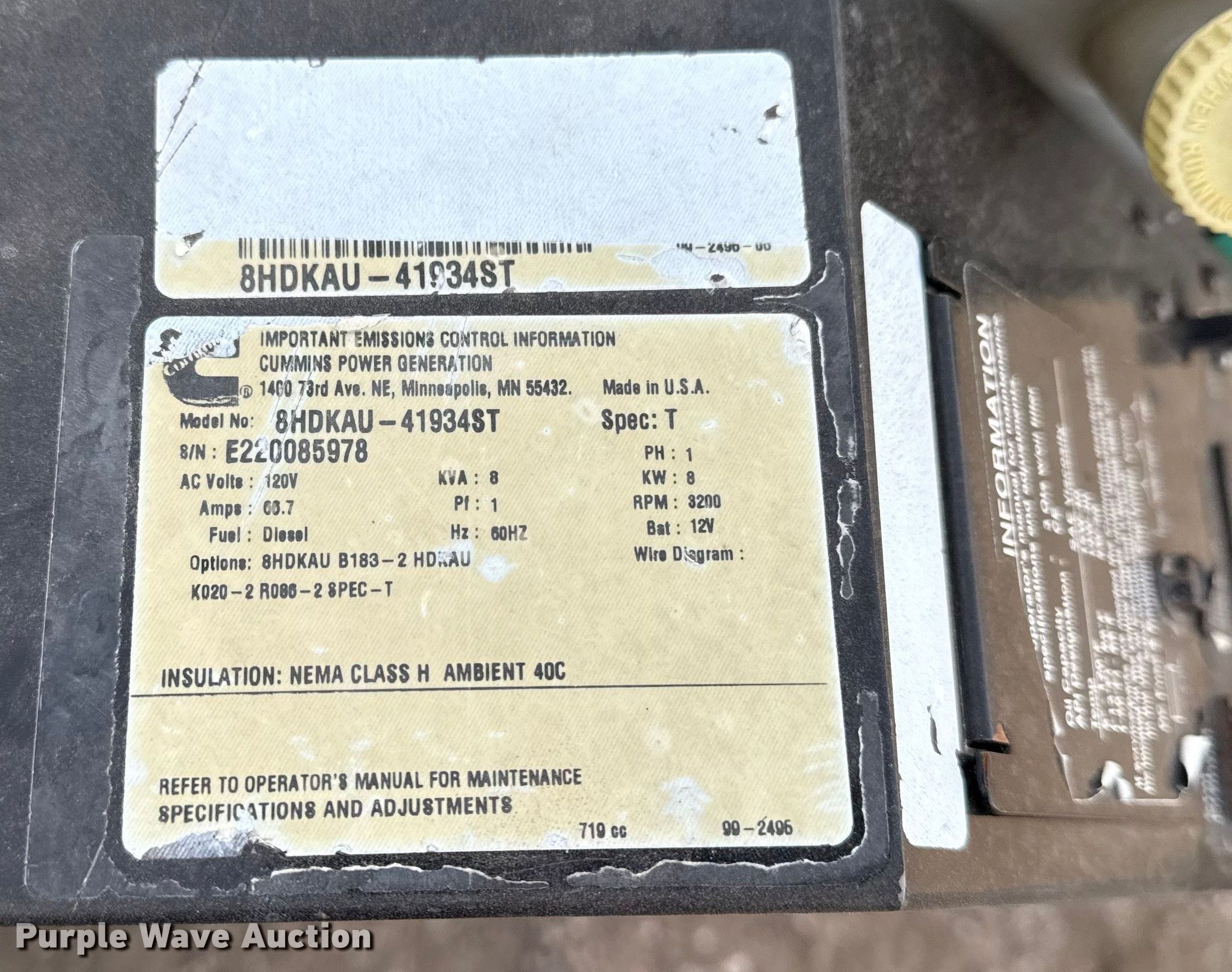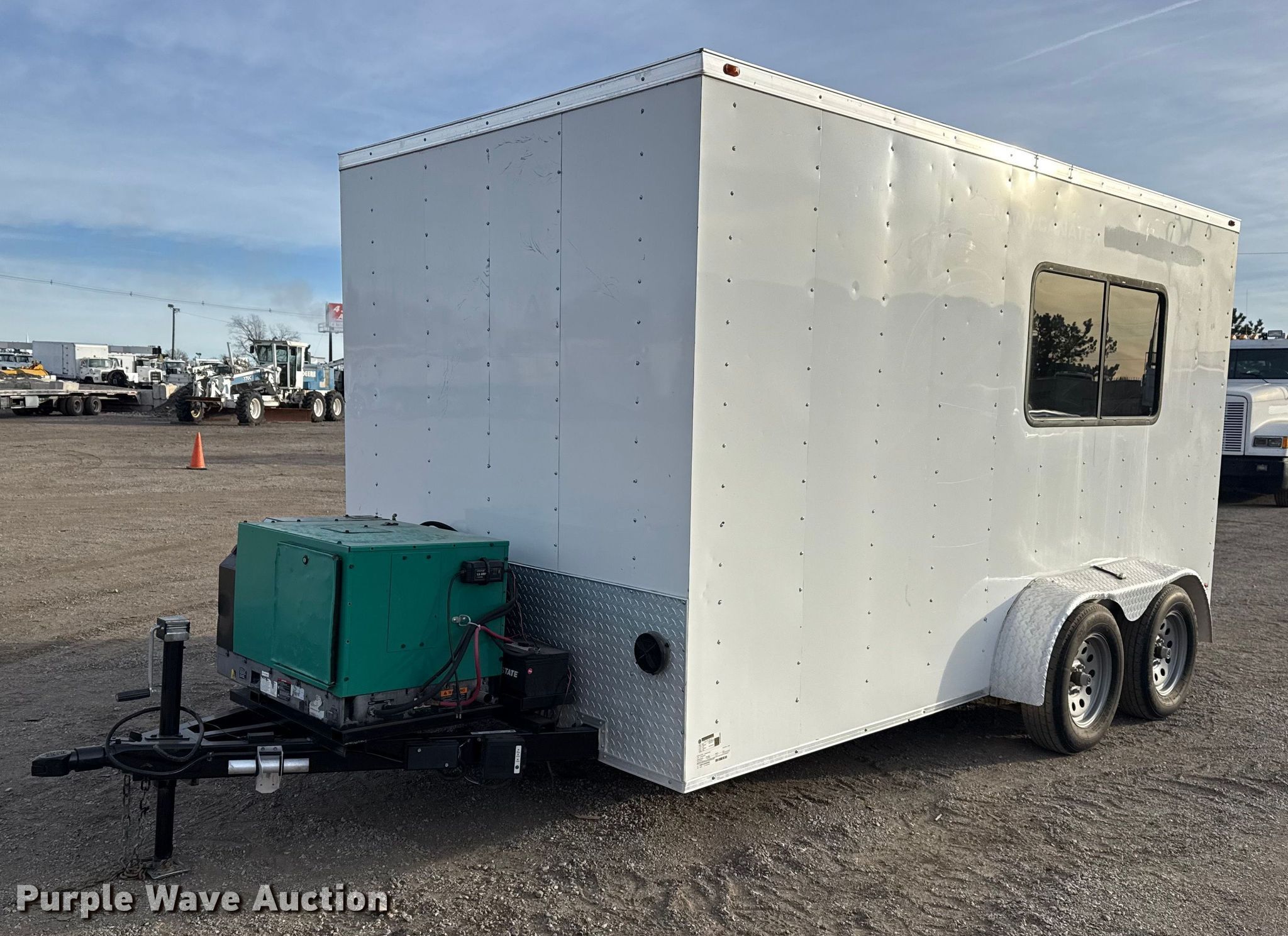 2022 Grandview Sales 7X14 TA Enclosed enclosed cargo trailer. VIN: 7MSBE1423NG000385. Dimensions Overall Length: 19', Width: 102", Body Length: 14', Width: 84", Rear door / ramp Width: 36". Features Deck type: Wood, Generator Onan 8HDKAU-41934ST, Hours: 19,463 on meter, Fuel type: Diesel, Heat, Air conditioning, Counter tops. Chassis Ball hitch: 2 5/16", Landing gear: Single, Suspension: Spring, Brakes: Electric, Axles: Tandem, GVWR: 7,000 lbs, GAWR: 7,000 lbs. Tires Steel wheels, Size: ST205/75R15. Notes Unknown operating condition of generator. Oklahoma title. Seller is an Oklahoma licensed motor vehicle dealer. Buyers may be required to provide identification to the licensed dealer to comply with state laws. Title will be assigned and distributed by the dealer. Please contact the seller for distribution questions. Title distribution may be delayed up to 30 days from verification of funds. Collinsville, OK 74021