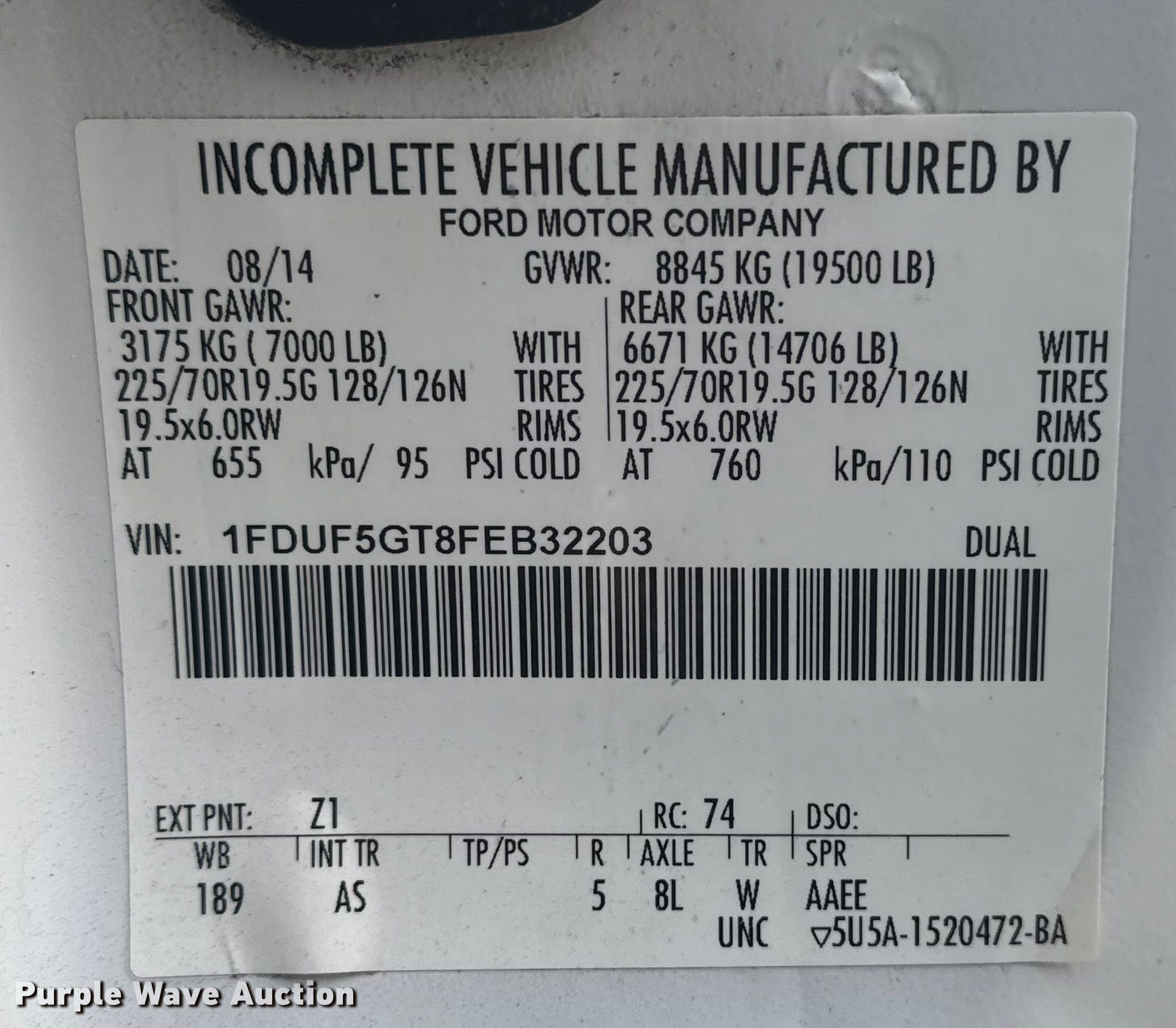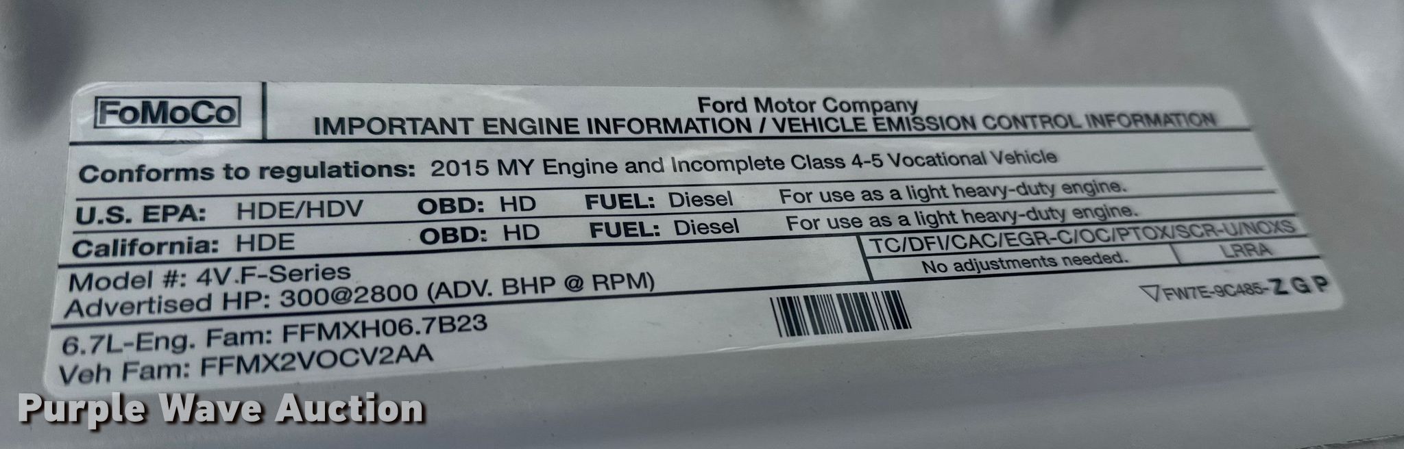 2015 Ford F550 flatbed truck. Miles: 137,879 on odometer, VIN: 1FDUF5GT8FEB32203. Engine Displacement: 6.7L, Cylinders: 8, Fuel type: Diesel. Transmission Automatic. Chassis Axles: Single, Suspension: Spring, Brakes: Hydraulic, PTO, GVWR: 19,500 lbs, Wheelbase: 189". Interior AC, Heat, Heated mirrors, Power windows, Power locks, Cruise control, Auxiliary controls. Features Bed Flatbed, Length: 9' 6", Width: 96", 2010 Amco Veba V108 3S crane Serial: 28843, Reach: 29', Capacity: 4450 lbs, Boom: Telescoping, knuckle, Sections: Three. Tires Size: 225/70R19.5. Notes Windshield chipped or cracked. Oklahoma title. Seller is an Oklahoma licensed motor vehicle dealer. Buyers may be required to provide identification to the licensed dealer to comply with state laws. Title will be assigned and distributed by the dealer. Please contact the seller for distribution questions. Title distribution may be delayed up to 30 days from verification of funds. Collinsville, OK 74021