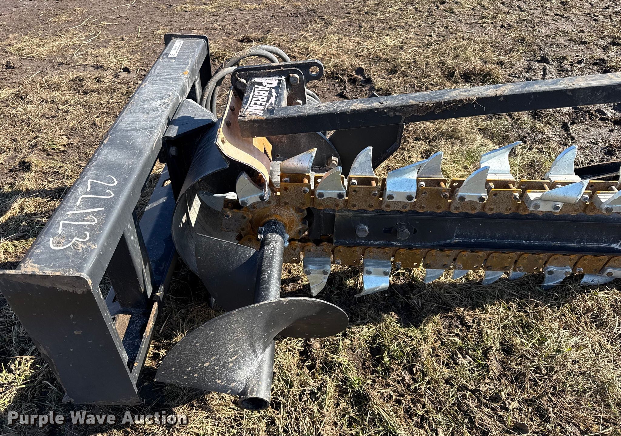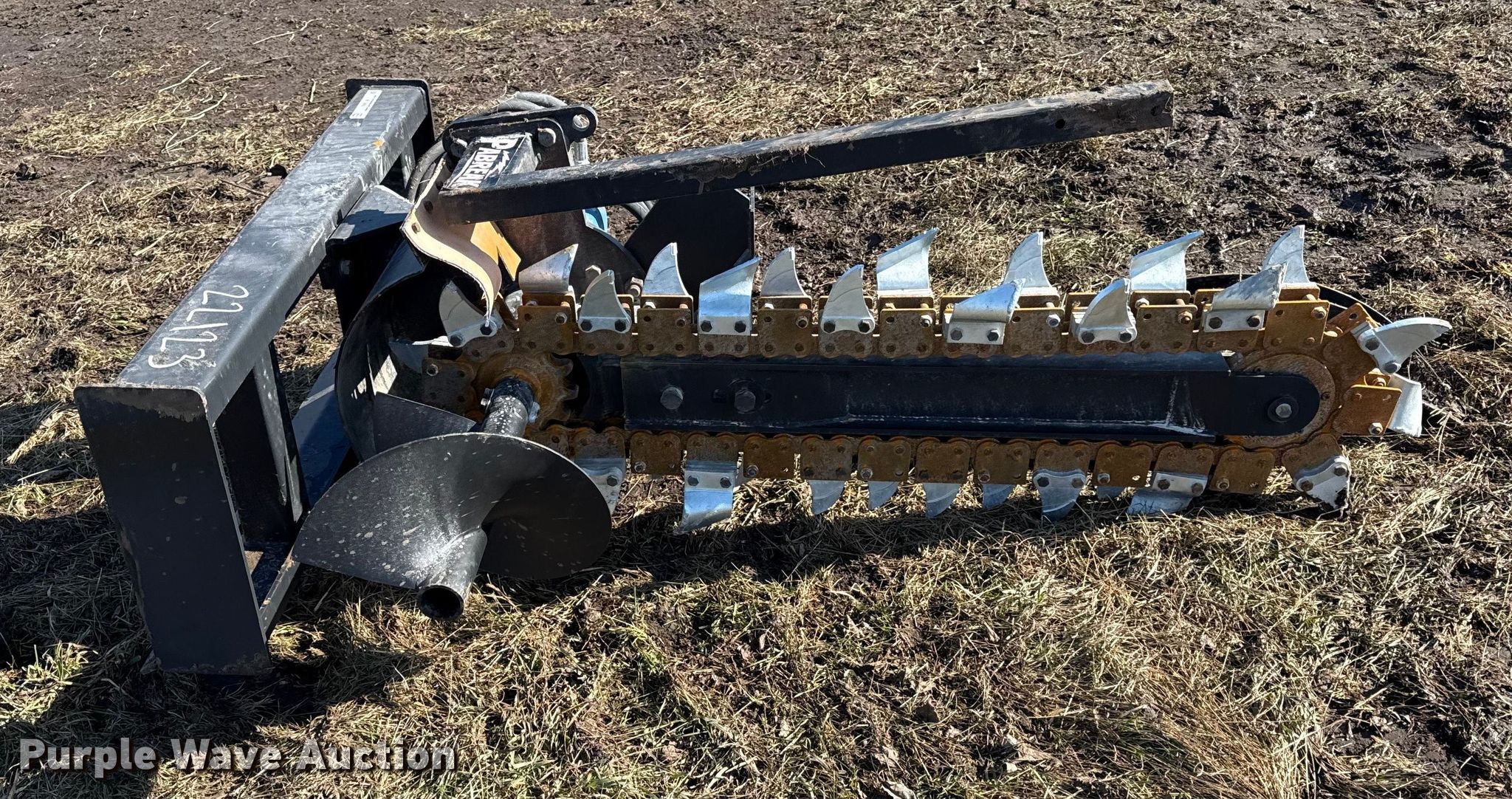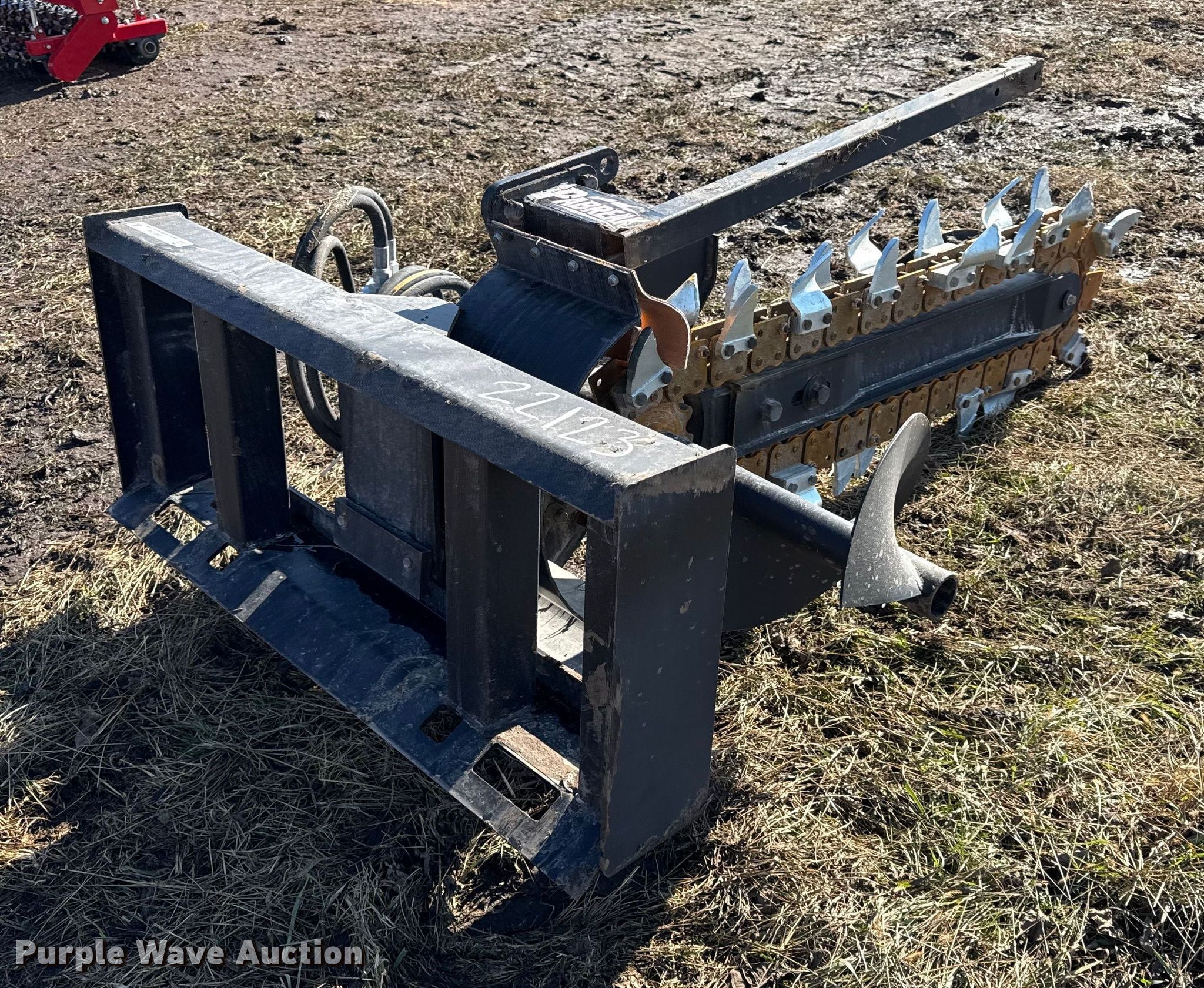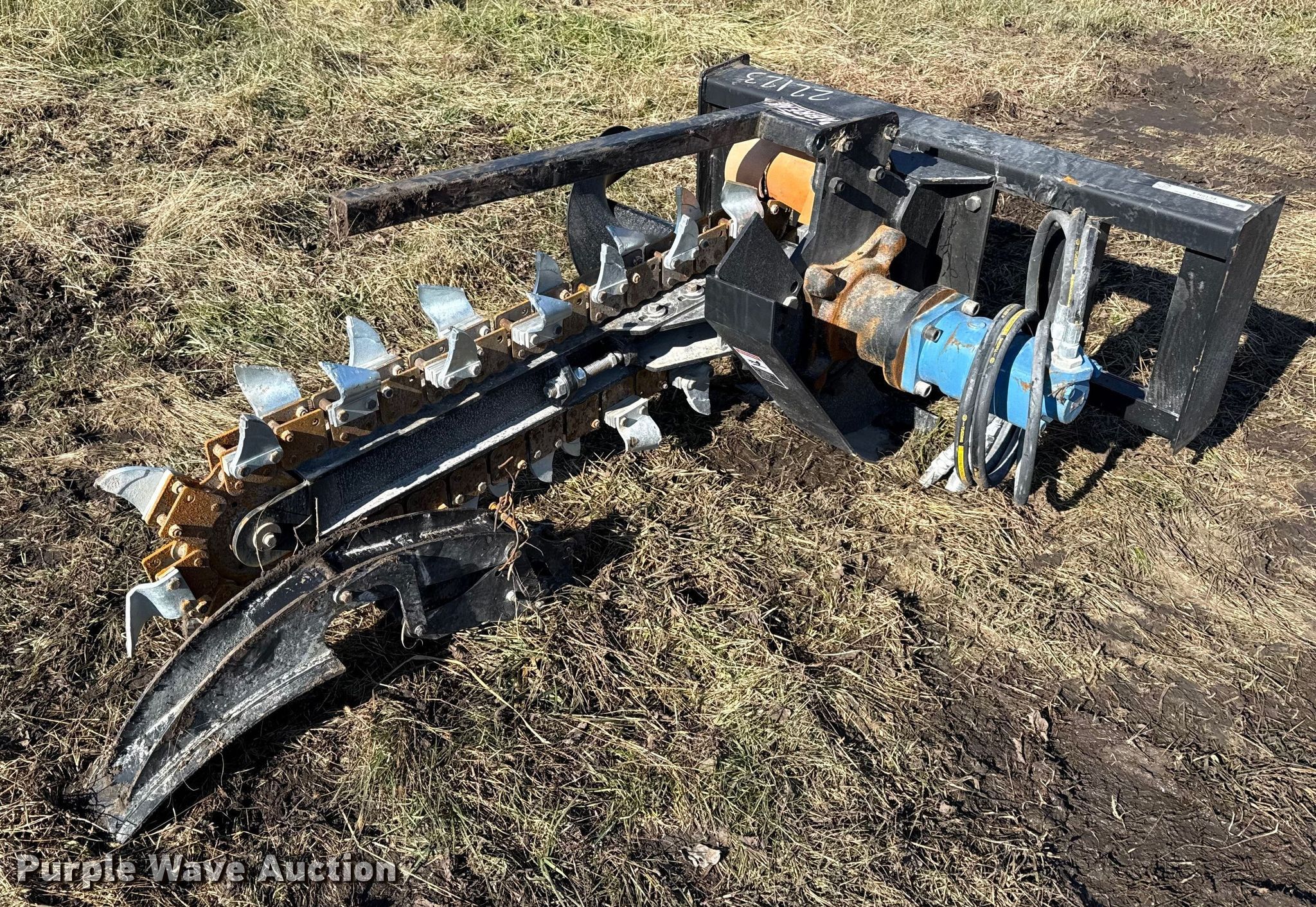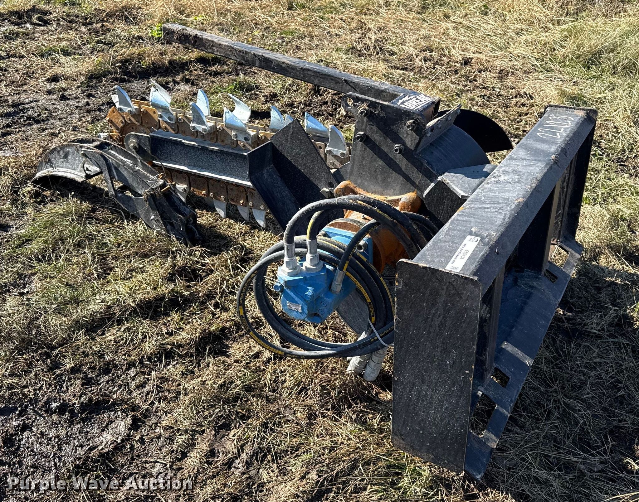 Purple Wave is selling a used Skid Steer Attach. in Kansas. This item is a Pabreak skid steer trencher with the following: Estimated dig depth: 48", Cutting width: 8", Teeth: Dirt, Rock
