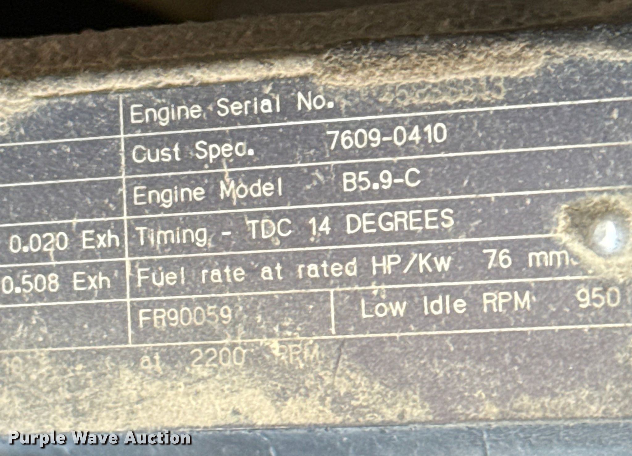 1999 Badger 1085D wheeled excavator. Hours: 6,065 on meter, Serial: 990705. Engine Cummins, Displacement: 5.9L, Cylinders: 6, Fuel type: Diesel. Transmission Hydrostatic. Operators station Enclosed cab. Features Standard, Boom Standard, Stick Stick length: 9' 2", Extendable stick, Bucket Width: 58". Tires Size: 17.5-25. Notes Non-operational throttle pedal, Non-operational fuel shutoff solenoid. Amity Mutual Irrigation Company. Lamar, CO 81052