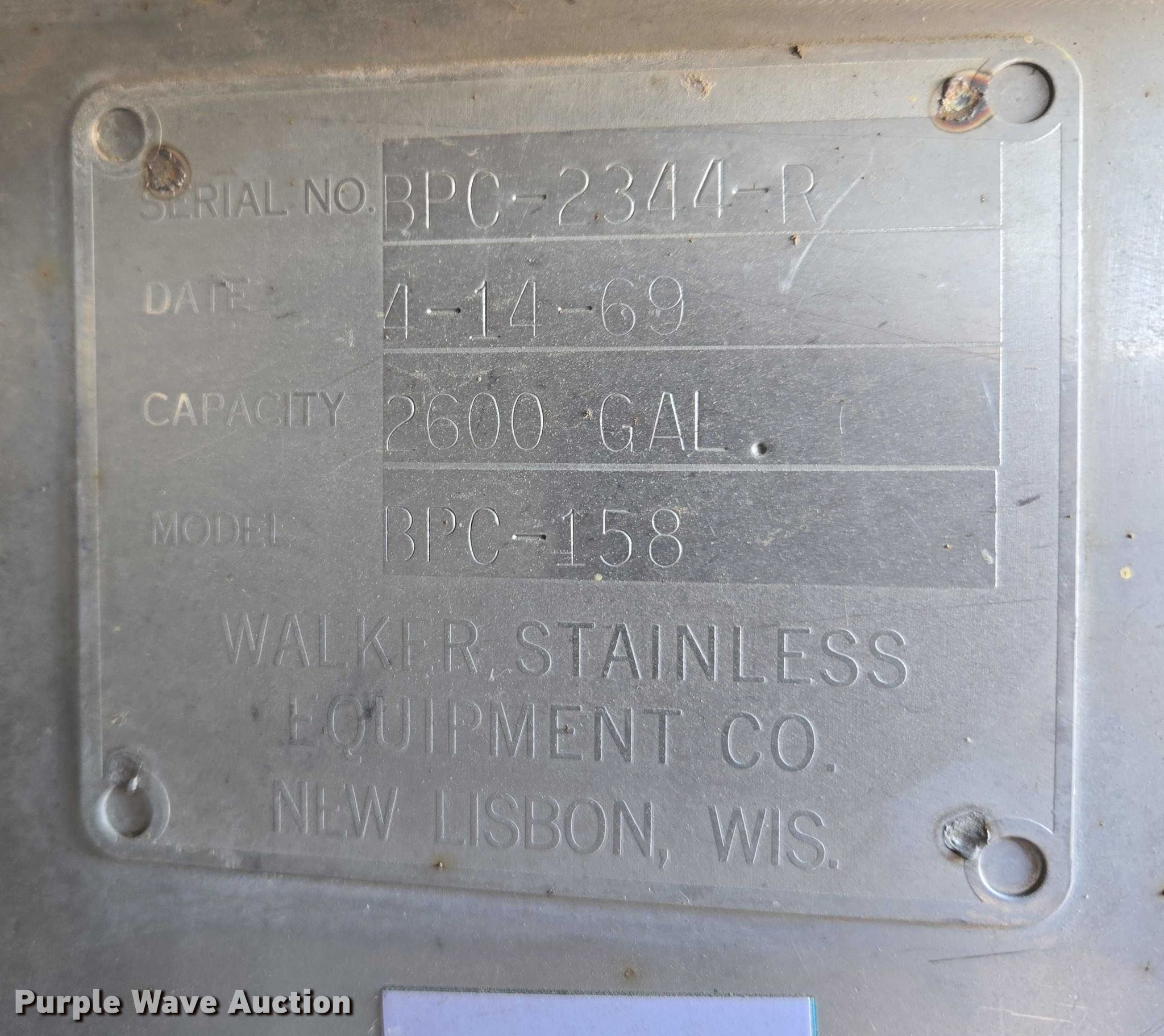 1978 Ford LT8000 tank truck. Miles: 59,824 on odometer, Miles: Actual unknown, VIN: U80DVBC5156, Unit #: 2Y. Engine Caterpillar V636, Cylinders: 8, Fuel type: Diesel. Transmission Automatic, Speed: plus 2. Chassis Axles: Tandem, Differential lock: Inter-axle, Suspension: Spring over walking beam, Brakes: Air. Interior Heat. Features Bed Tank bed, Walker BPC-158, Serial: BPC-2344-R, Length: 15' 2", Width: 95", Capacity: 2,600 gallons, Spray bar: Rear. Tires Size: 11R22.5. South Dakota title. Mileage has not been verified. Exempt will be written in the odometer disclosure on the title. Title distribution may be delayed up to 14 days from verification of funds. Soukup Construction Inc.. Sioux Falls, SD 57107