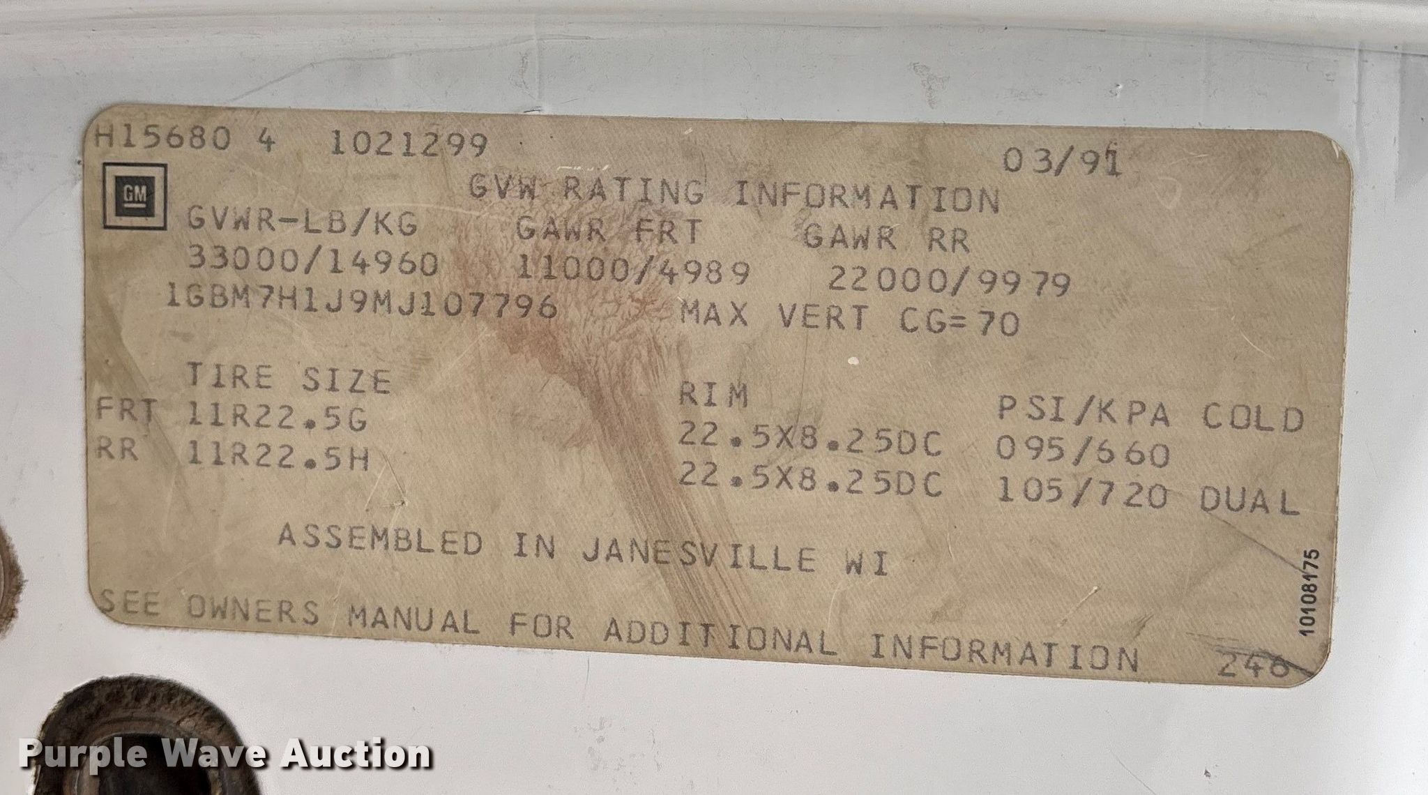 - VIN: 1GBM7H1J9MJ107796