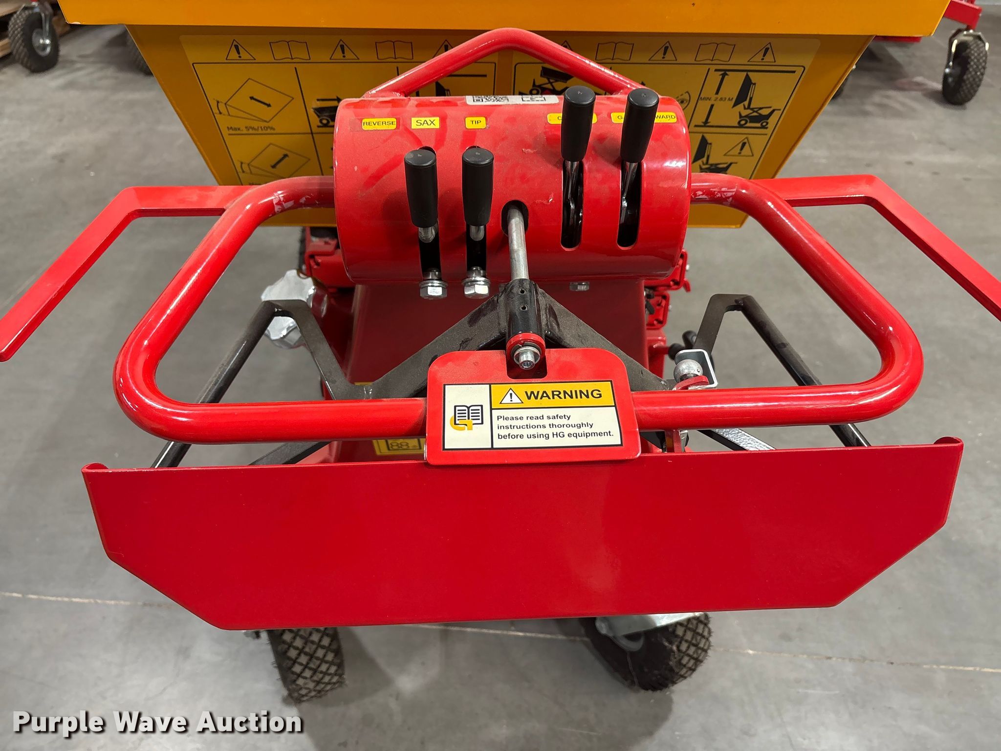 2024 HG Machines ApS H1000 High Tip power buggy. Serial: 280120. Dimensions Overall Length: 81", Width: 35", Height: 42", Interior Length: 65", Width: 31", Height: 18". Engine Honda GX 200, Cylinders: 1, Fuel type: Gas. Transmission Hydrostatic. Tires Front: 4.00-1, Rear: 190-8, Brand: Duro. Makinex. Mansfield, TX 76063