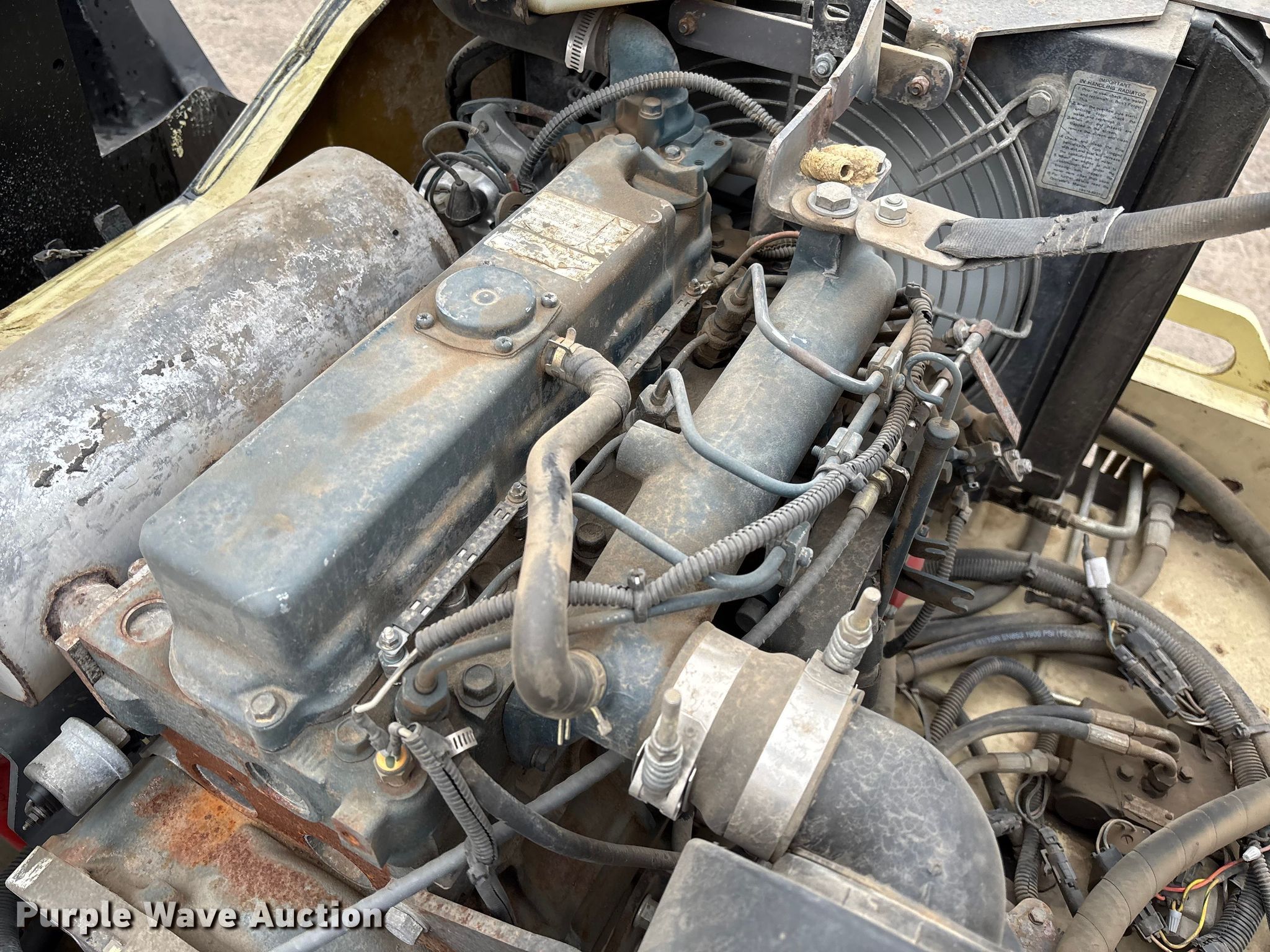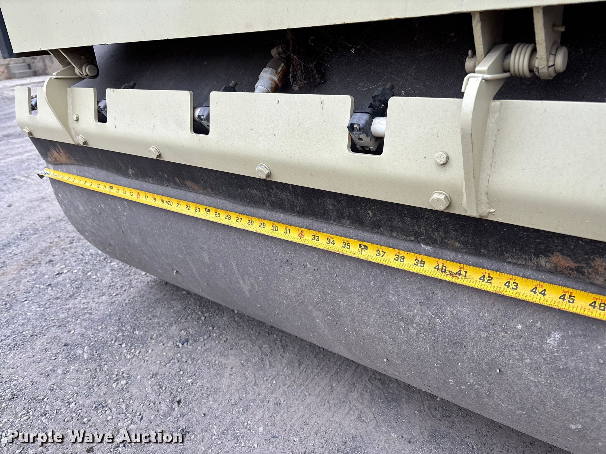 Ingersoll Rand DD-34HF double drum vibratory roller. Hours: 12,484 on meter, Serial: 183398. Engine Kubota V2203-M-S, Displacement: 2.2L, Cylinders: 4, Fuel type: Diesel. Transmission Hydrostatic. Features Drum type: Smooth, Vibratory system: Double, Front drum Width: 52", Diameter: 28", Rear drum Width: 52", Diameter: 28", Drum scrapers: Front, Rear, Water spray applicator: Front, Rear, Dual propel system. Notes Additional drum. KPC, LLC. Rudy, AR 72952