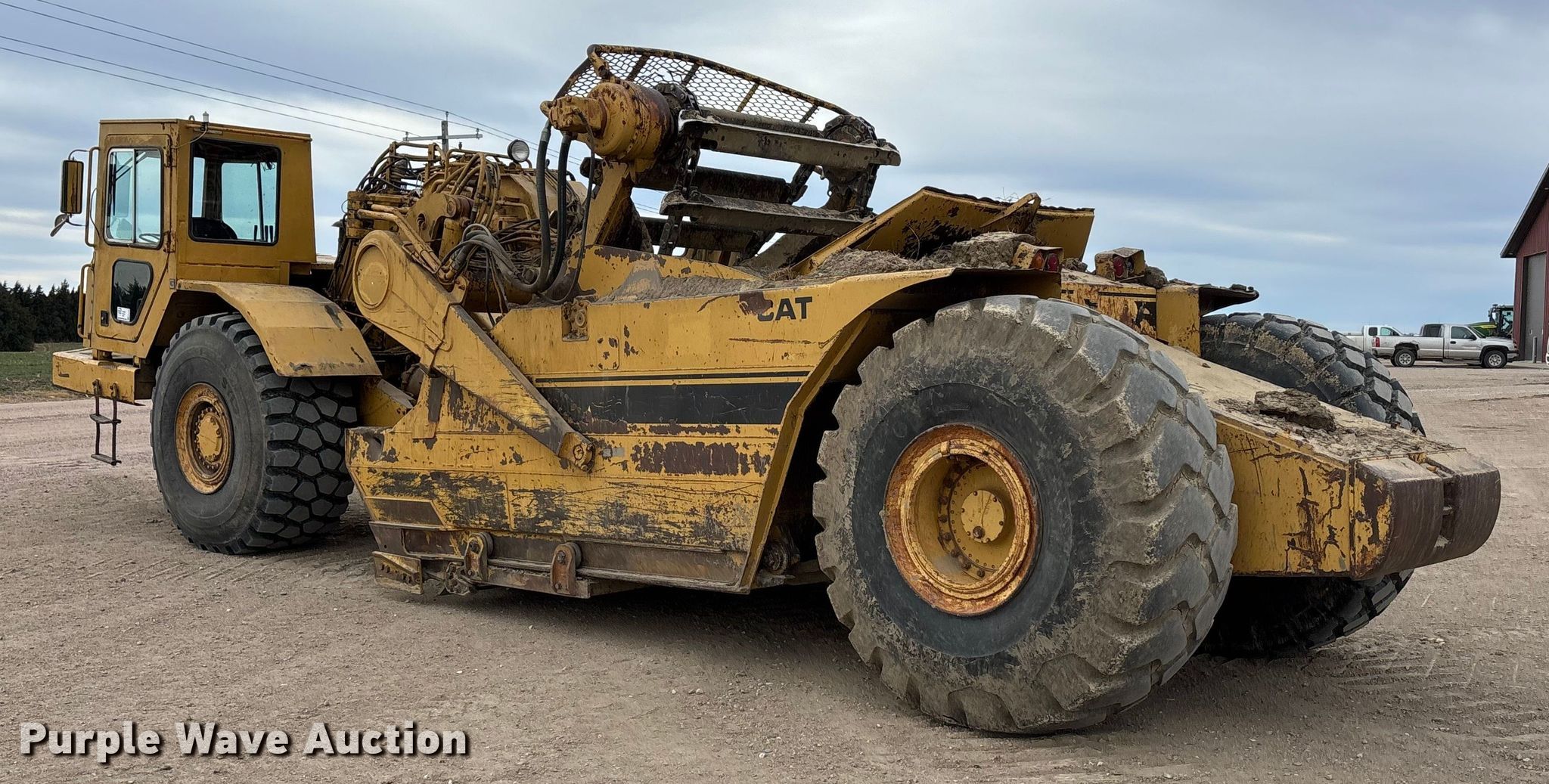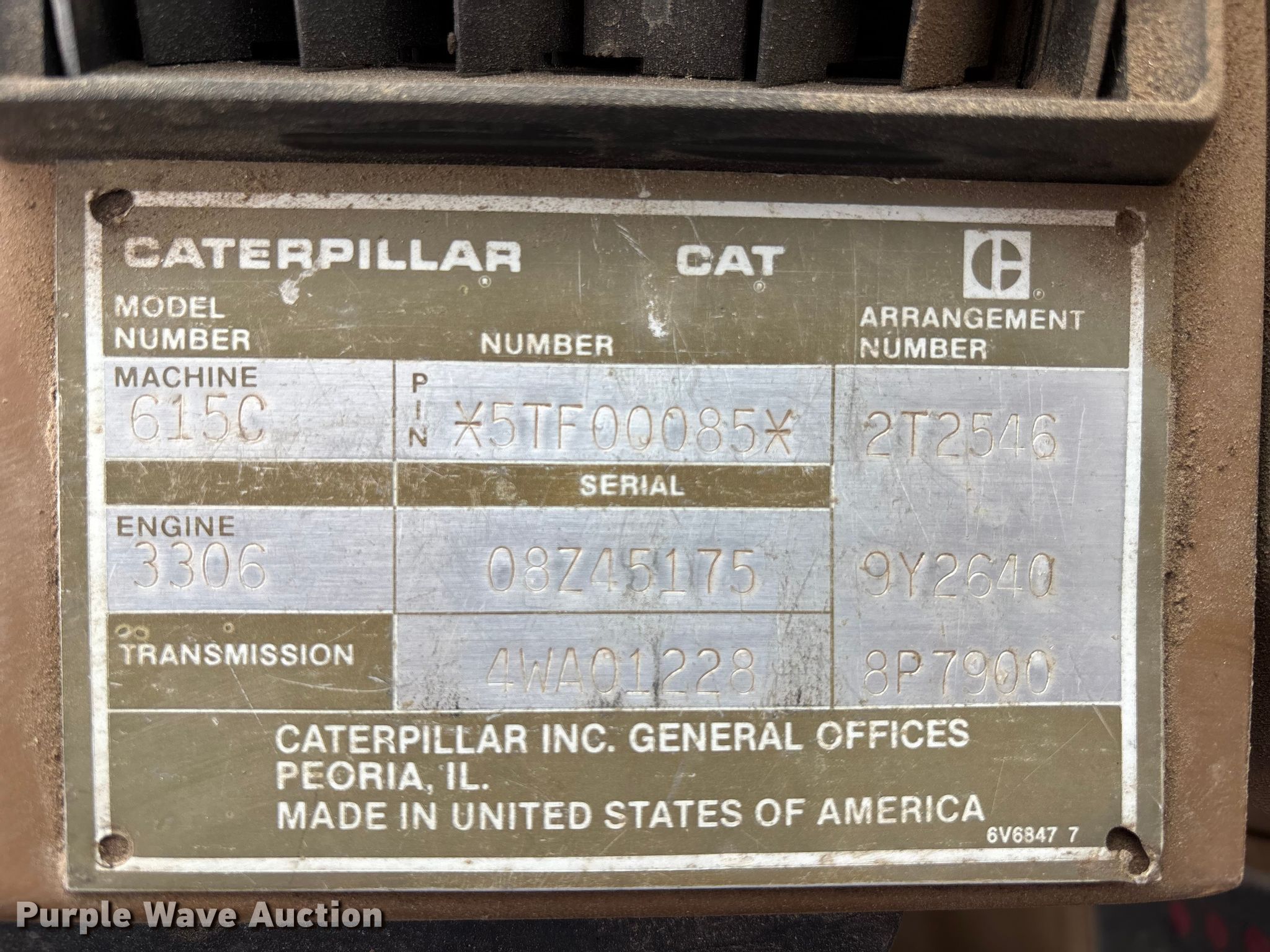 Purple Wave is selling a used Elevating Scraper in Nebraska. This item is a 1988 Caterpillar 615C elevating scraper with the following: Hours: 16,158 on meter, Serial: 5TF00085