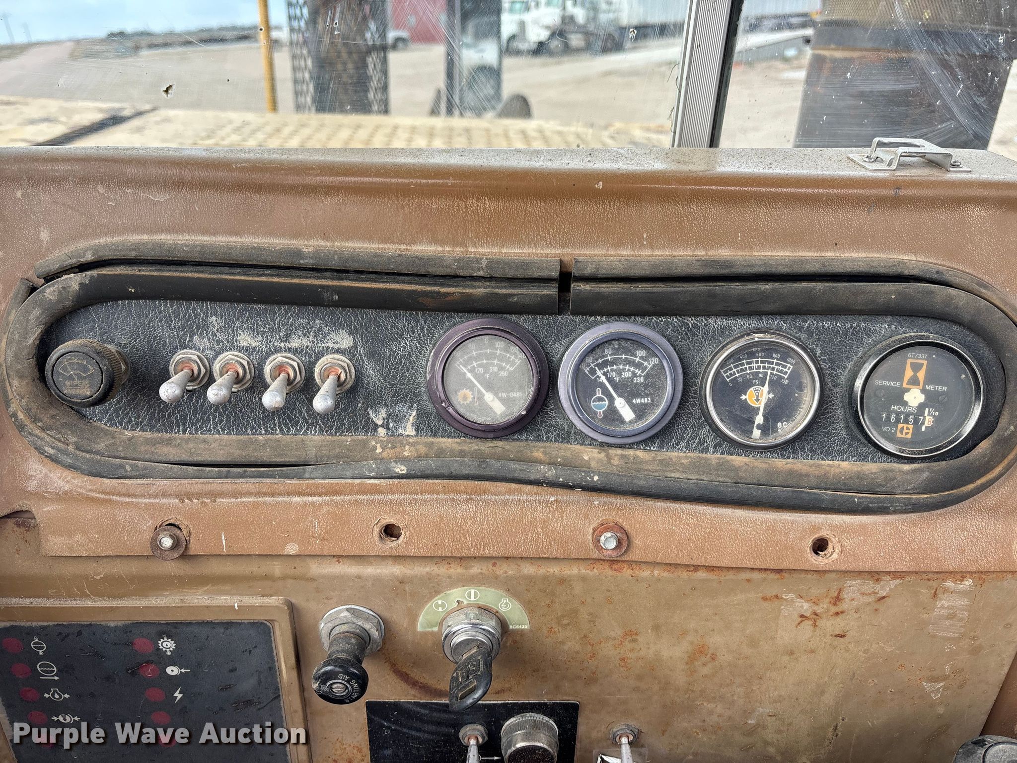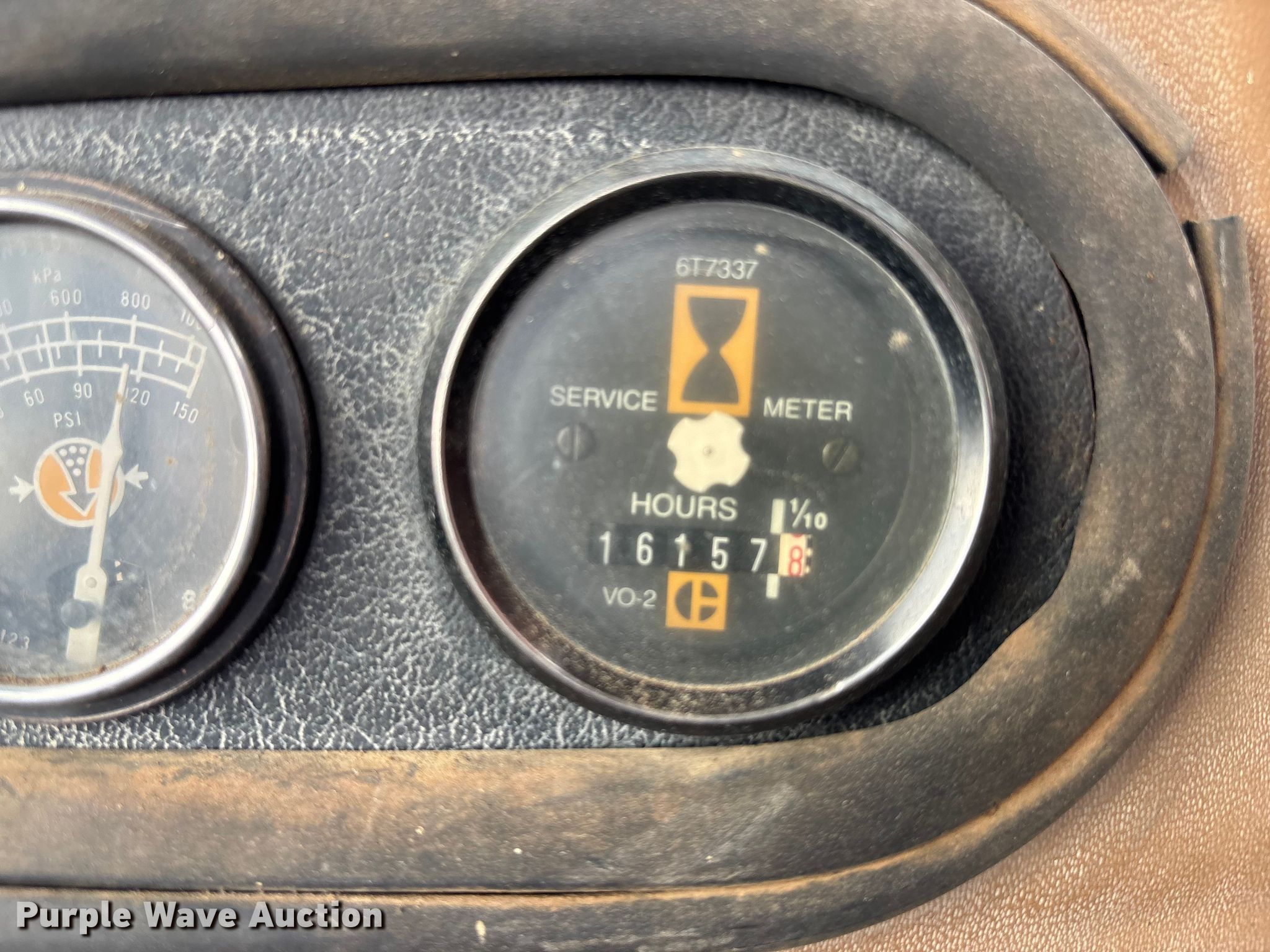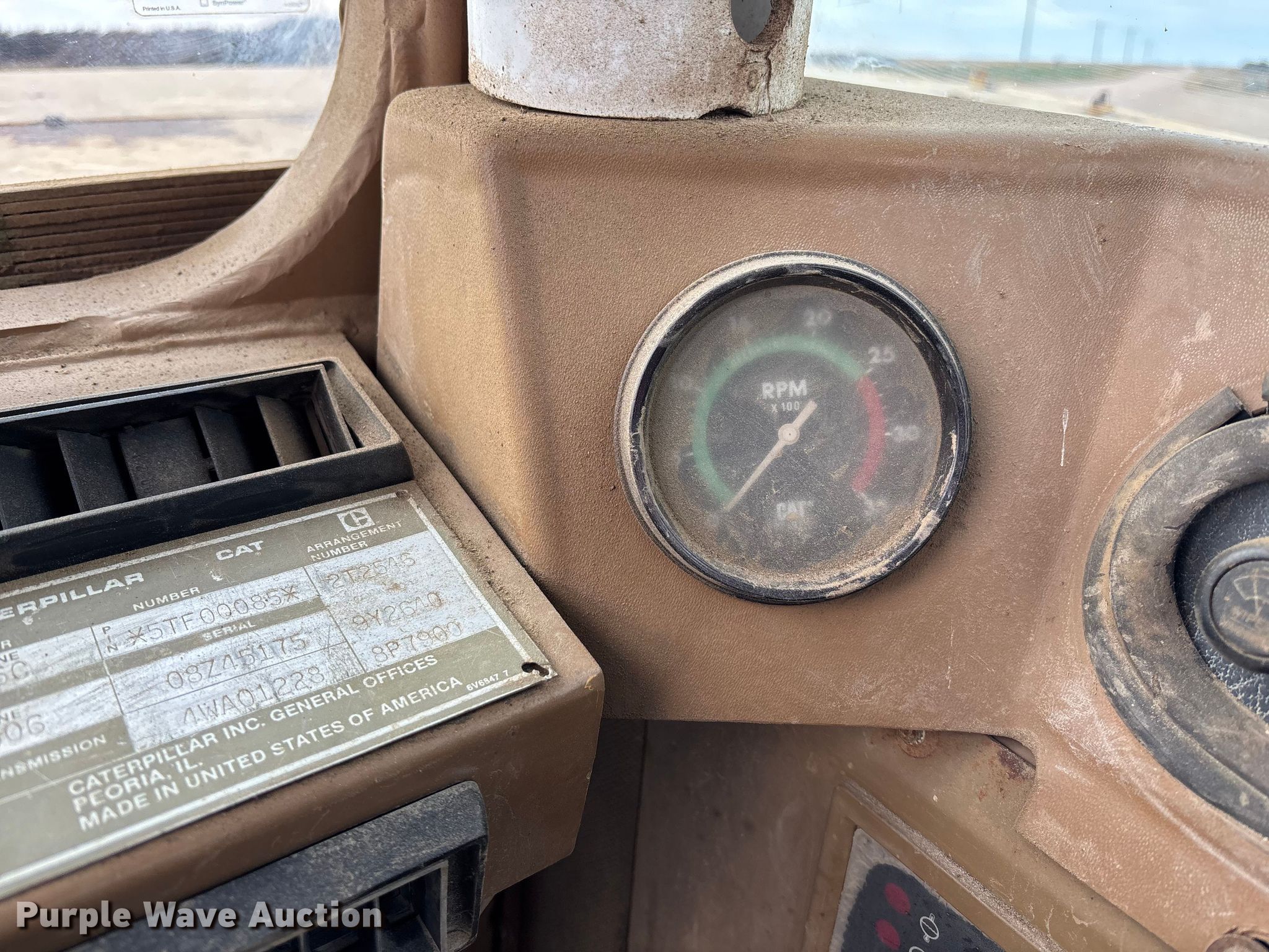 1988 Caterpillar 615C elevating scraper. Hours: 16,158 on meter, Serial: 5TF00085. Engine Caterpillar 3306, Serial: 08Z45175, Displacement: 10.5L, Cylinders: 6, Fuel type: Diesel. Transmission Powershift, 6F - 1R. Chassis Brakes: Air. Operators station Enclosed cab, AC, Heat. Features Bowl capacity: 15 cu.yd., Elevator reverse, Hydraulic lift, Scraper controls: Lever controls, Rear push block. Tires Size: 29.5-25. Notes Jump start required during on-site data collection. Prime Contracting. Ashton, NE 68817