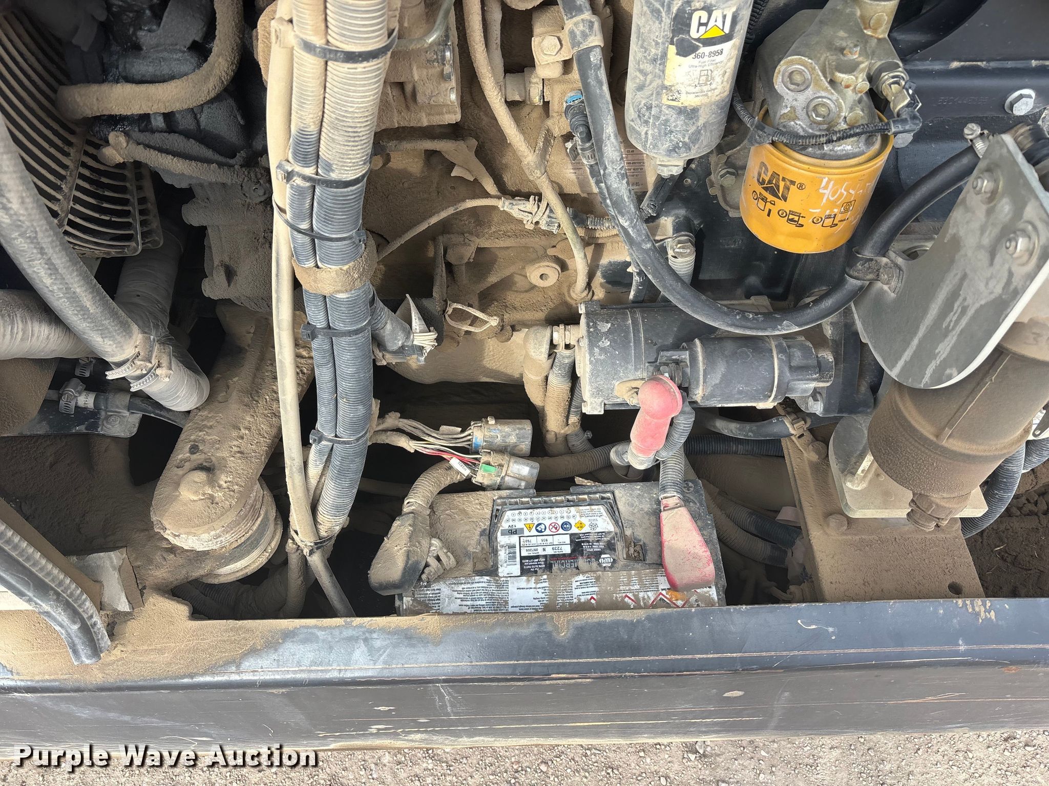 2014 Caterpillar TH514C telehandler. Hours: 4,948 on meter, Serial: MWC00343. Engine Model: 3706/2200, Serial: DFPXL034ADC, Displacement: 3.5, Cylinders: 4, Fuel type: Diesel. Transmission Powershift, 4F - 4R, Four wheel drive. Operators station OROPS, Steering: Crab, Four wheel. Features Maximum lift capacity: 11,020 lbs, Maximum lift height: 45', Boom stages: 3, Fork length: 48", Auxiliary hydraulics, Tilt carriage, Hydraulic outriggers, Hydraulic leveling, Quick attach: Manual. Tires Size: 14-24. Notes Hydraulic leak. Prime Contracting. Ashton, NE 68817