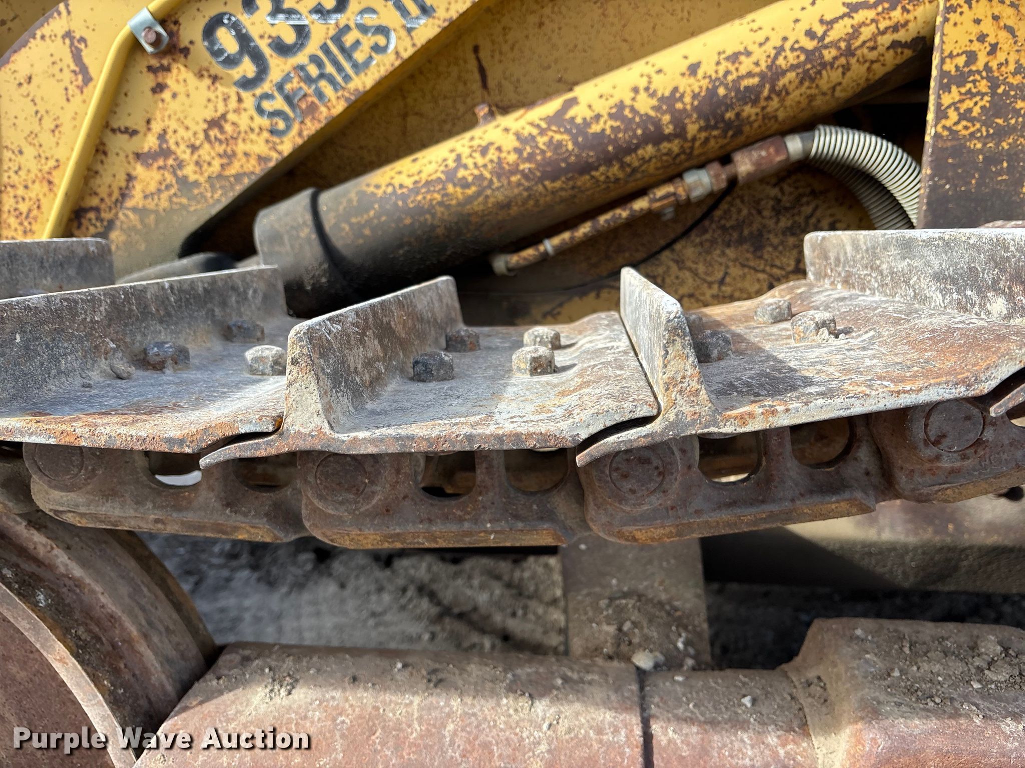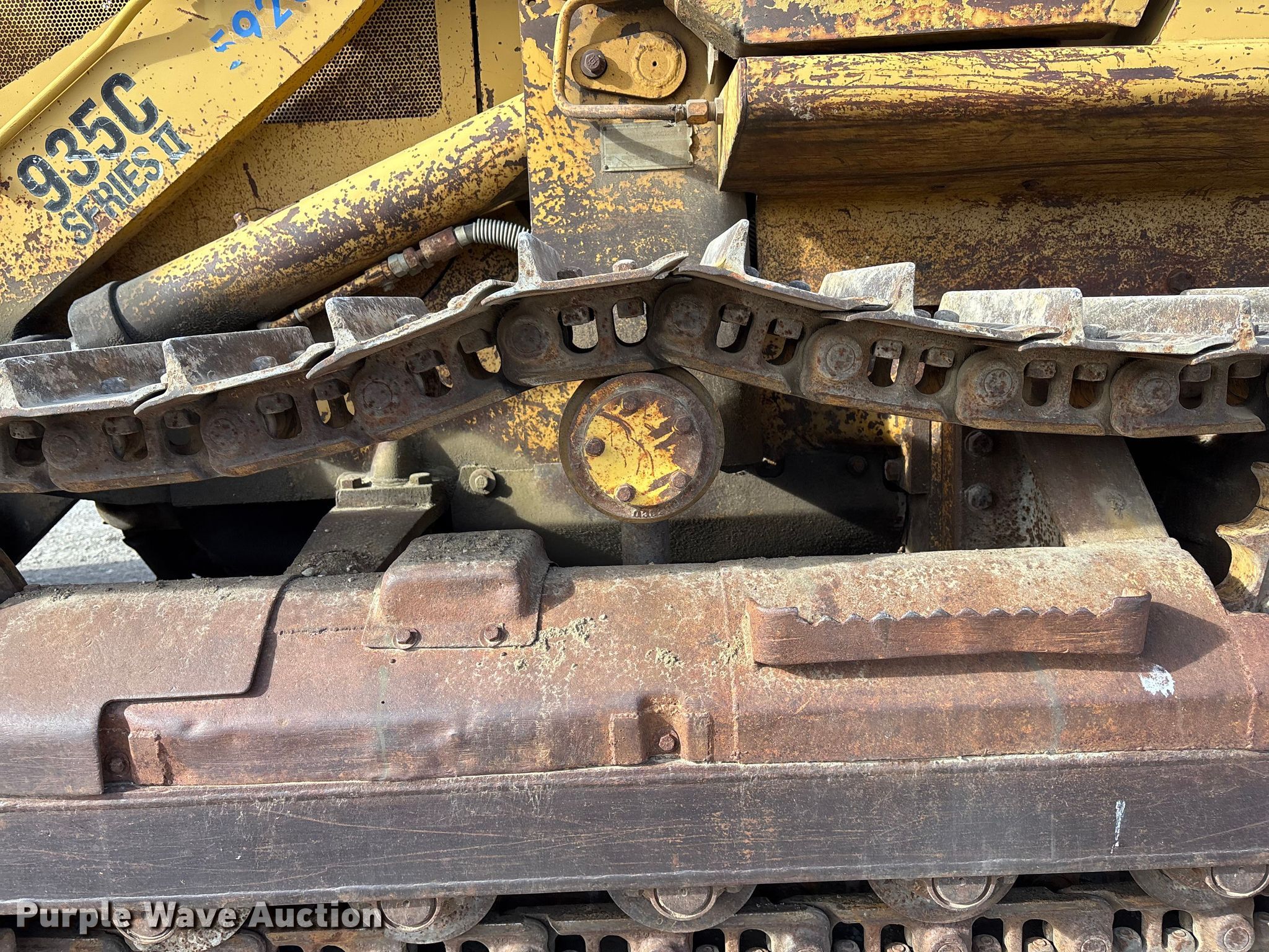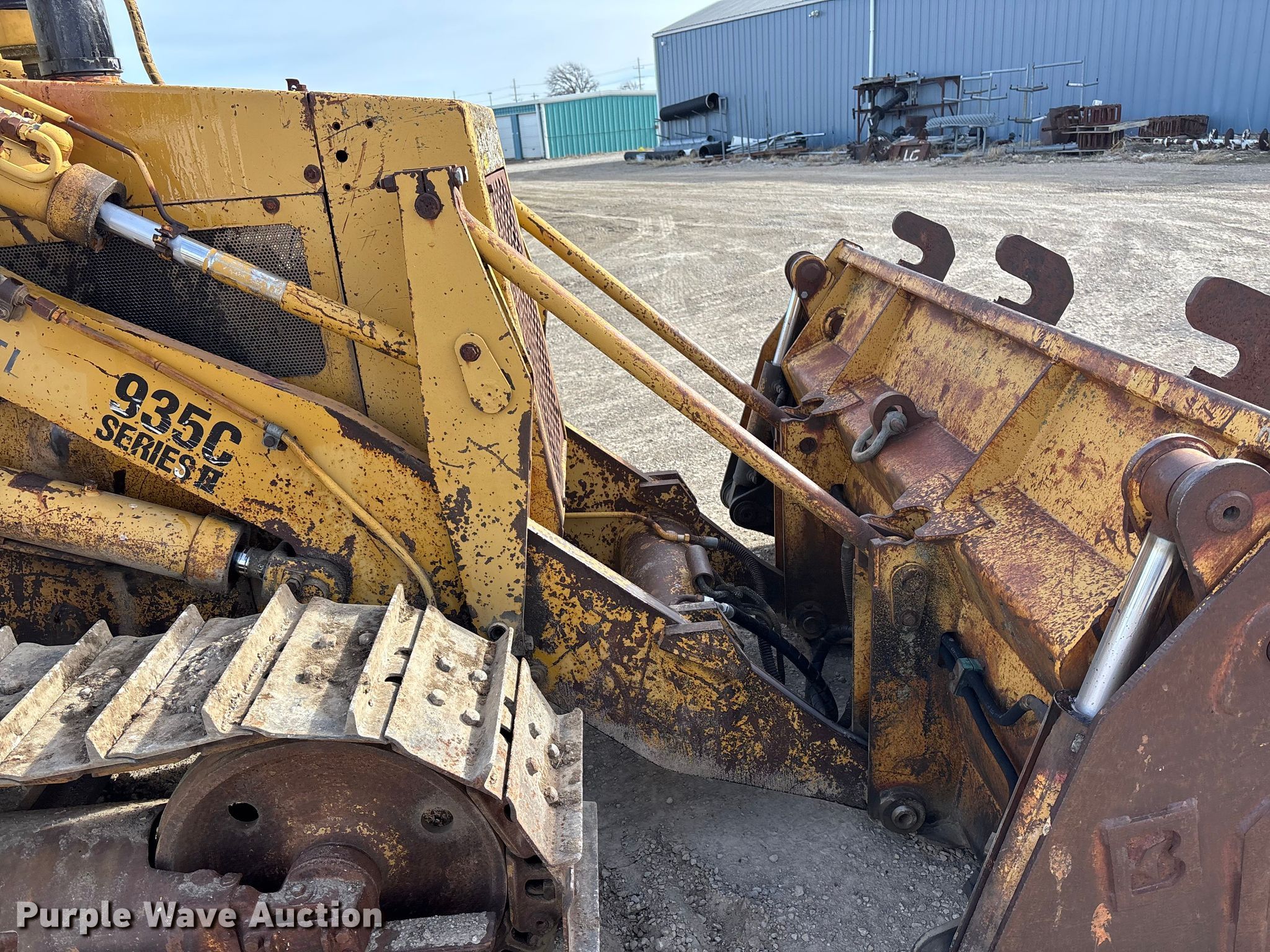 1992 Caterpillar 935C loader. Hours: 3,530 on meter, Serial: 5DJ00123. Engine Caterpillar 3204, Serial: 45399733, Cylinders: 4, Fuel type: Diesel. Transmission Powershift, 3F - 3R. Operators station Enclosed cab, Heat, Bucket controls: Two-lever. Features Auxiliary hydraulics: Front, Bucket Model: B3 5–1 M, Width: 84", Four-in-one, Cutting edge: Bolt-on, Teeth: 7. Tracks Width: 14", Grouser pads: Single. Notes Hydraulic leaks, Glass cracked. Hayden Tower Service Inc.. Topeka, KS 66618