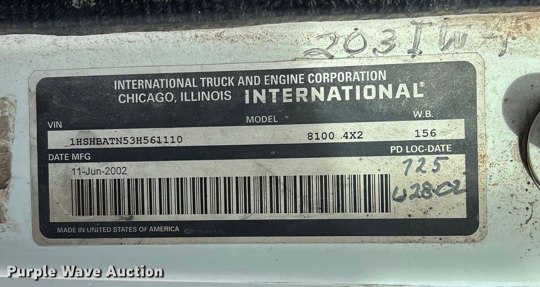 Purple Wave is selling a used Service Truck in Kansas. This item is a 2003 International 8100 utility / service truck with the following: Miles: 565,002 on odometer, Hours: 5,161 on meter, VIN: 1HSHBATN53H561110
