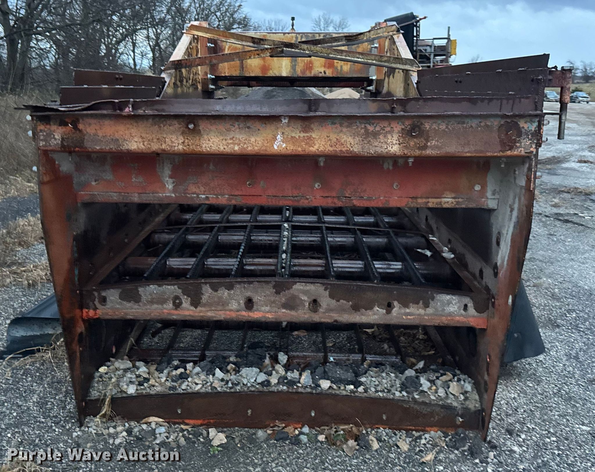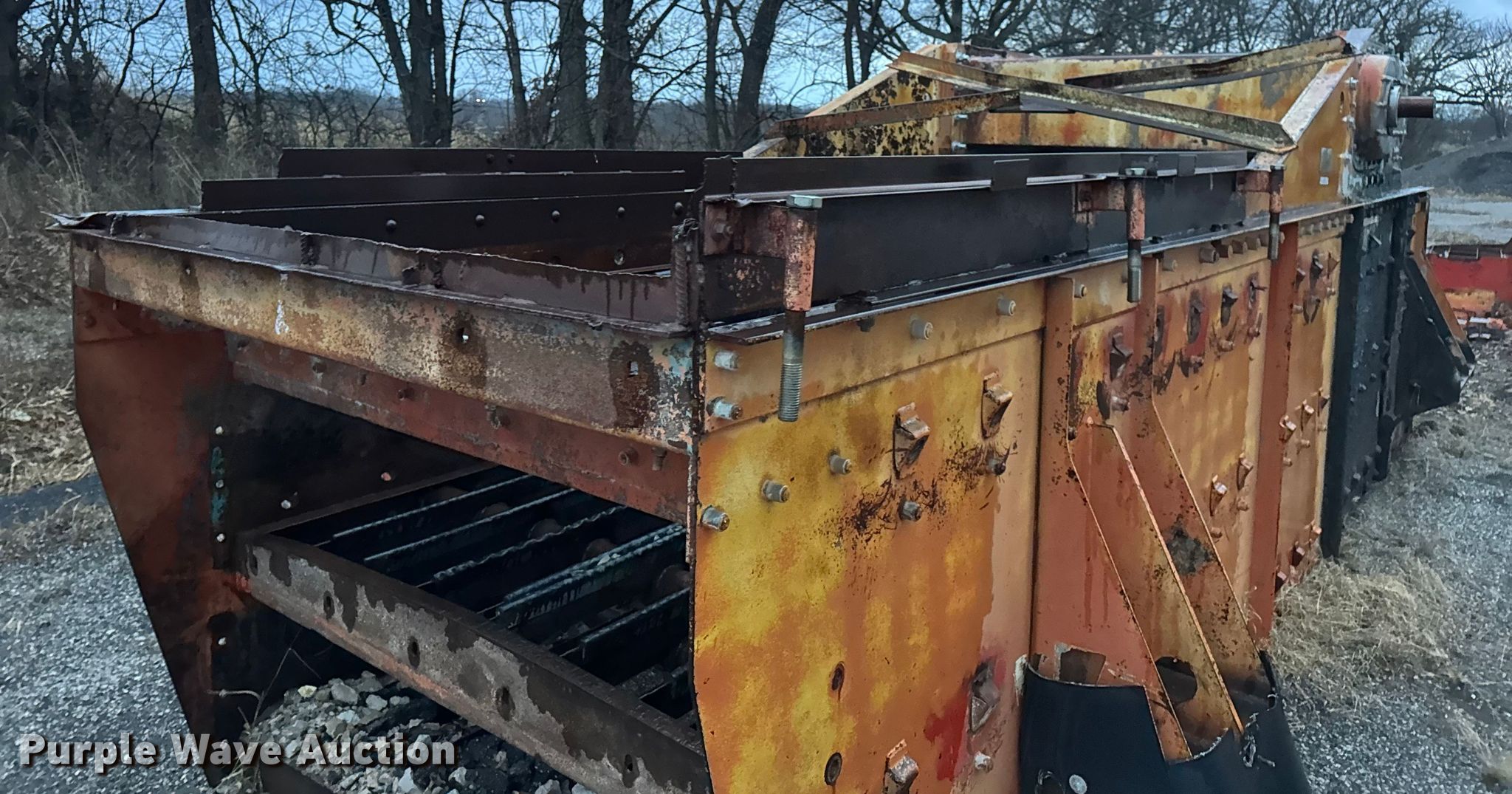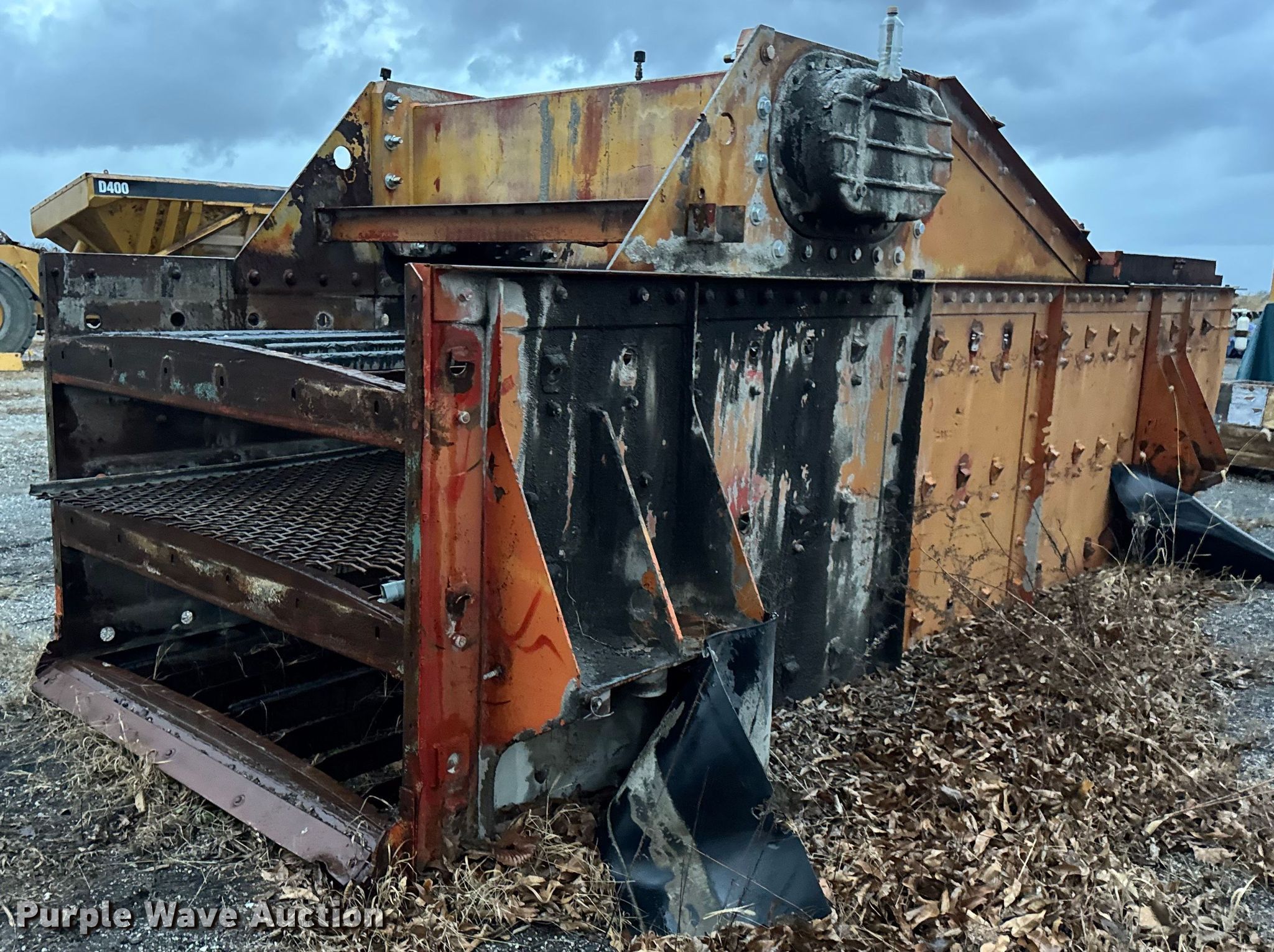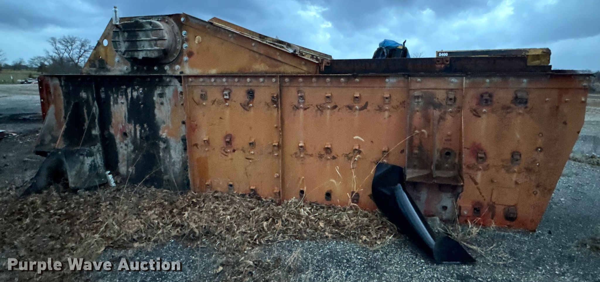 Simplicity screen. Serial: 3620-HS140D-1572. Features Screen deck Length: 20', Width: 6', Decks: Triple, Discharge Chute, Springs, Pullies. Notes Screens with screen deck do not fit asset, Motor missing. Otterville, MO 65348