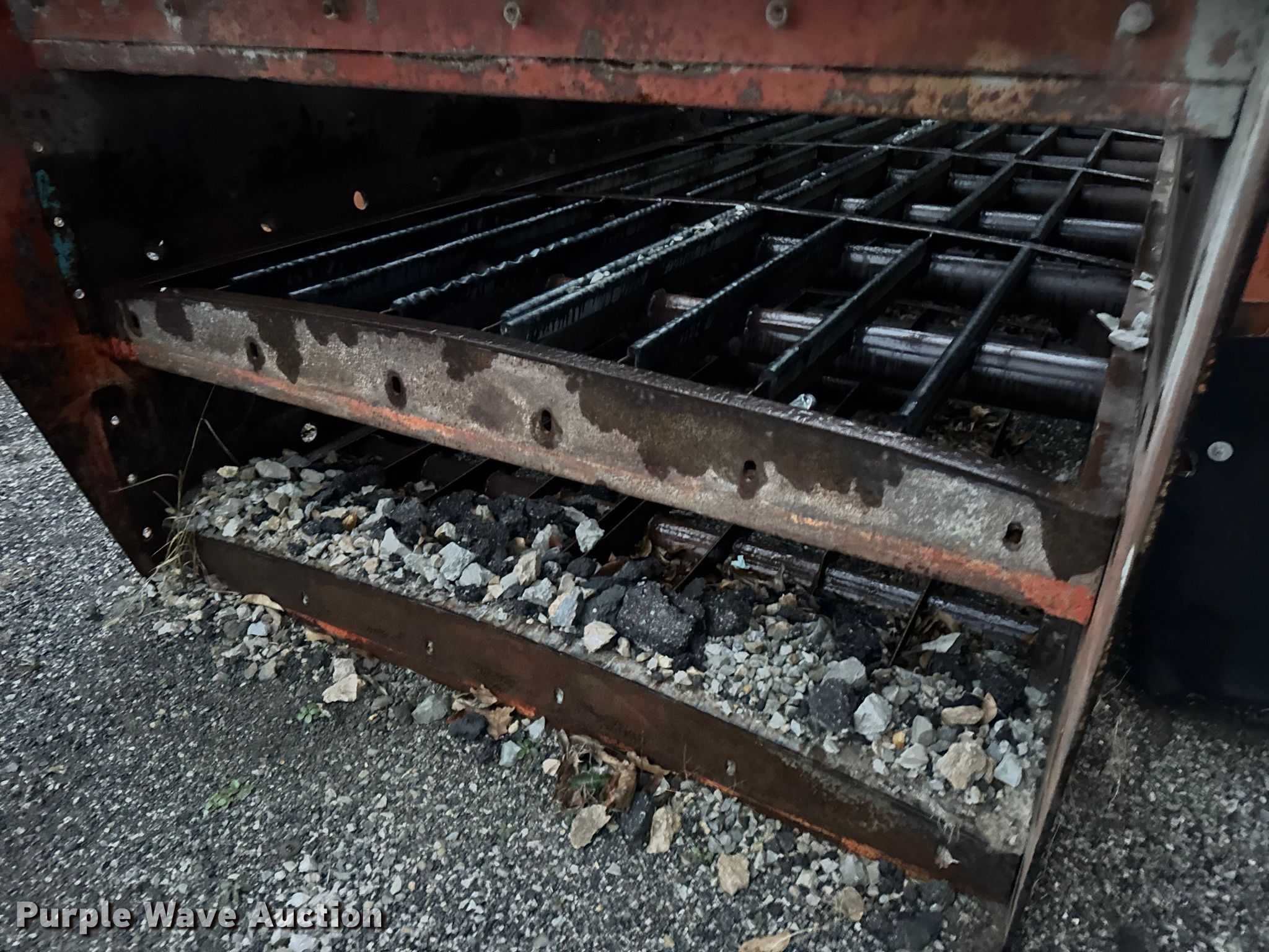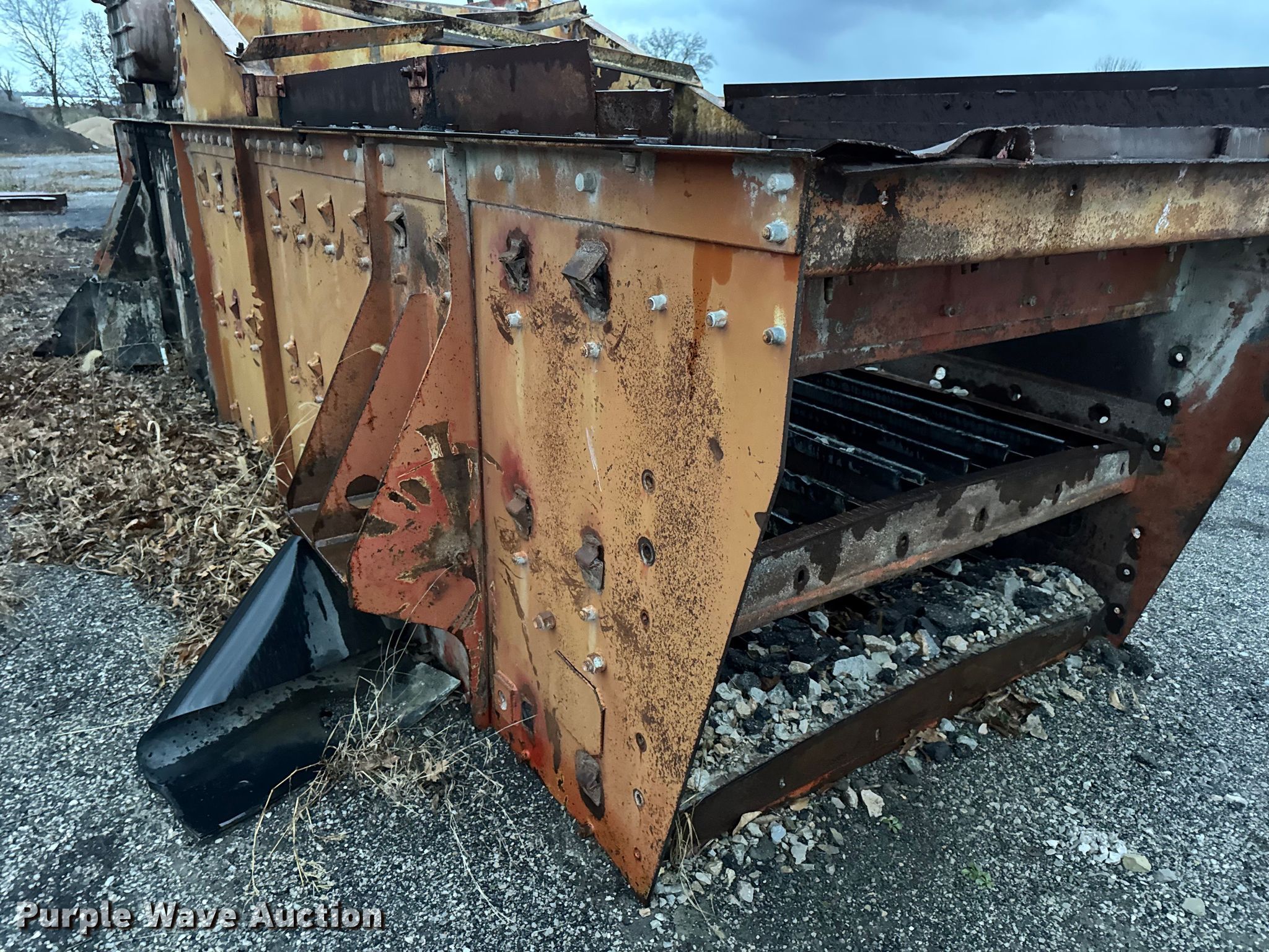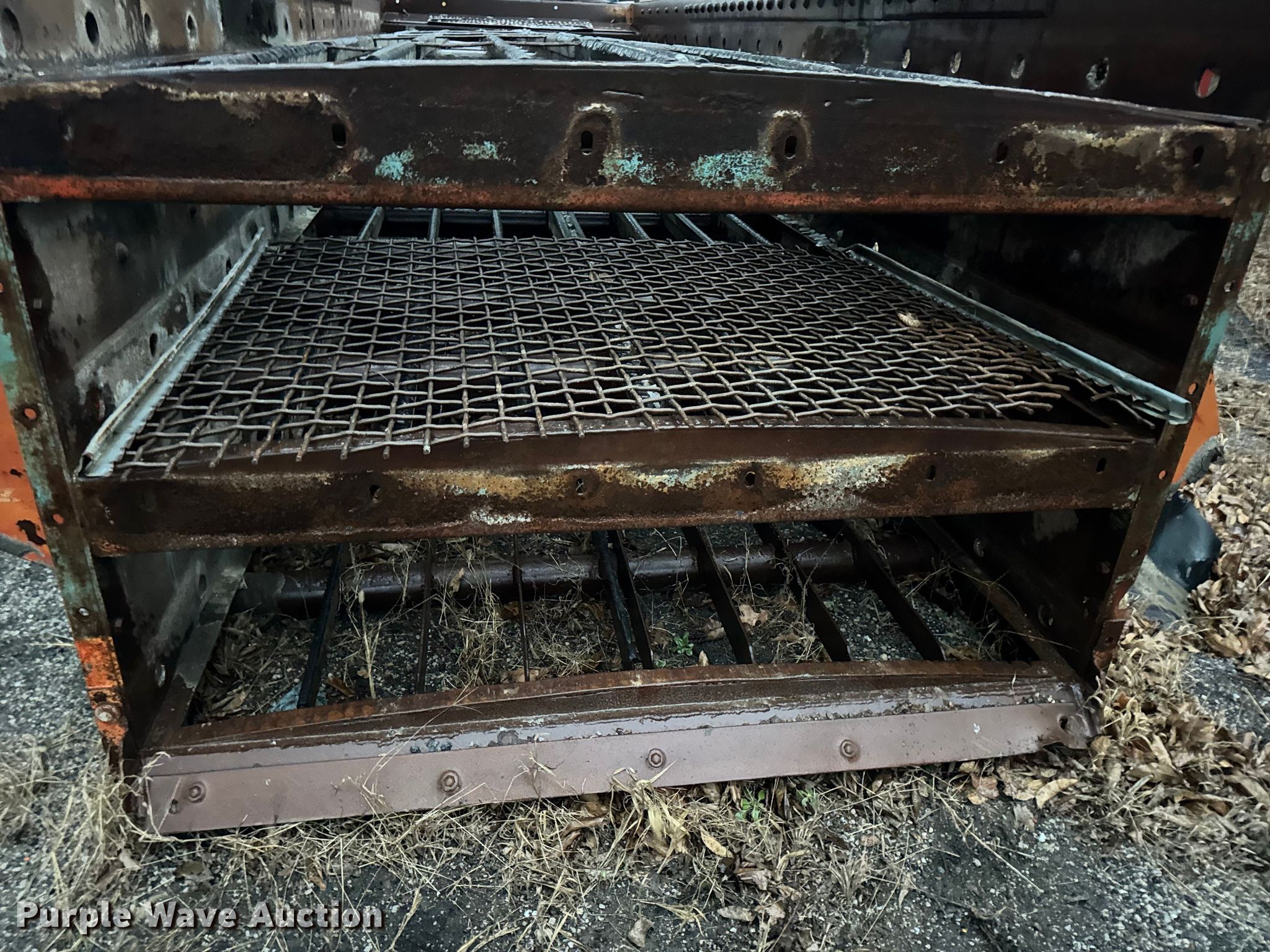 Simplicity screen. Serial: 3620-HS140D-1572. Features Screen deck Length: 20', Width: 6', Decks: Triple, Discharge Chute, Springs, Pullies. Notes Screens with screen deck do not fit asset, Motor missing. Otterville, MO 65348