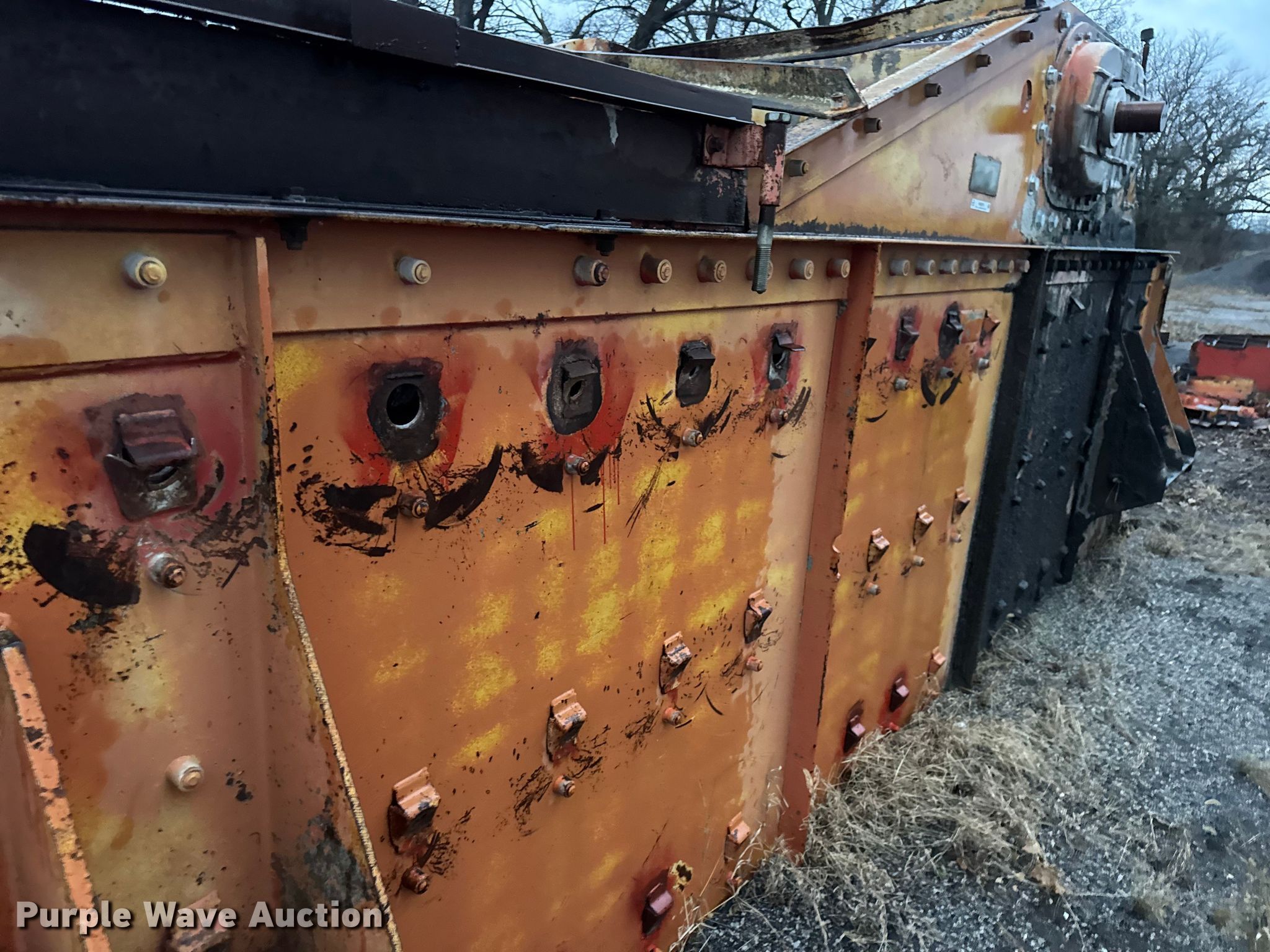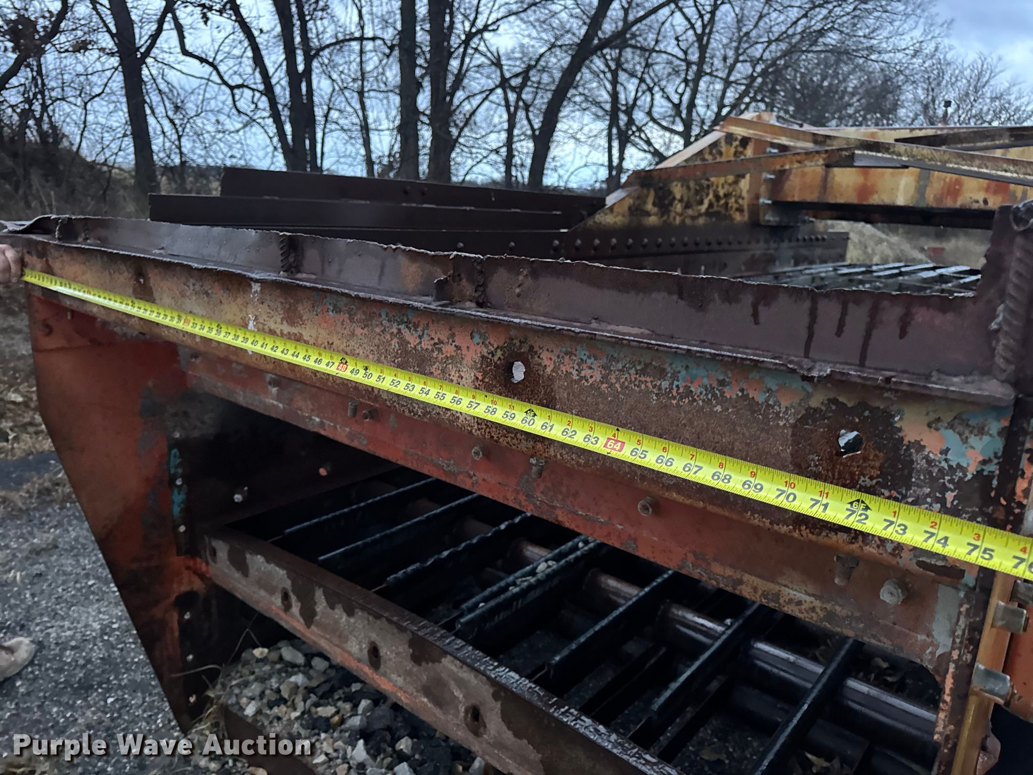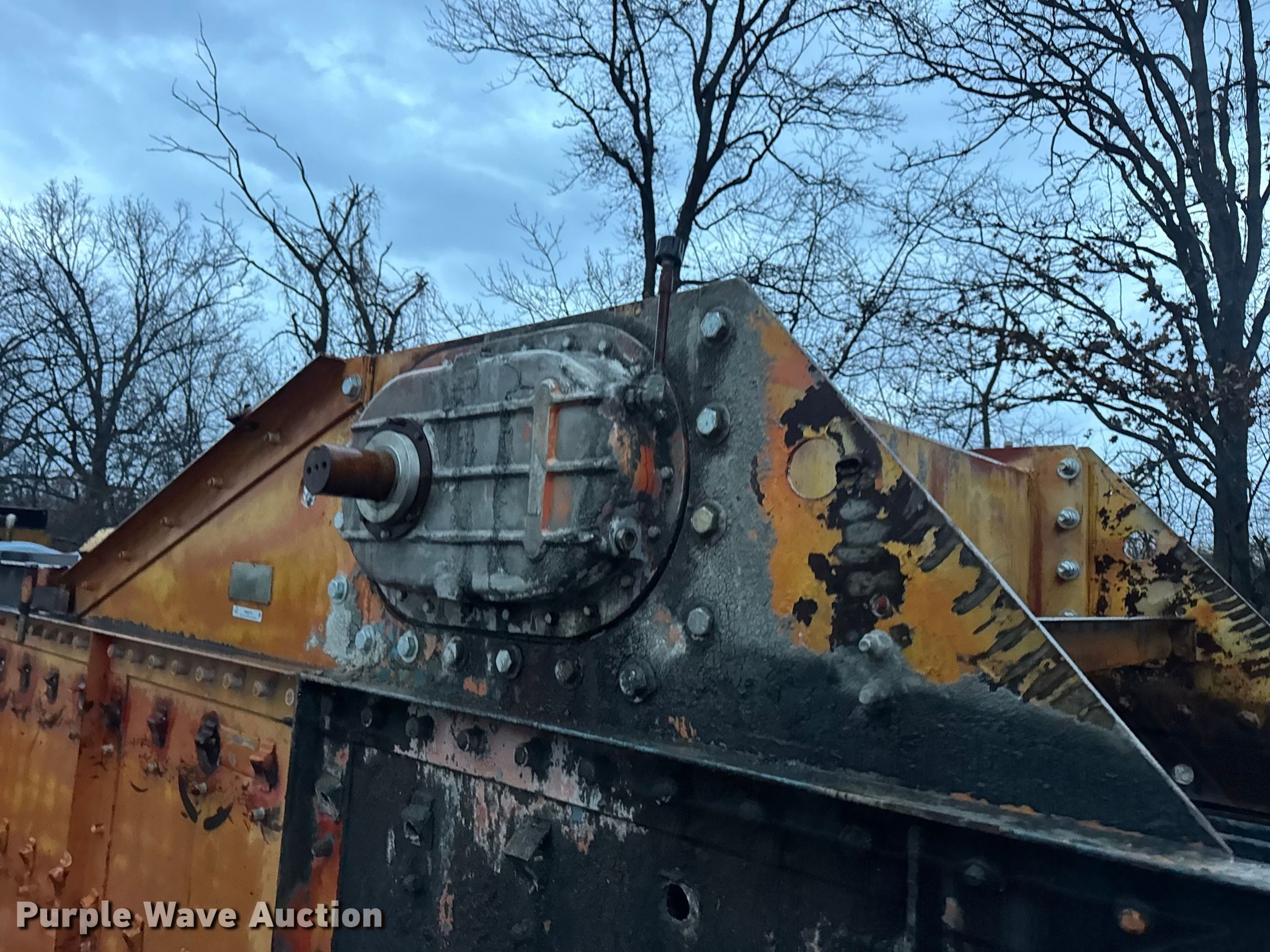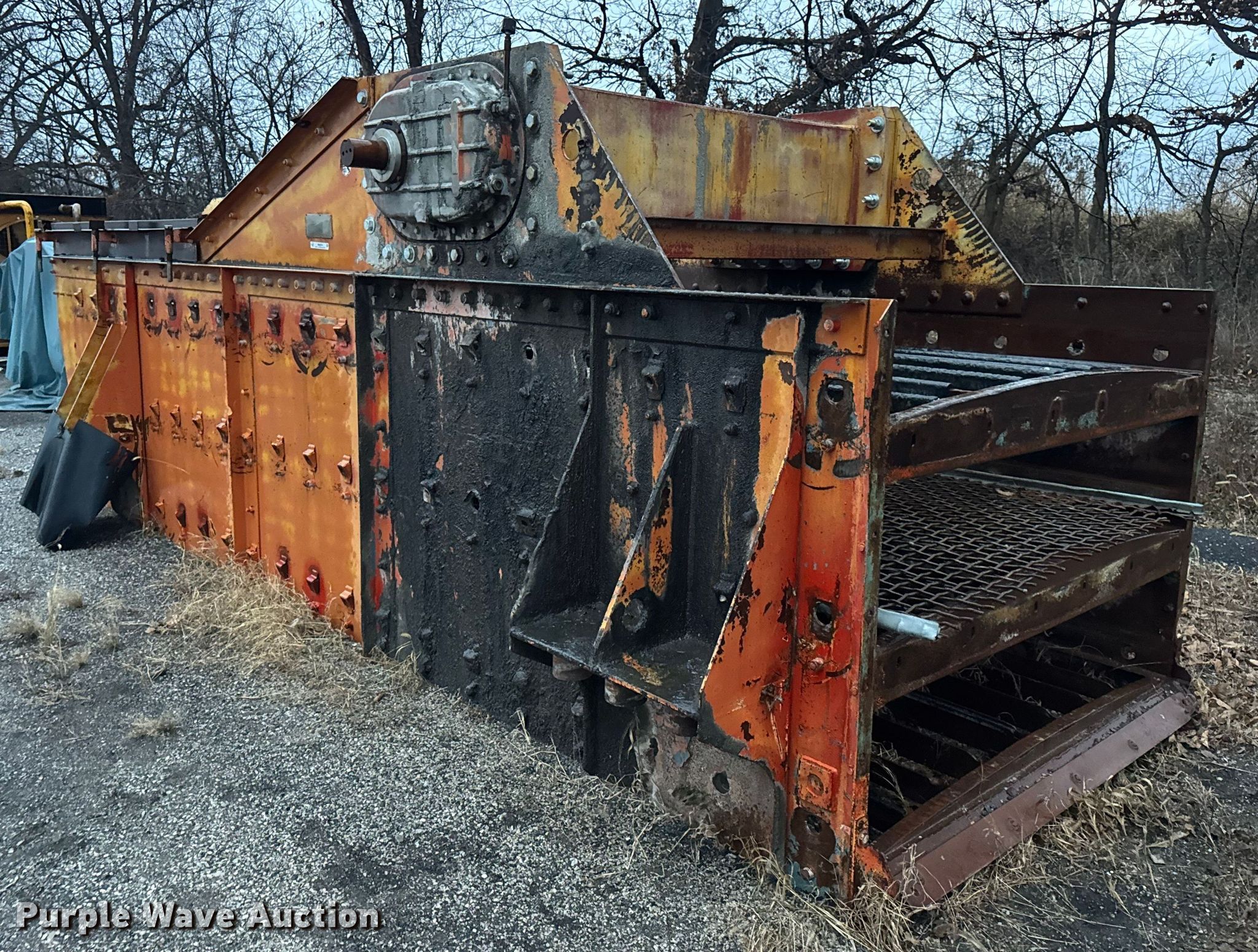 Simplicity screen. Serial: 3620-HS140D-1572. Features Screen deck Length: 20', Width: 6', Decks: Triple, Discharge Chute, Springs, Pullies. Notes Screens with screen deck do not fit asset, Motor missing. Otterville, MO 65348