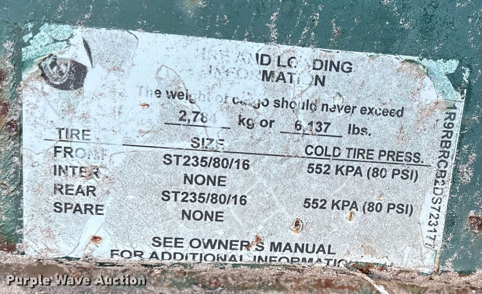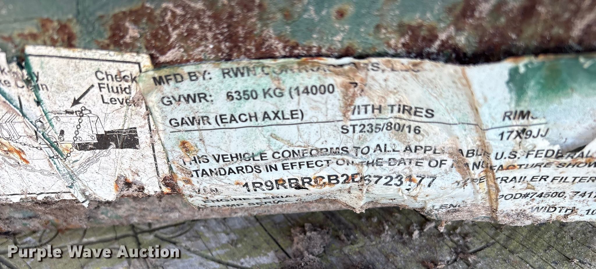 2013 RWN filter pod trailer. VIN: 1R9RBRCB2D6723177, Unit #: IQ17101. Dimensions Overall Length: 22' 6", Width: 108". Chassis Ball hitch: 2 5/16", Landing gear: Single, Suspension: Torsion, Brakes: Electric, Axles: Tandem, GVWR: 14,000 lbs. Tires Steel wheels, Size: 235/80 R16. Notes Rust damage, Electric brake wiring issues, damaged, Tire missing, Axle missing, Brake drum missing. This is worksite support equipment and will not come with a title. Transfer of ownership documentation will be a bill of sale. LAC Services – Fabrication. Robstown, TX 78380