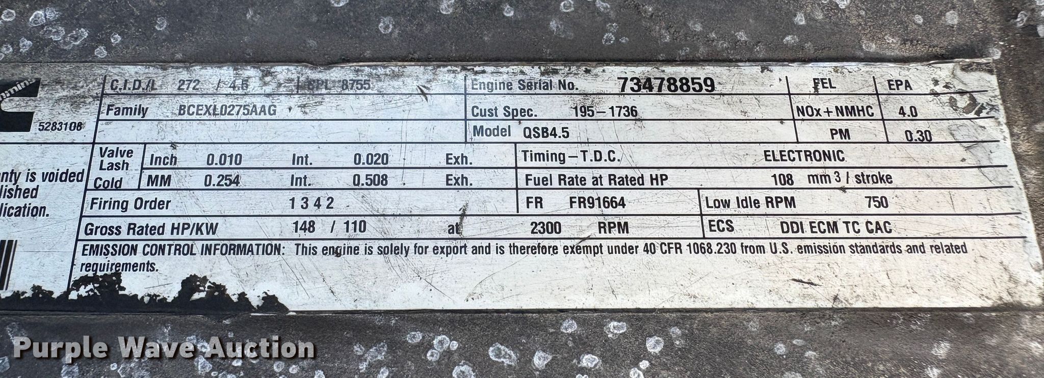 2013 Ditch Witch JT30 directional boring unit. Hours: Unknown, Serial: CMWJT30XPD0000056, Unit #: 93114805. Engine Cummins QSB4.5, Serial: 73478859, Displacement: 4.5L, Cylinders: 4, Fuel type: Diesel. Operators station Enclosed cab. Features Water pump, Drill stems On drill: 49, Drill stem length: 10' Diameter: 3", Auto rod loader, Rear hydraulic stabilizers, Hydraulic stake down. Tracks Width: 11", Rubber. Notes Collision damage, Parts missing, Non-operational unit. Insurance salvage, stored at a secured facility. Please review REQUIRED REMOVAL INSTRUCTIONS. Insurance Salvage. Billings, MT 59101