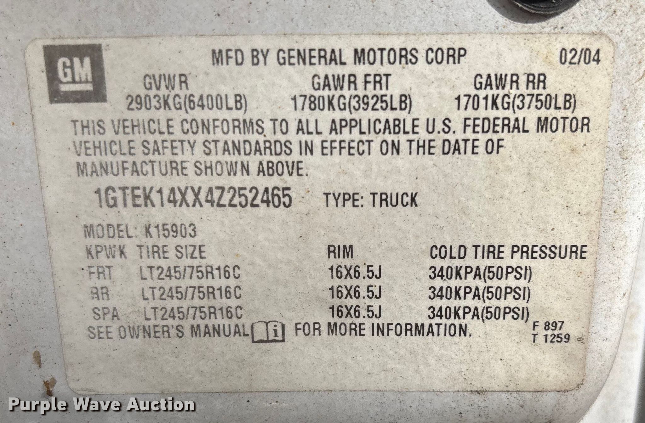 Purple Wave is selling a used 1/2 Ton Pickup or Van in Florida. This item is a 2004 GMC Sierra pickup truck with the following: Miles: Unknown, VIN: 1GTEK14XX4Z252465