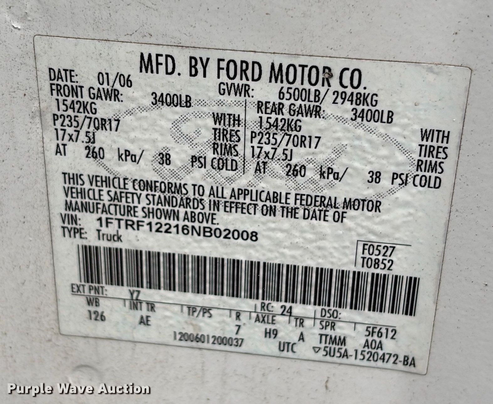 Purple Wave is selling a used 1/2 Ton Pickup or Van in Florida. This item is a 2006 Ford F150 XL Ext. Cab pickup truck with the following: Miles: 104,665 on odometer, VIN: 1FTRF12216NB02008