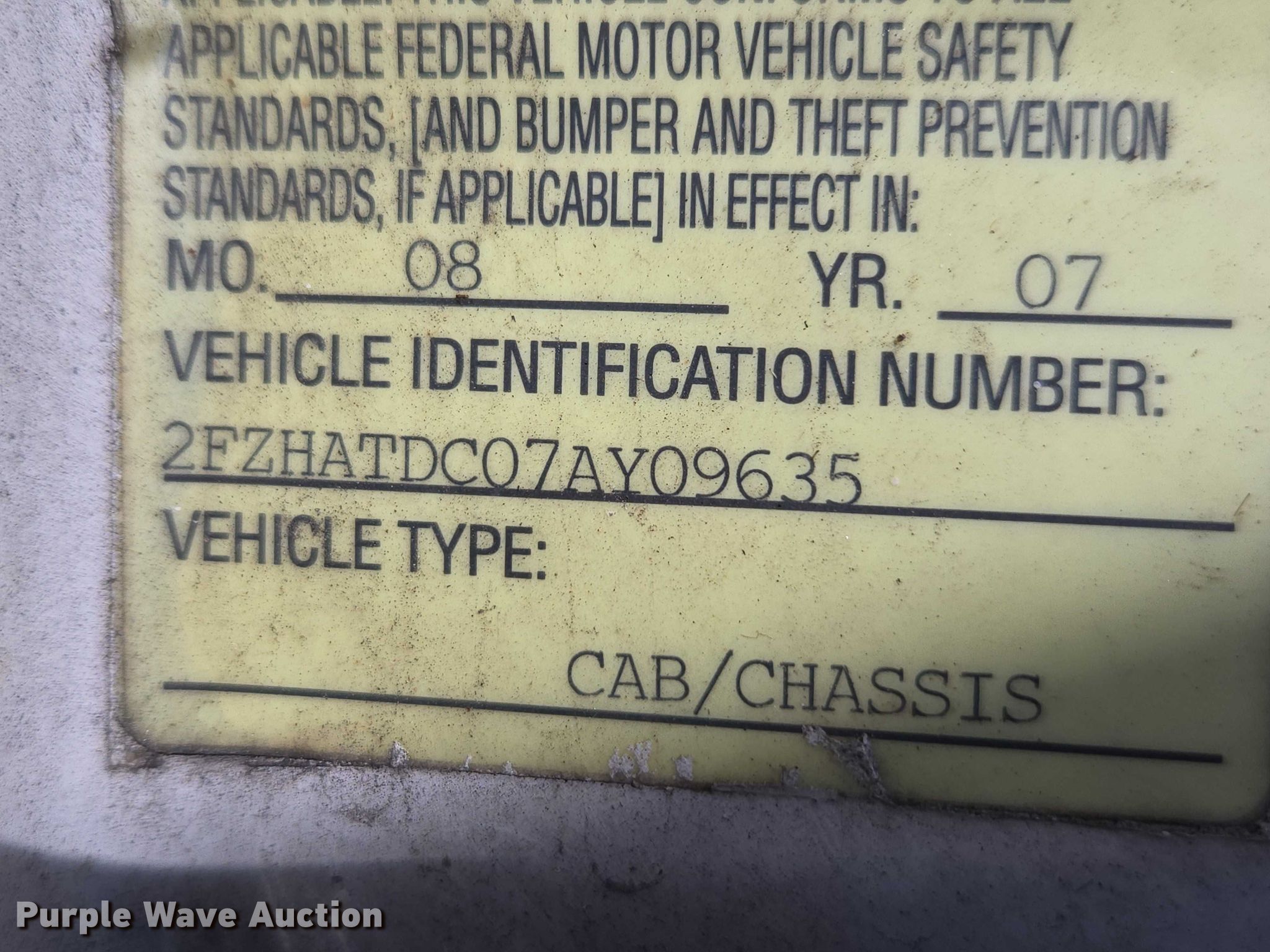 2007 Sterling Truck L7500 Series sewer jetter truck. Miles: 77,051 on odometer, VIN: 2FZHATDC07AY09635. Engine Caterpillar C7, Displacement: 7.2L, Cylinders: 6, Fuel type: Diesel. Transmission Automatic. Chassis Axles: Tandem, Differential lock: Inter-axle, Suspension: Spring over walking beam, Brakes: Air, PTO, GVWR: 60,000 lbs. Interior AC, Heat, Cruise control. Features Bed vac-con VDP3612LHA, Serial: 08074694, Length: 18', Width: 98", Rear outlet: 6", Engine Duetz BF 6M 2012C, Cylinders: 6, Fuel type: Diesel, Water pump Giant GP8055R, Serial: 001013, Hose reel Front, Hydraulic, Diameter: 1", Telescopic boom Diameter: 8", Length: 15'.. Tires Size: 11R22.5, Front: 425/65R22.5. Notes Jump start required during on-site data collection, Oil leak, Unknown operating condition of secondary engine. Florida title. Seller is a government entity who will be assigning and distributing the title. Please contact the seller for distribution questions. City of Port St. Lucie. Port St. Lucie, FL 34983