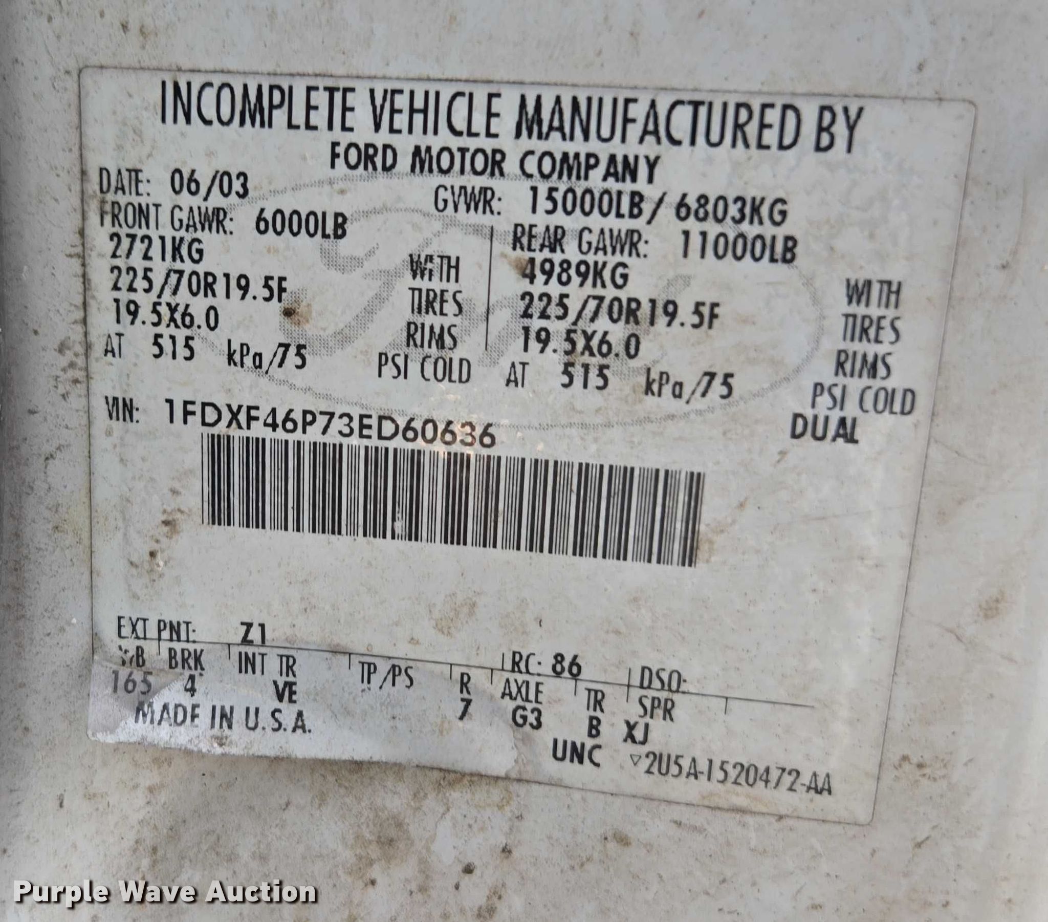 - VIN: 1FDXF46P73ED60636