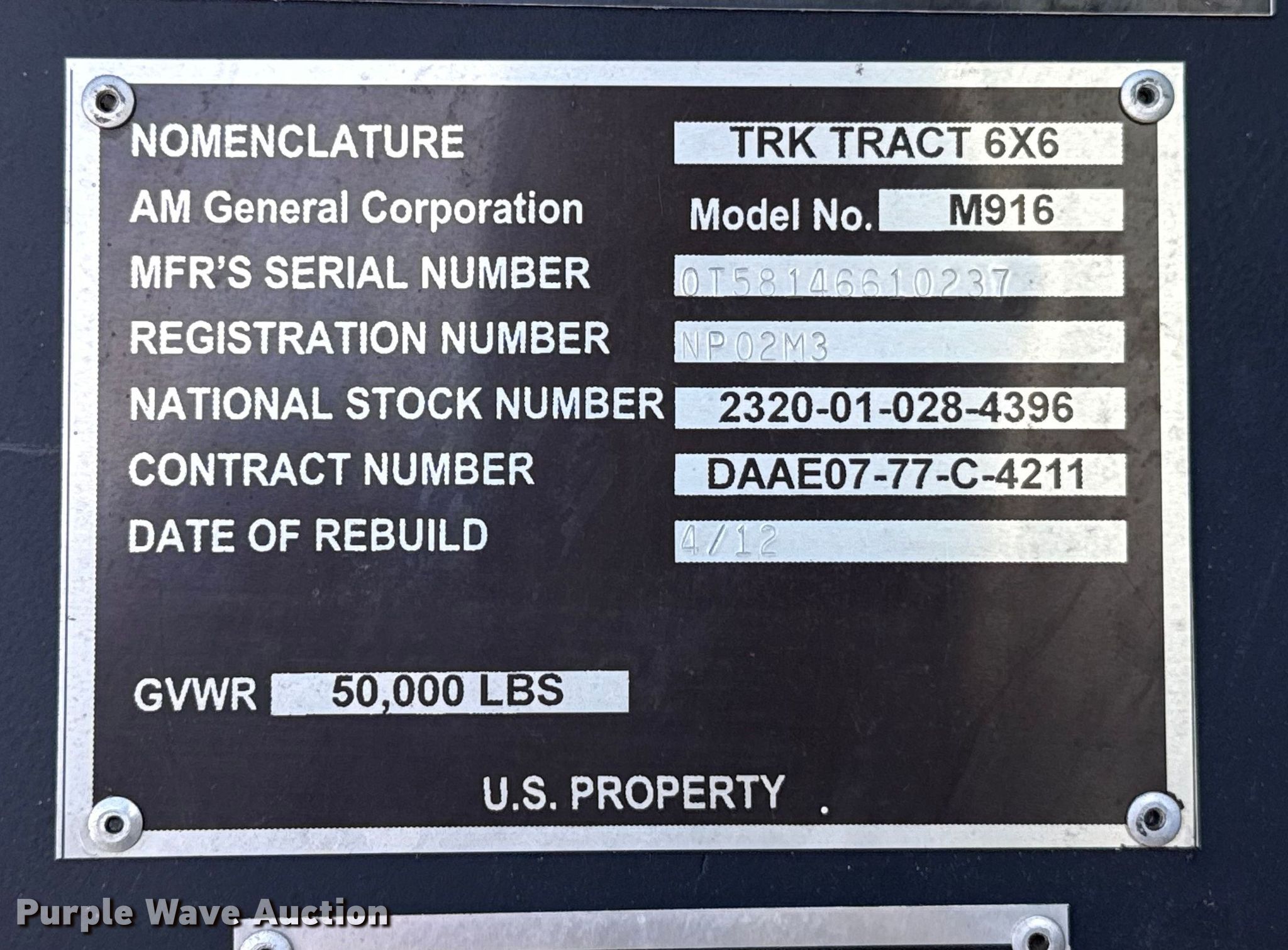 Take a look at this used 1974 AM General M916 semi truck being sold on January 20th, 2026 in the Tuesday January 20 Government Auction made by AM General. Take a look at all of the item information below or take a look at similar auctions for Trucks.