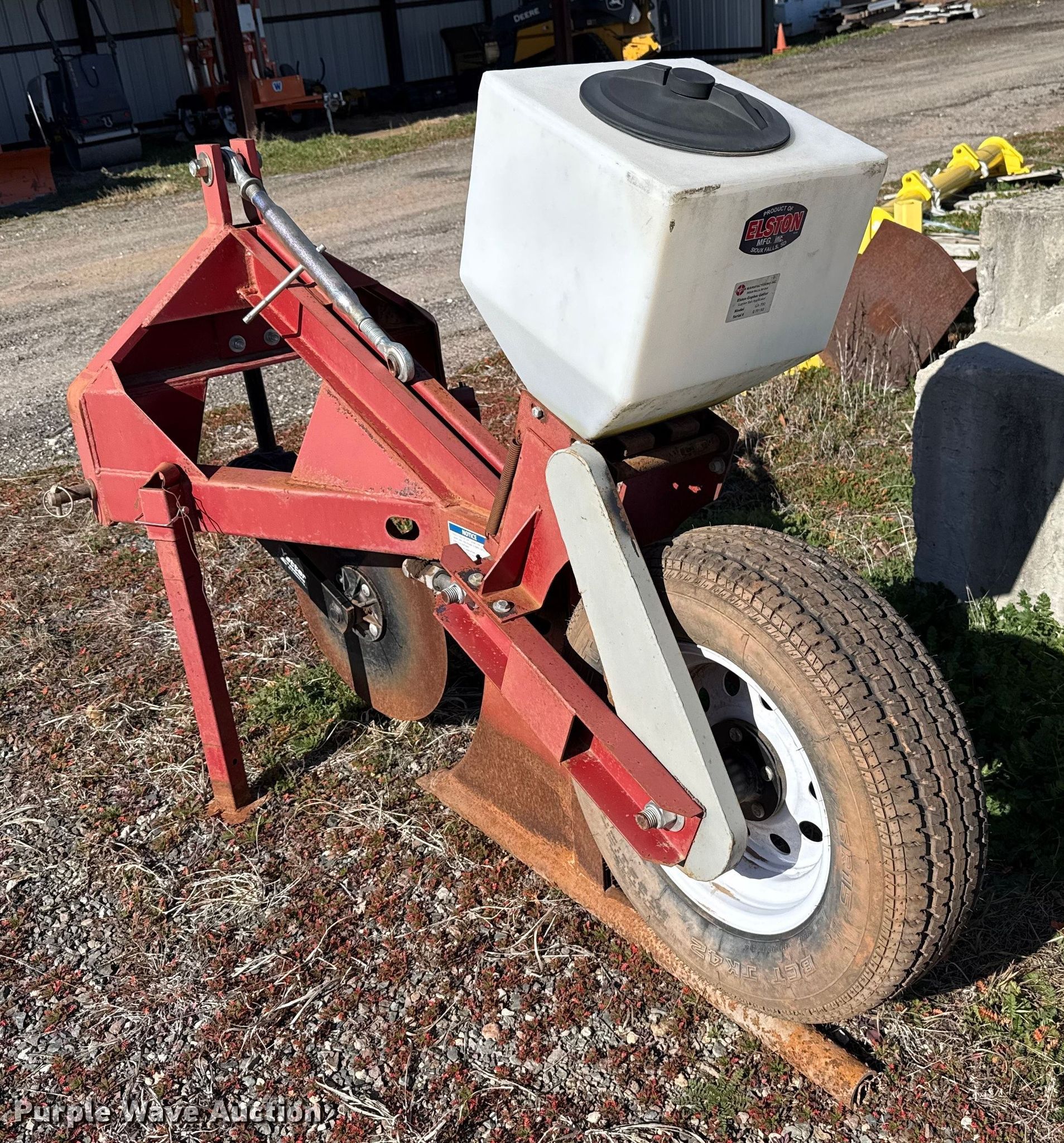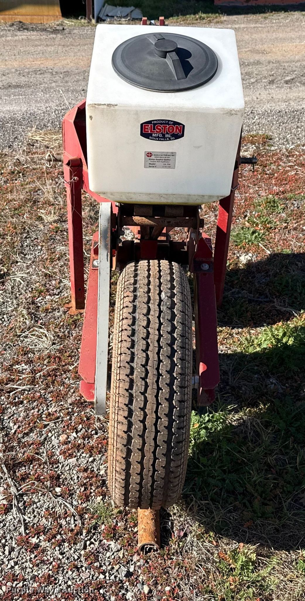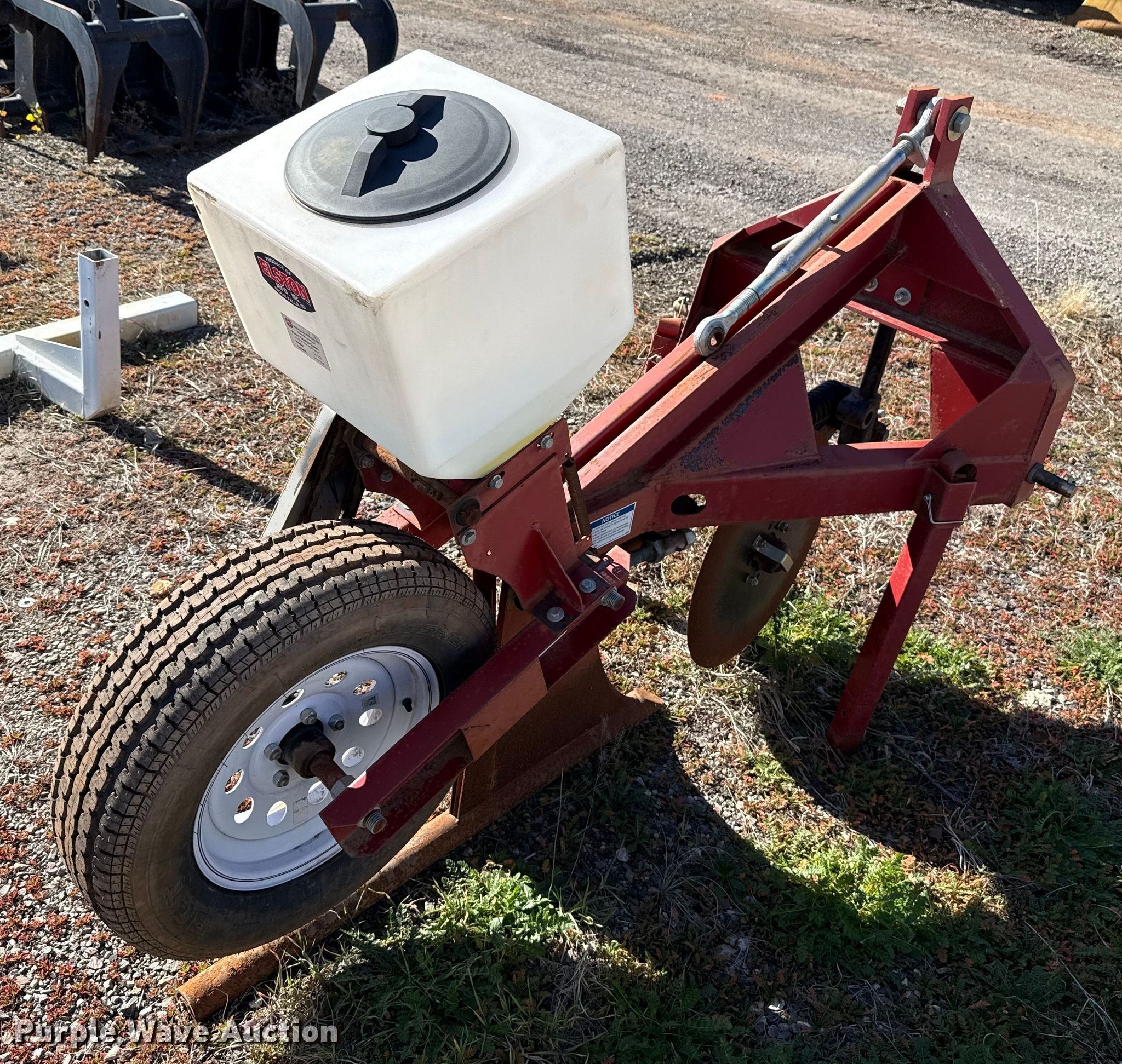 Purple Wave is selling a used Ag Tractor Loader or Attach. in Oklahoma. This item is a Elston GA-700 Gopher bait applicator with the following: Hitch: Three-point, Disk diameter: 22", Ground driven, Tire size: ST205/75R15