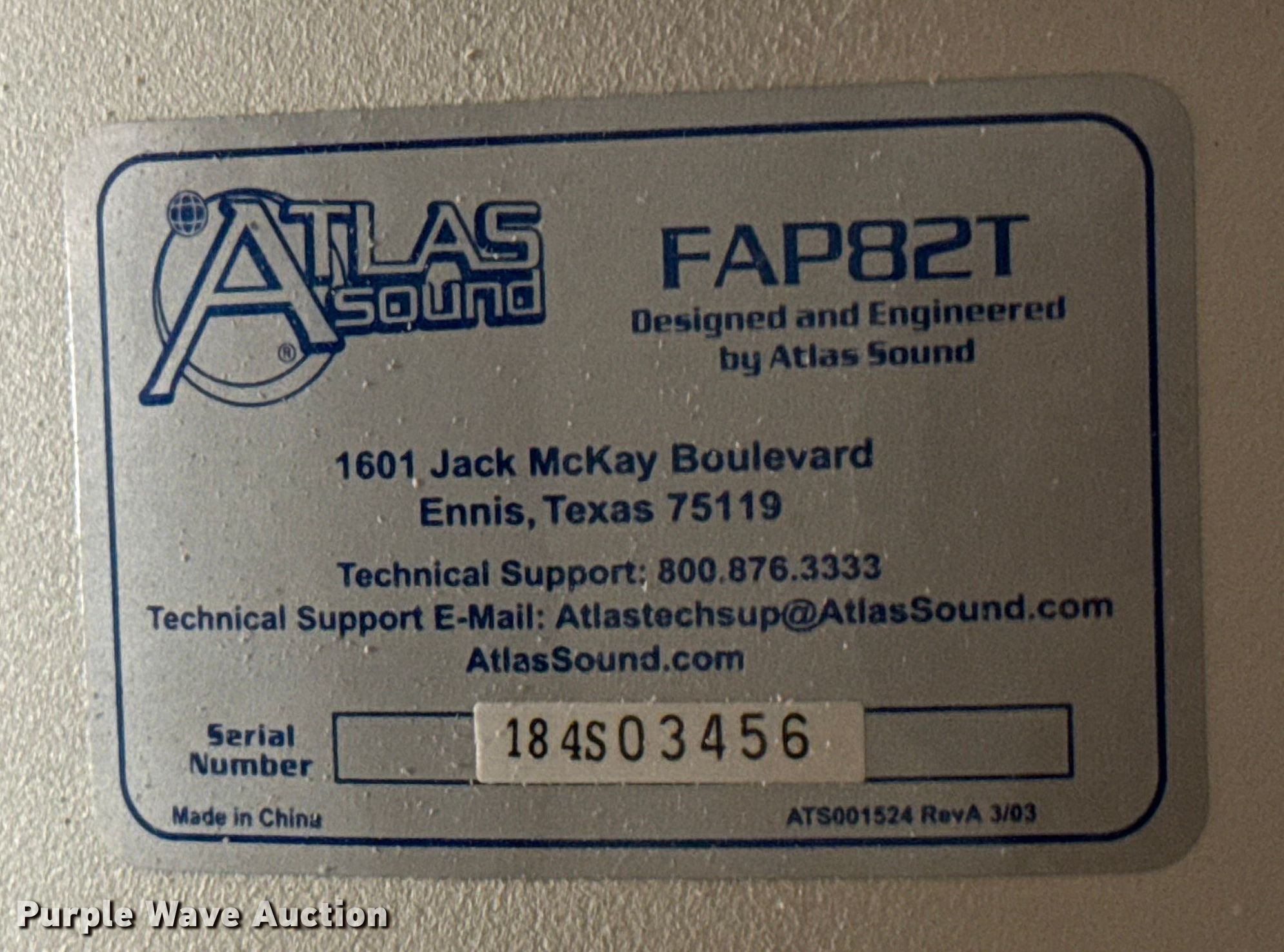 Take a look at this used Atlas Sound FAP82T speakers being sold on January 20th, 2026 in the Tuesday January 20 Government Auction made by Atlas Sound. Take a look at all of the item information below or take a look at similar auctions for Furniture.
