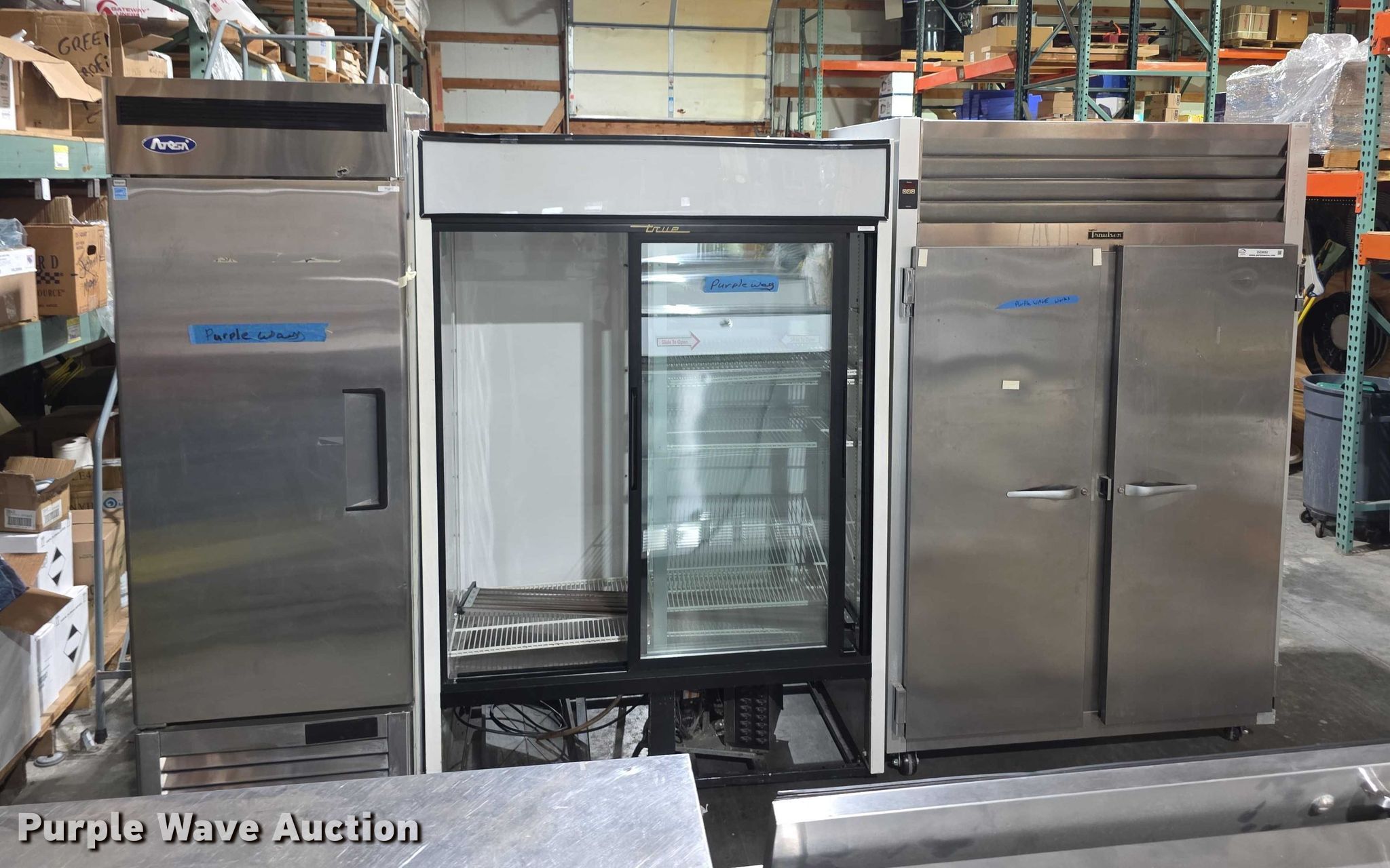 Purple Wave is selling a used Restaurant Equip. in Kansas. This item is a Restaurant equipment with the following: Traulsen Freezer, Dimensions, 53" x 35" x 82",, True Cooler, Dimensions, 54" x 30" x 80",, Atosa Cooler, Dimensions, 27" x 32" x 83", Unknown operating condition