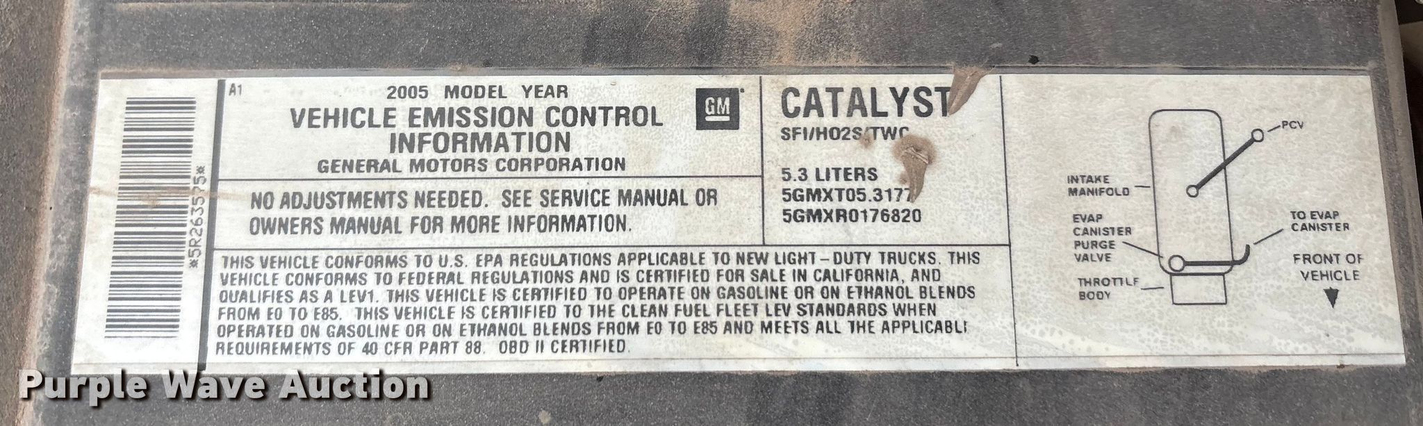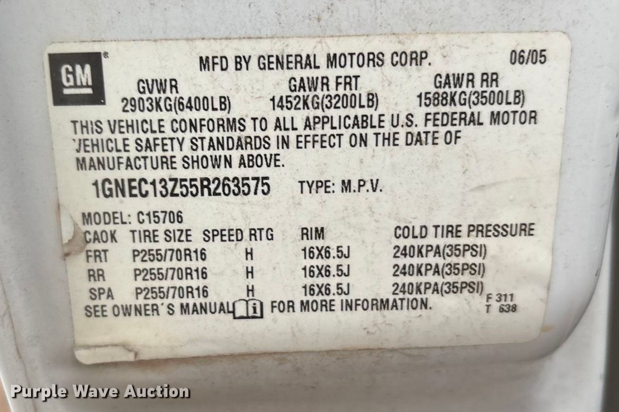 Purple Wave is selling a used Passenger Vehicle in Oklahoma. This item is a 2005 Chevrolet Tahoe SUV with the following: Miles: 115,342 on odometer, VIN: 1GNEC13Z55R263575, Unit #: 1143