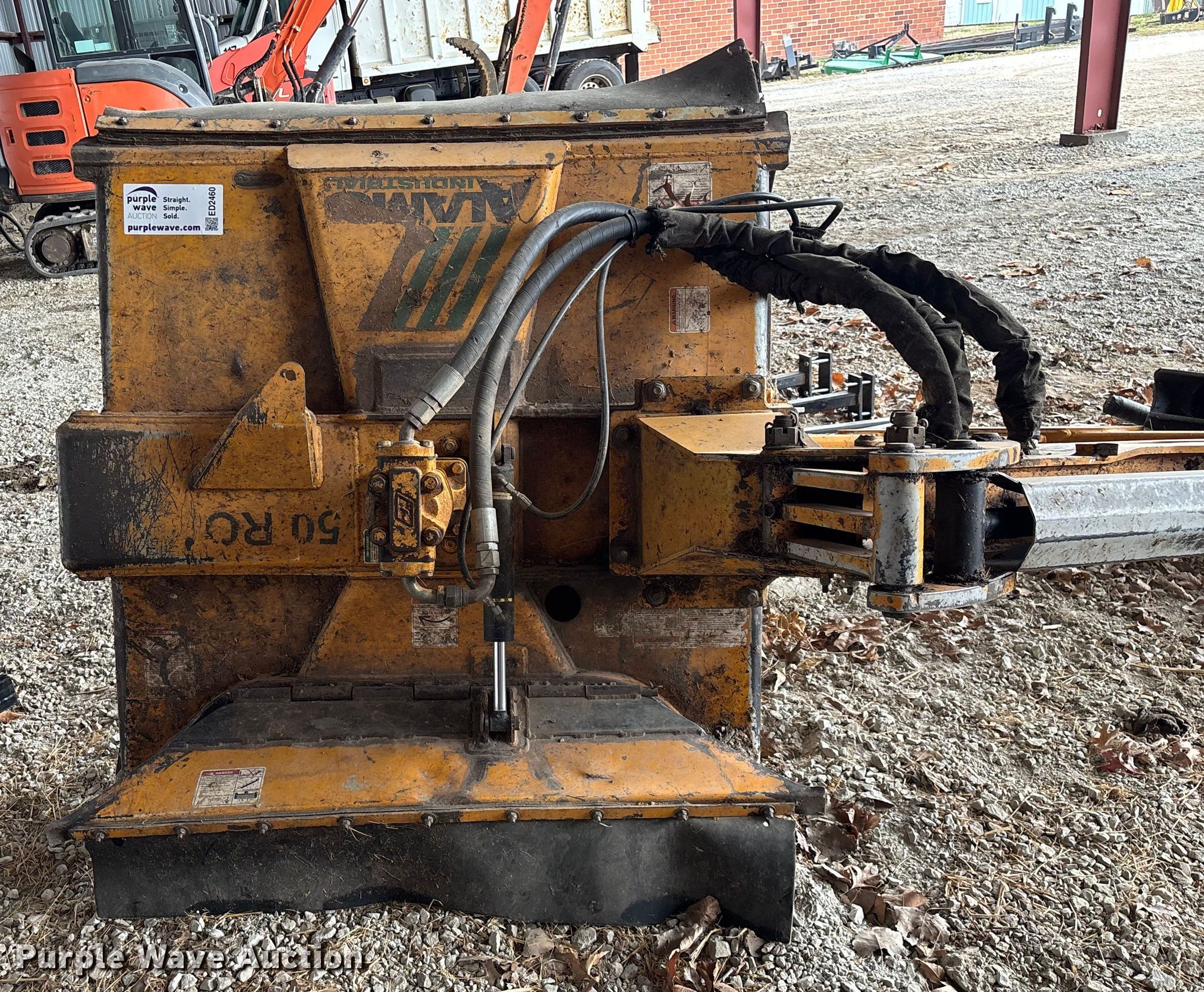Alamo Industrial 50 PR side boom mower. Features. Width: 50", Hydraulic lift, Hydraulic fold, Hydraulic pump, Controls. Notes Boom hydraulic cylinder mount issues, broken, Bracket weld repairs, Bracket cut, Transport chain on pump not included. Vernon County, MO. Nevada, MO 64772