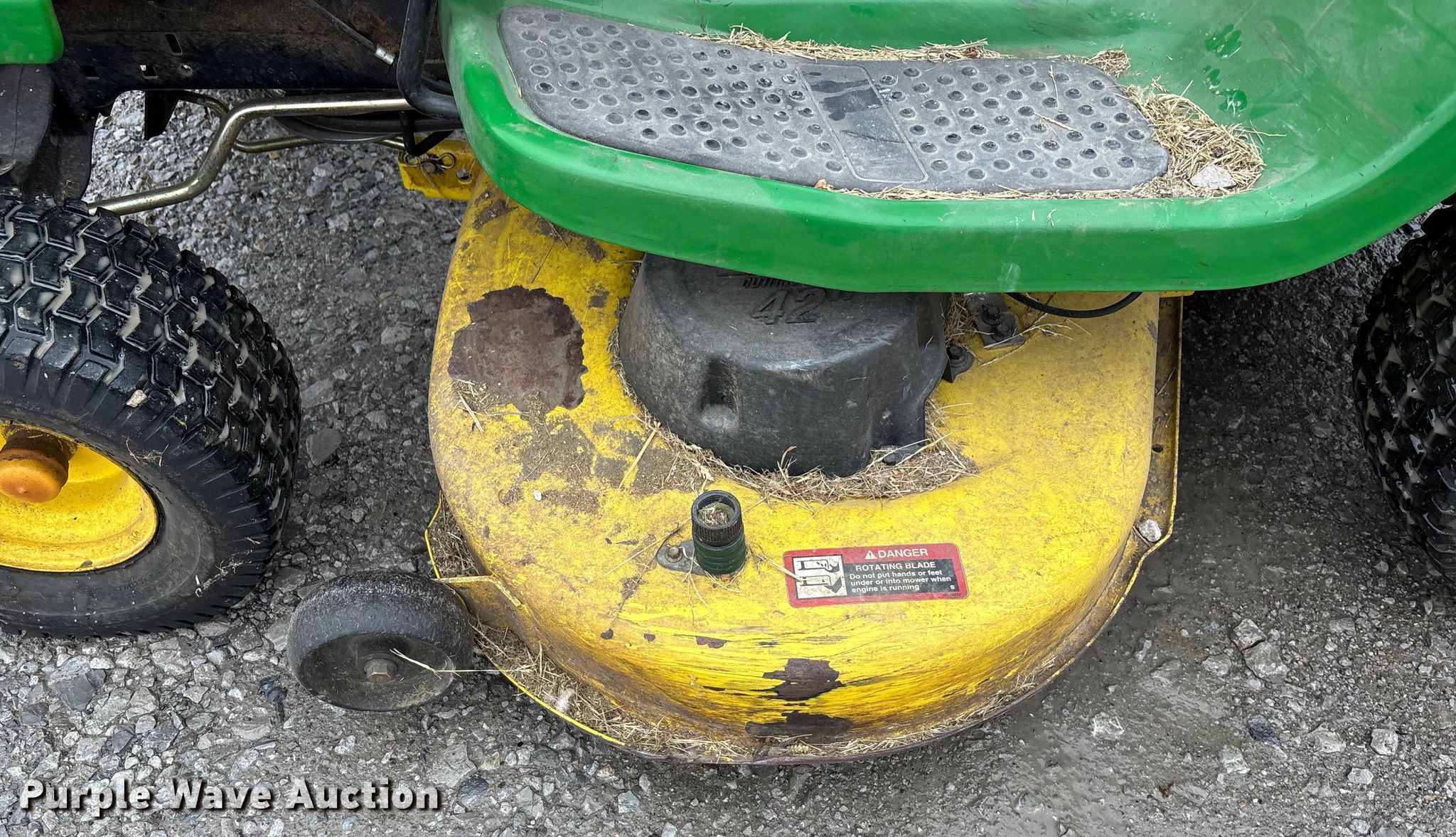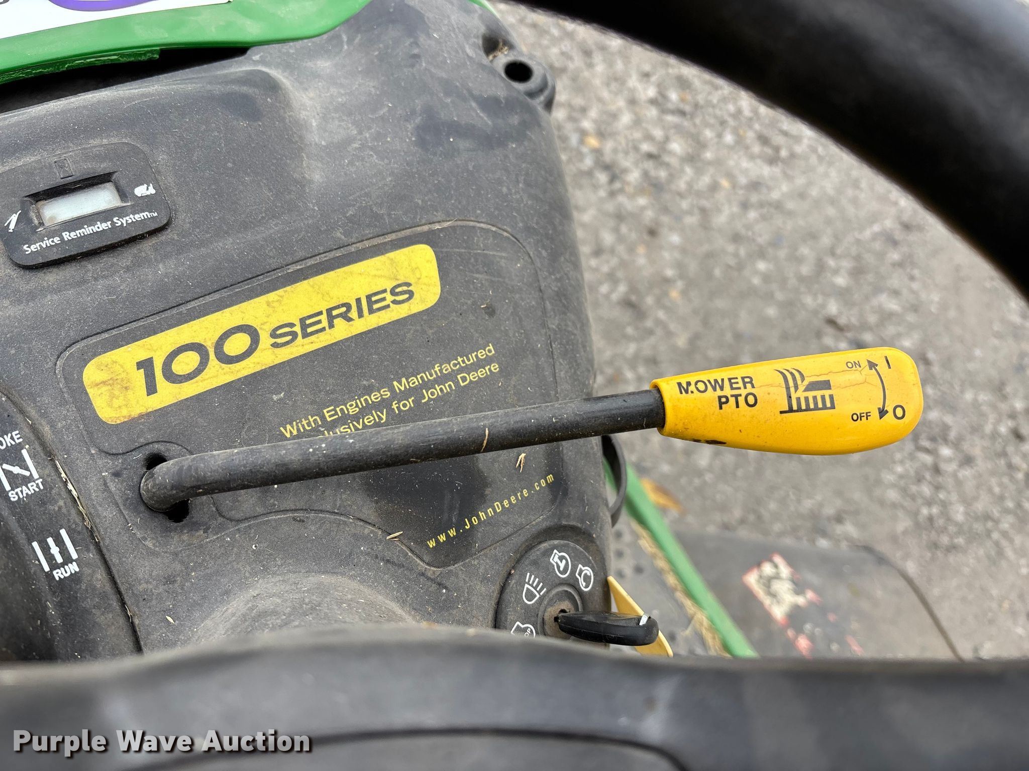Purple Wave is selling a used Lawn Mower in Kansas. This item is a 2009 John Deere LA105 lawn mower with the following: Hours: 289 on meter, Cutting width: 42", Serial: GXA105A230866