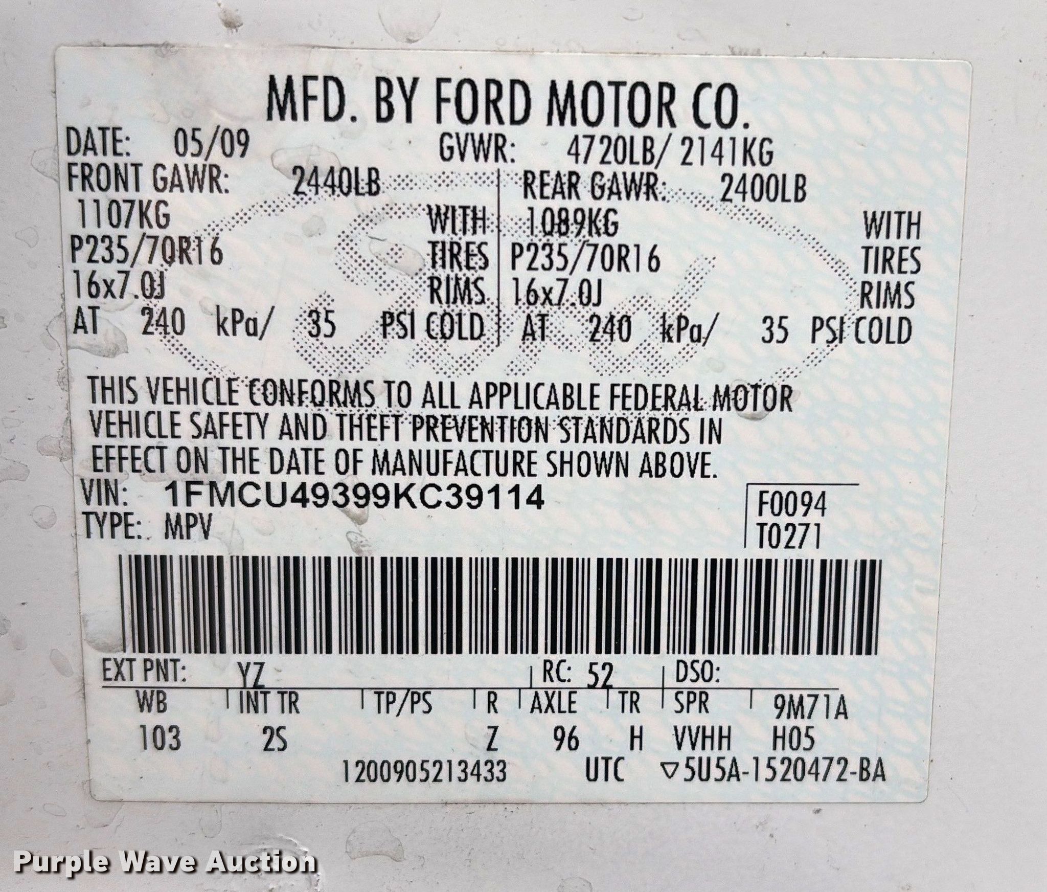 Purple Wave is selling a used Passenger Vehicle in Oklahoma. This item is a 2009 Ford Escape SUV with the following: Miles: 172,305 on odometer, VIN: 1FMCU49399KC39114