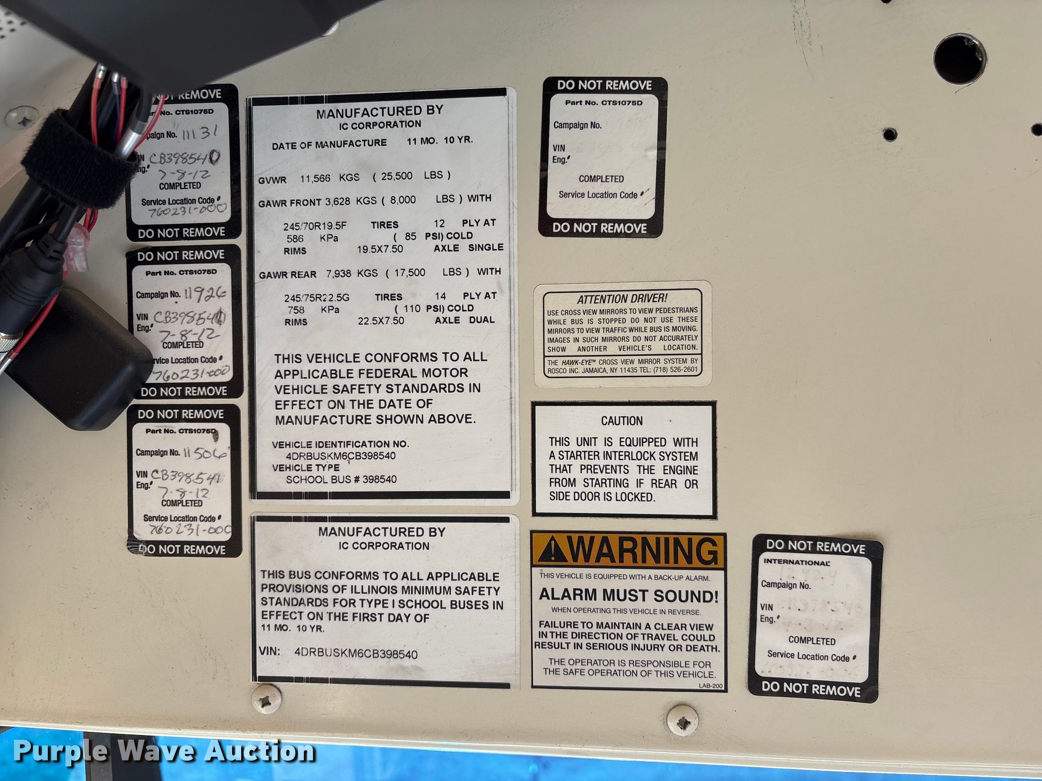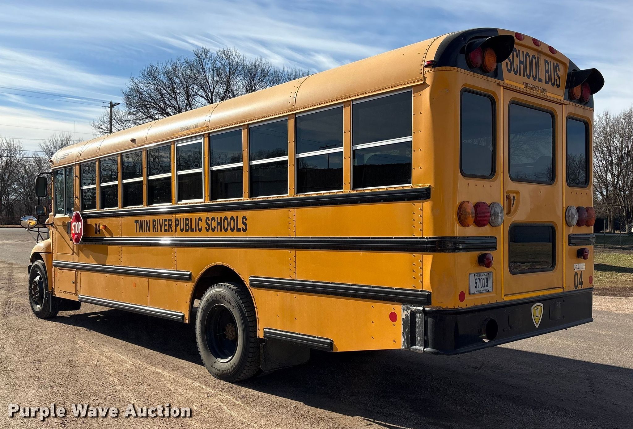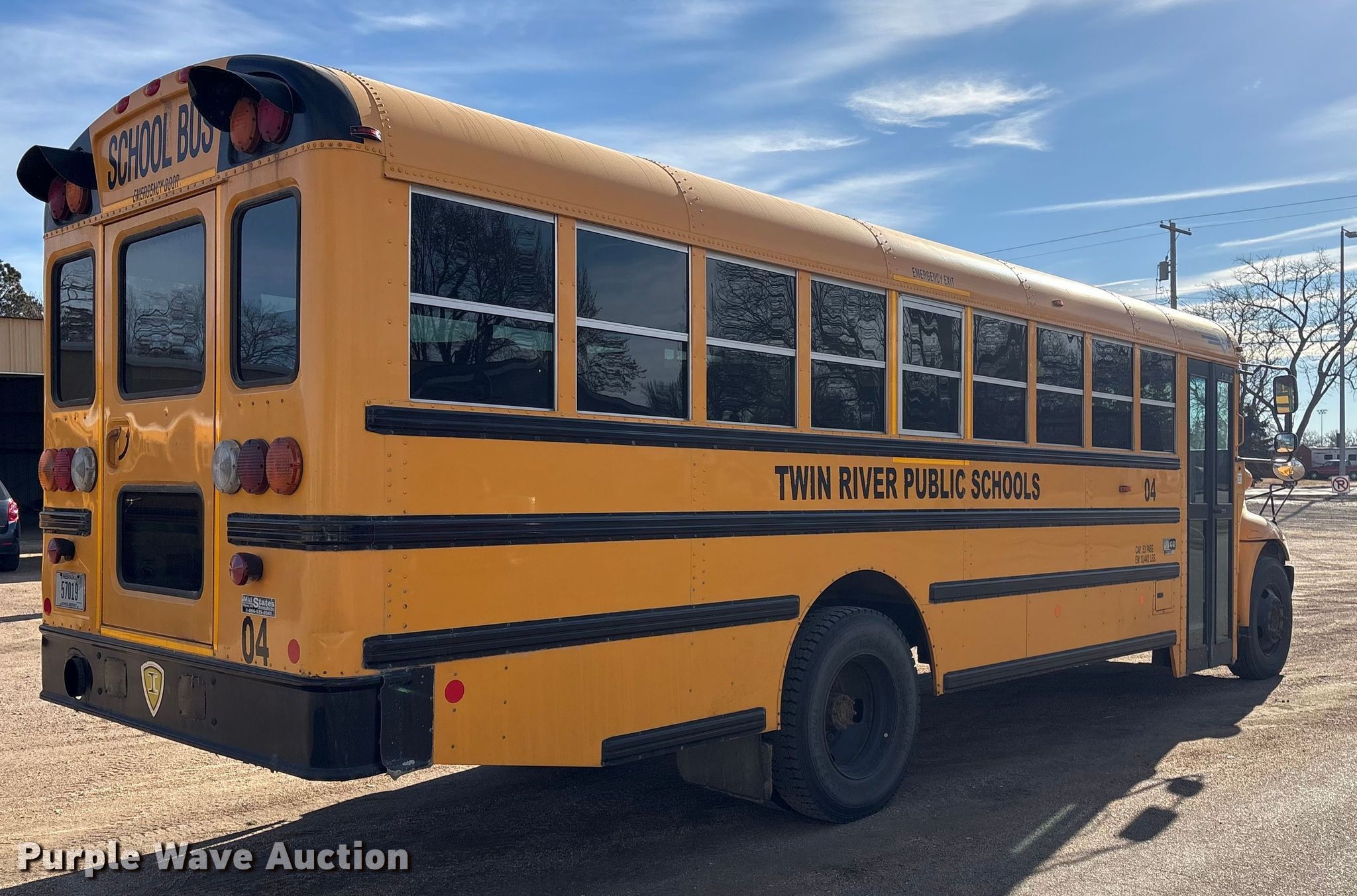 2012 IC PB105 school bus. Miles: 115,845 on odometer, Hours: 4,404 on meter, VIN: 4DRBUSKM6CB398540, Unit #: 04. Engine International Maxxforce 7, Displacement: 6.4L, Cylinders: 8, Fuel type: Diesel. Transmission Automatic. Chassis Axles: Single, Suspension: Spring, Brakes: Hydraulic, GVWR: 25,500 lbs. Interior Heat, Auxiliary controls, Passengers: 53, Safety Vision #4000-HVR camera system (2) cameras. Tires Front: 275/89R22.5, Rear: 10R22.5. Nebraska title. Title distribution may be delayed up to 14 days from verification of funds. Twin River Public Schools. Genoa, NE 68640