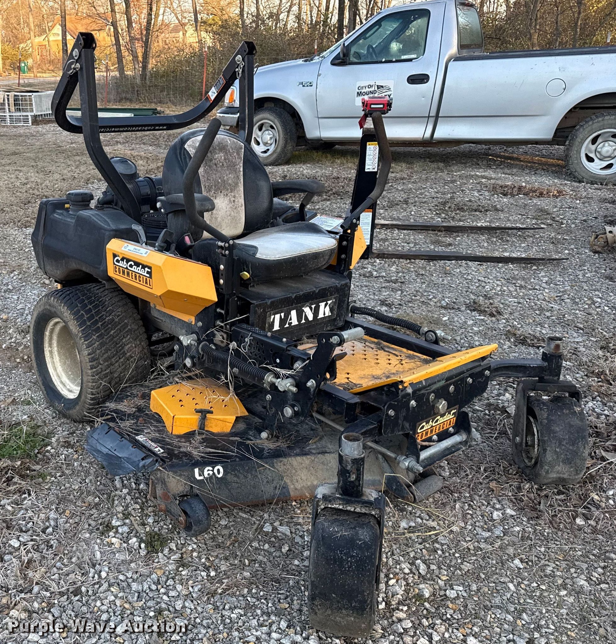 Cub Cadet Tank ZTR lawn mower. Cutting width: 60". Engine Kohler, Cylinders: 2, Fuel type: Gas. Transmission Hydrostatic. Tires Front: 13x6.50-6, Rear: 24x12.00-12. Notes Non-operational unit. City of Mound Valley, KS. Mound Valley, KS 67354