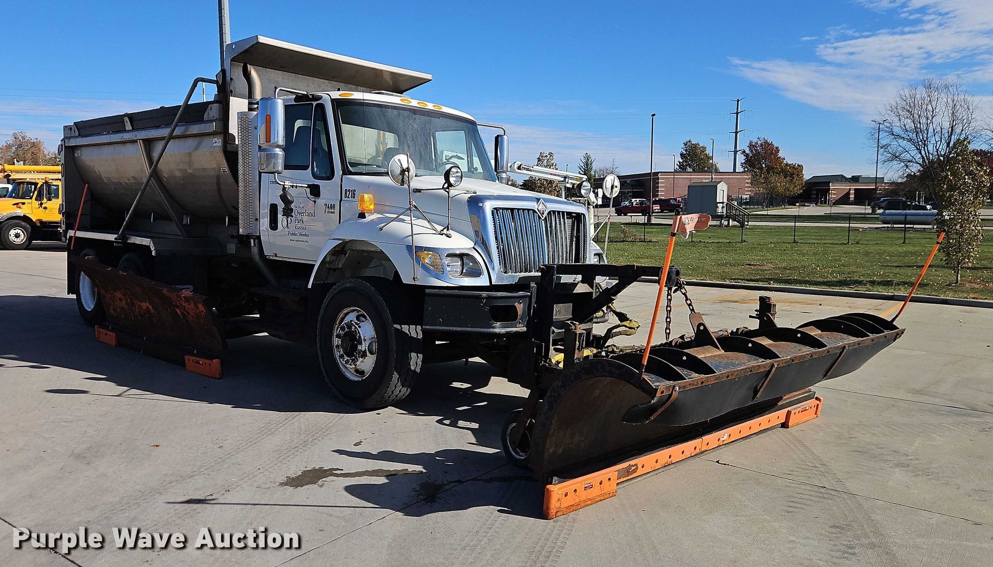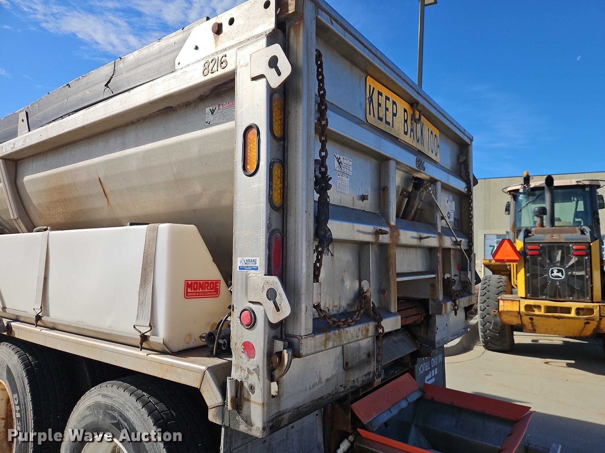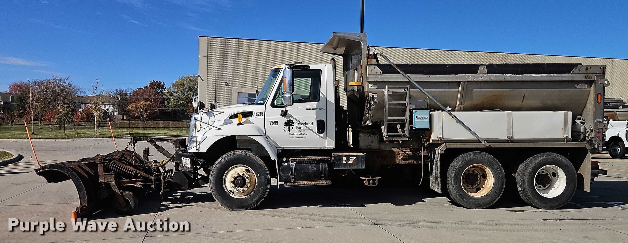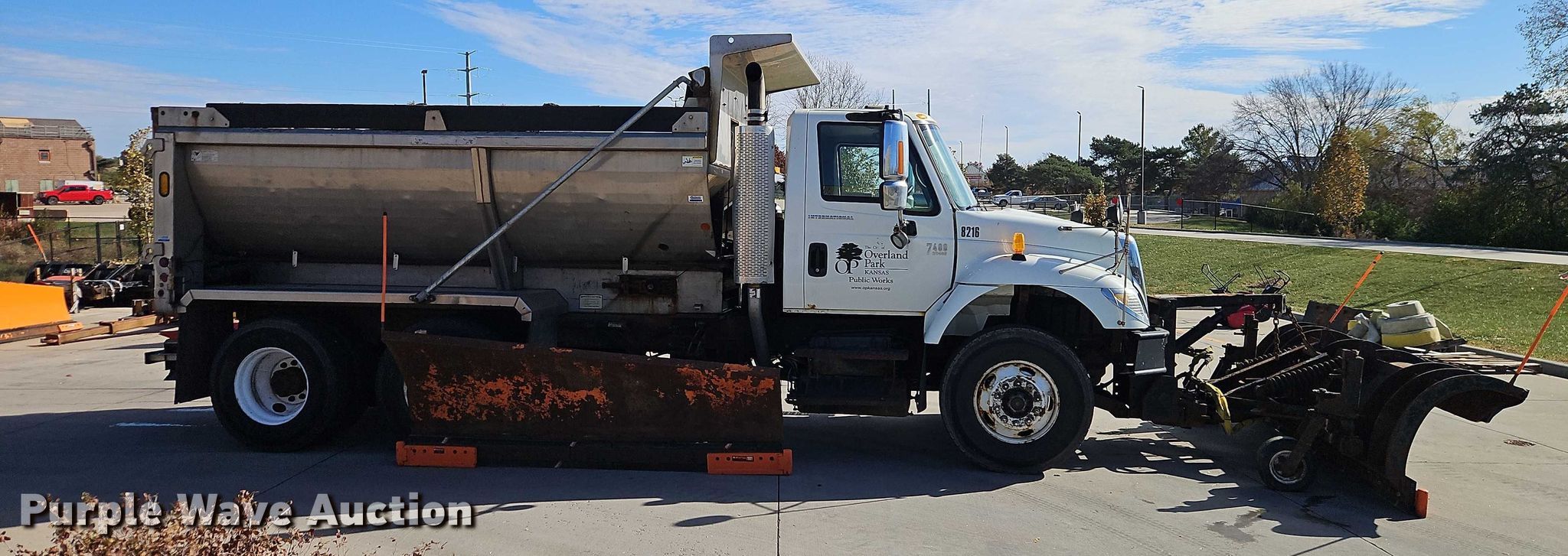 2007 International 7400 dump truck. Miles: 119,516 on odometer, Hours: 8,157 on meter, VIN: 1HTWGAAT67J441627, Unit #: 8216. Engine International DT466, Displacement: 7.6L, Cylinders: 6, Fuel type: Diesel. Transmission Allison, Automatic. Chassis Axles: Tandem, Differential lock: Inter-axle, Suspension: Spring over walking beam, Brakes: Air, PTO, Wheelbase: 490". Interior AC, Heat, Cruise control. Features Bed Dump bed, Length: 14', Width: 96", Side height: 40", Side board height: 9", Bed type: Barrel, Roll tarp, Ram: Single, End gate: Air operated, Spreader Monroe, Plow Monroe MP36R11, Width: 132", Mid-mount plow Monroe, Width: 108". Tires Front: 315/80R22.5, Rear: 11R22.5. Notes Dash warning indicator: Check engine, Jump start required during on-site data collection, Lift cylinder leak. Kansas title. Title distribution may be delayed up to 30 days from verification of funds. City of Overland Park, KS. Overland Park, KS 66213
