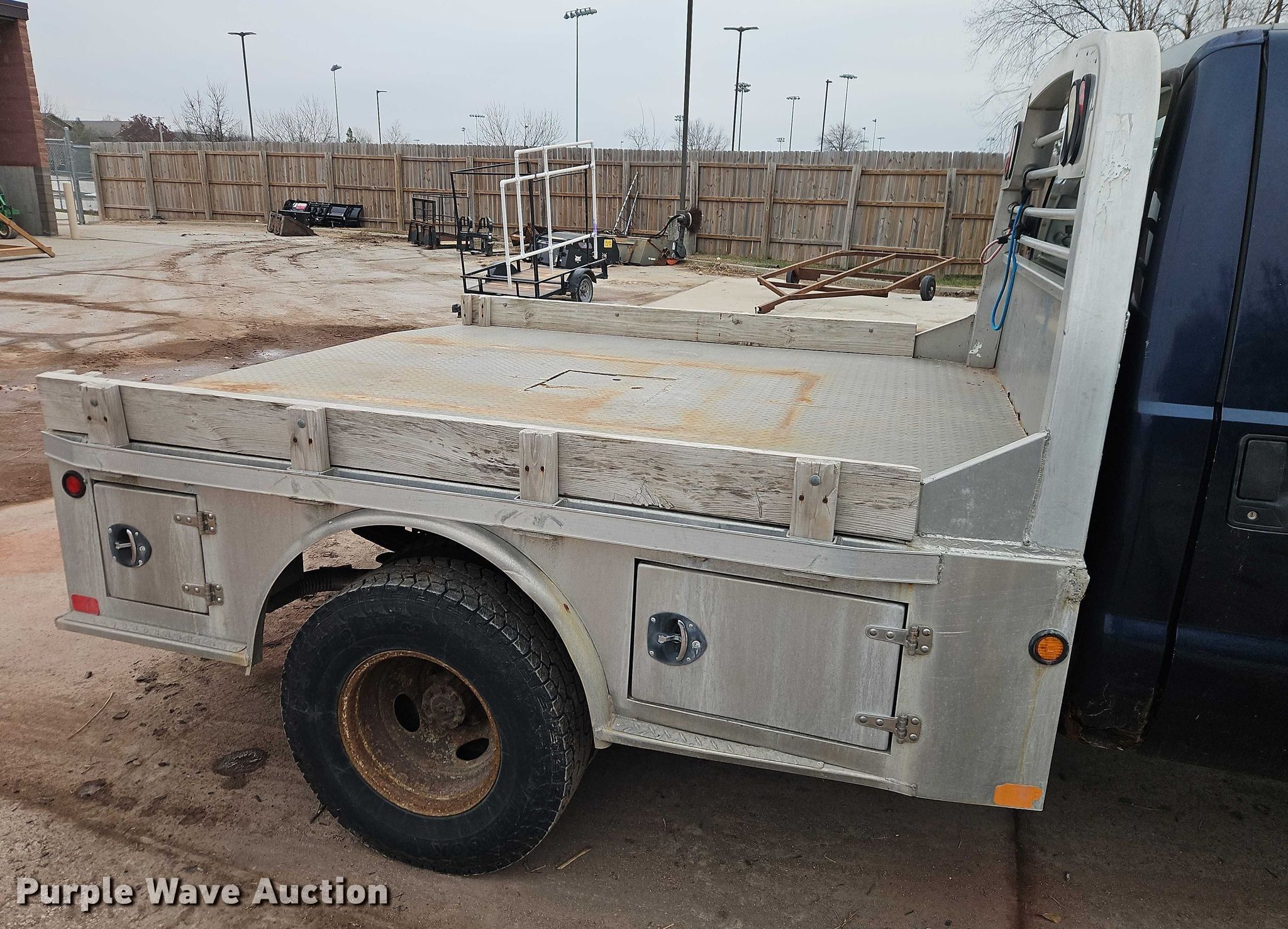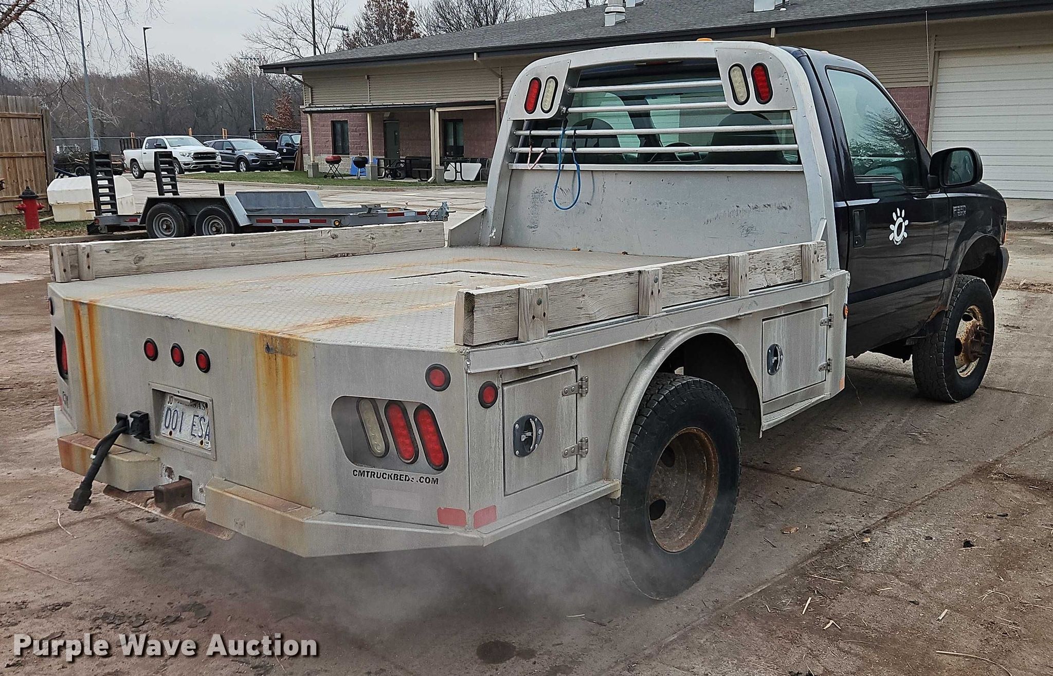 2004 Ford F350 Super Duty XL flatbed pickup truck. Miles: 59,555 on odometer, VIN: 1FTWF33SX4EA16299. Engine Displacement: 6.8L, Cylinders: 10, Fuel type: Gas. Transmission Automatic, Four wheel drive. Interior AC, Heat, Cruise control, Brake controller. Features Bed Flatbed, CM Beds, Length: 9', Width: 96", Hitch: Gooseneck. Tires Size: 235/85R16. Notes Dash warning indicator: fuel level low, Rust damage, Possible suspension issues, Unit must be towed or hauled. Kansas title. Title distribution may be delayed up to 14 days from verification of funds. Overland Park, KS 66221