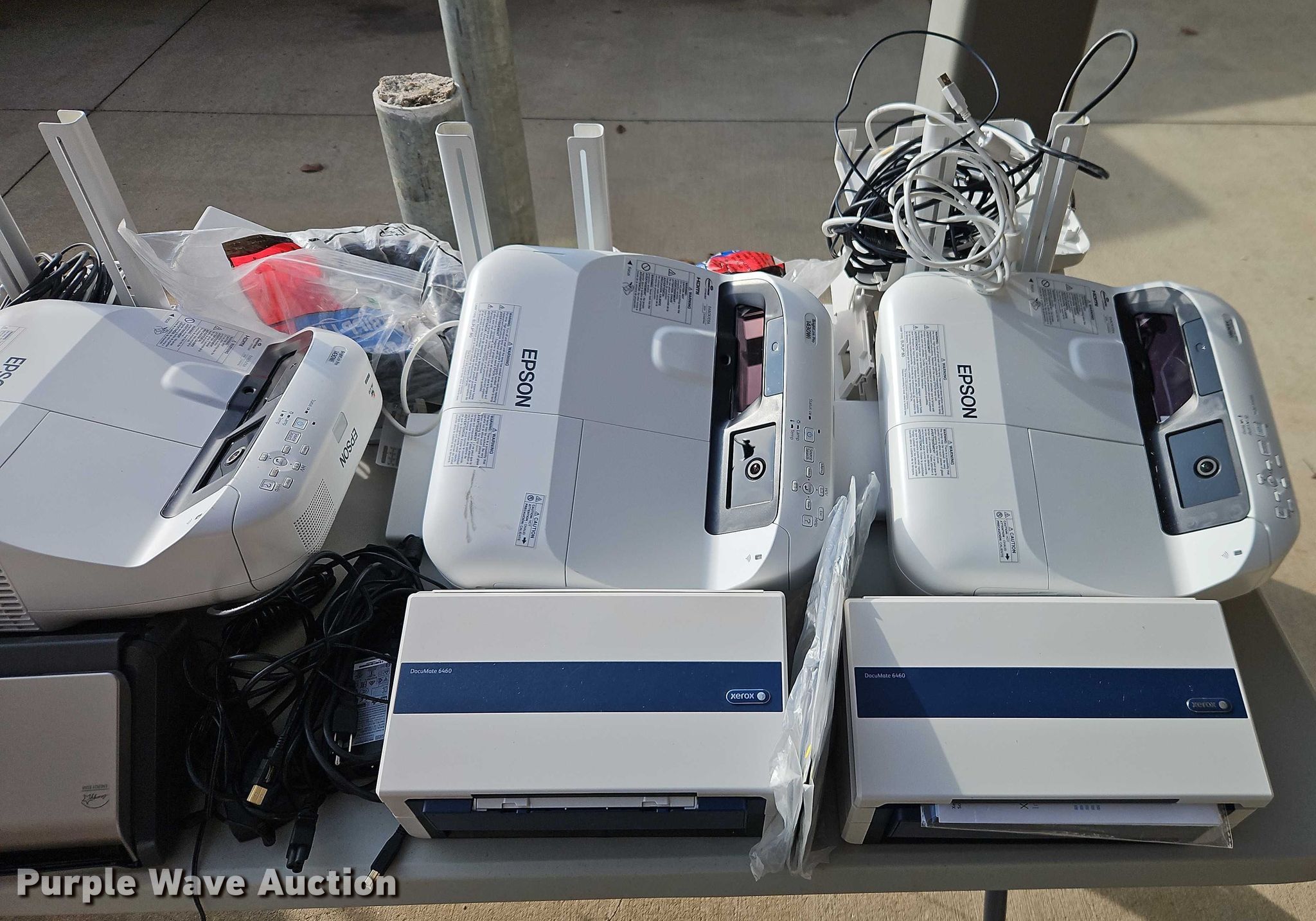 Purple Wave is selling a used Electronics in Kansas. This item is a Electronics with the following: (8) projectors, (3) scanners