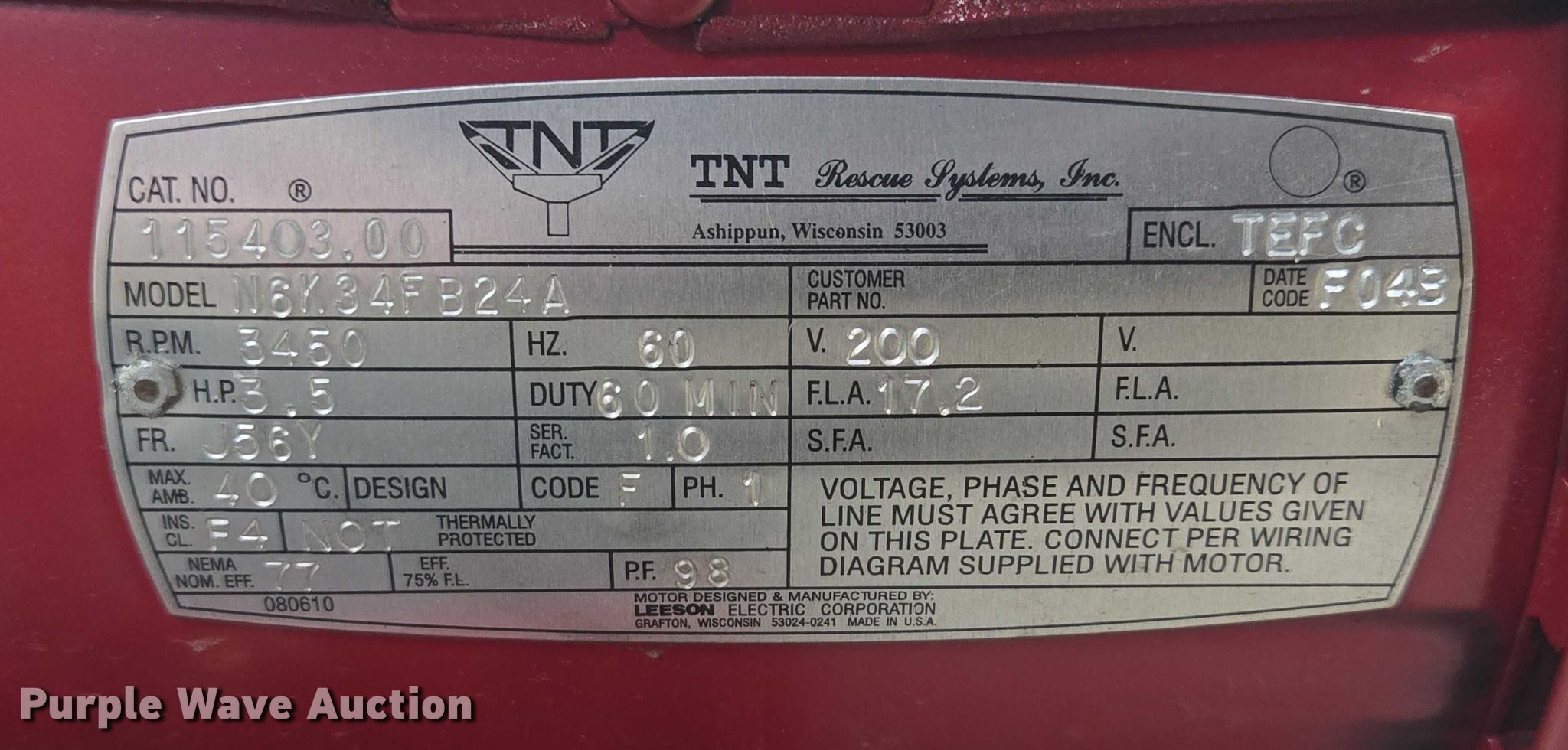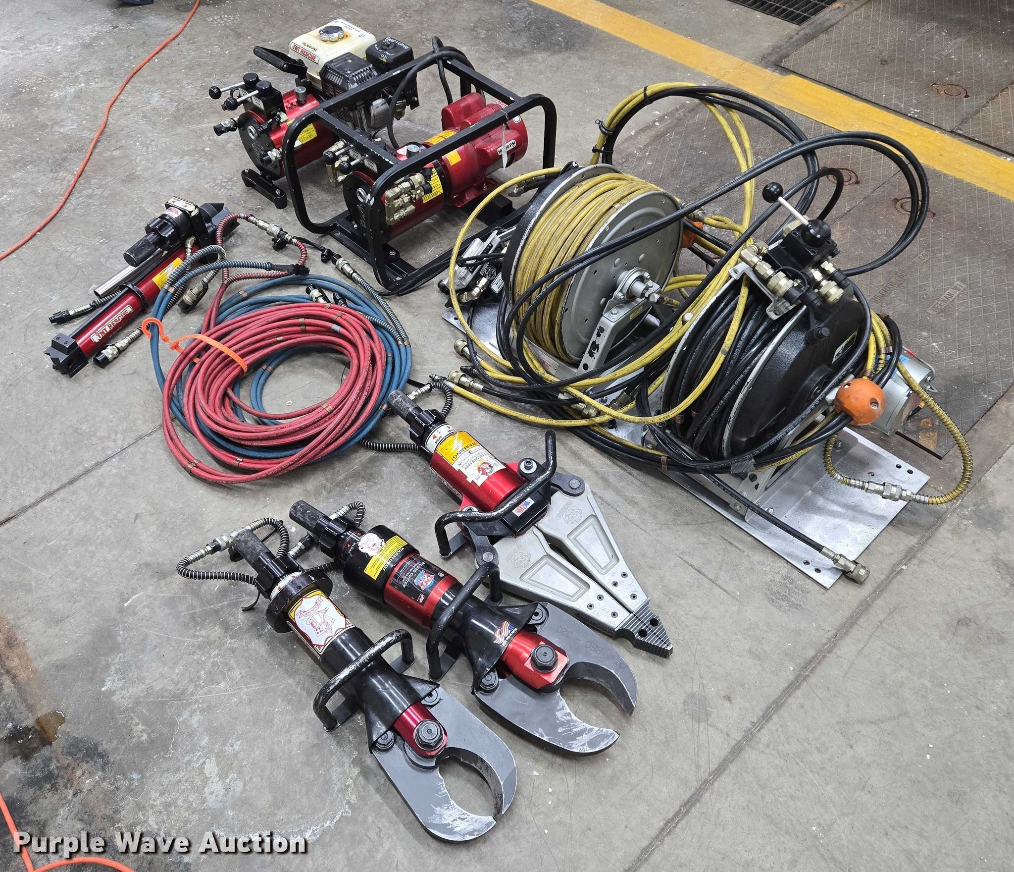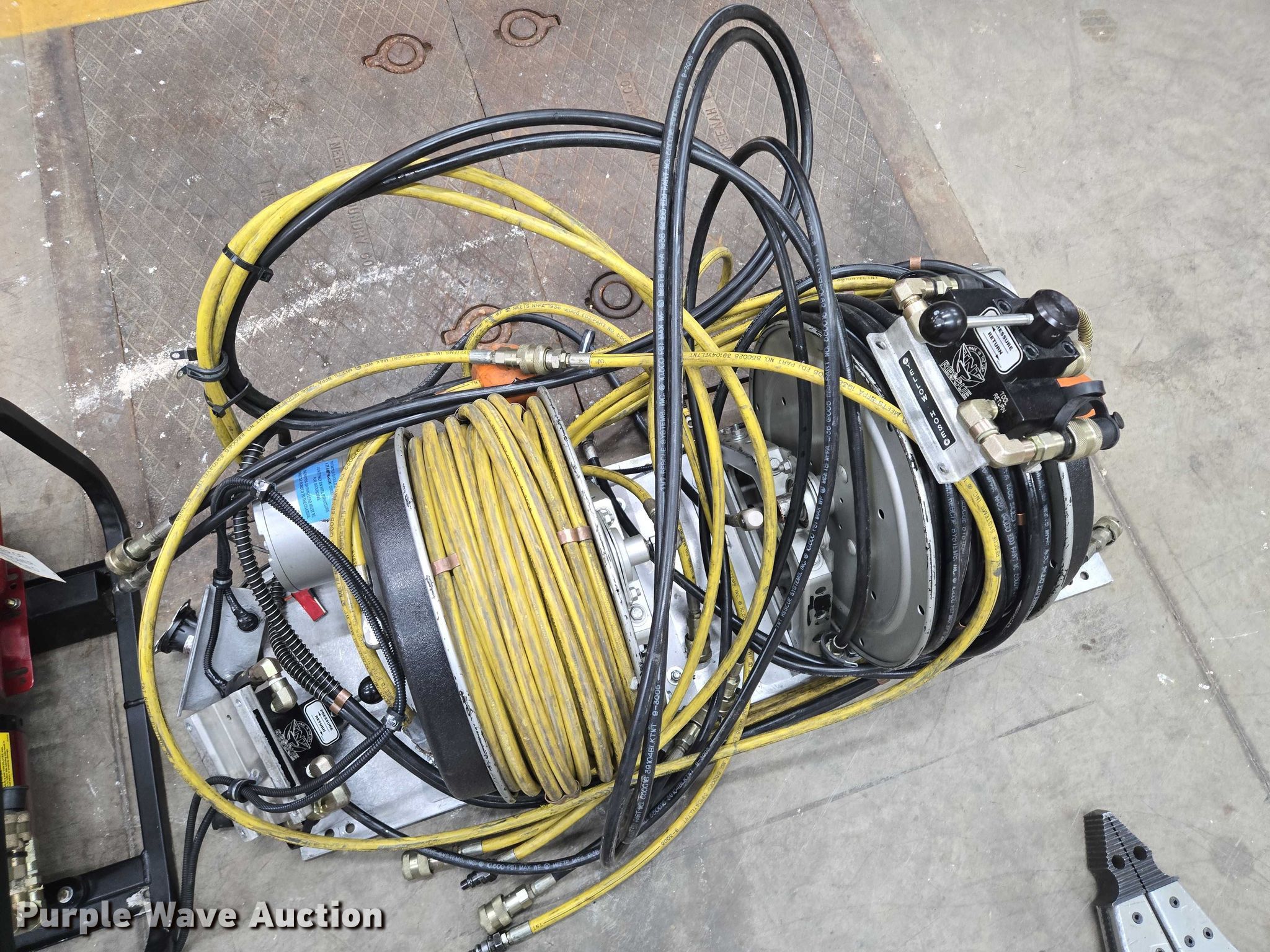 Purple Wave is selling a used Tools in South Dakota. This item is a TNT rescue equipment with the following: (2) hose reels, Lengths:, 50', 200',, BFC-320 cutter, Deadwood cutter, S-100 spreader, Width: 18", R-Series ram, Ram length: 18", Pump, Volts: 220, Pump, Honda gas engine, HP: 6.5