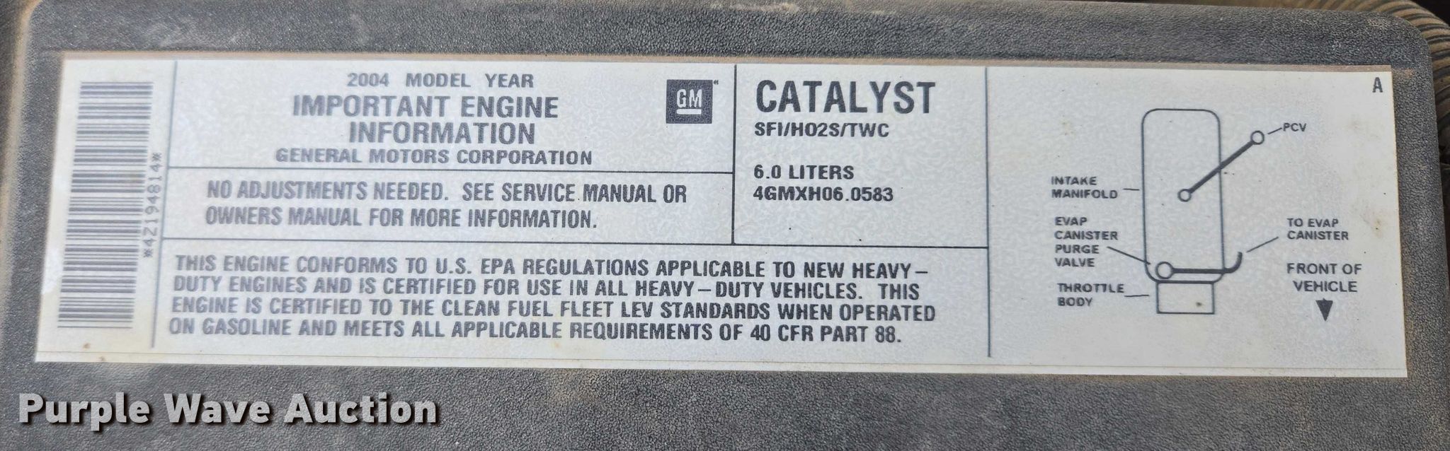 2004 Chevrolet Silverado 2500 Ext. Cab pickup truck. Miles: 111,105 on odometer, VIN: 1GCGK29U74Z194814, Unit #: CL560. Engine Displacement: 6.0L, Cylinders: 8, Fuel type: Gas. Transmission Automatic, Four wheel drive. Interior AC, Heat, Power windows, Power locks, Cruise control. Tires Size: 245/75R16. Notes Engine issues, knocks. South Dakota title. Title distribution may be delayed up to 14 days from verification of funds. State of South Dakota. Waubay, SD 57273