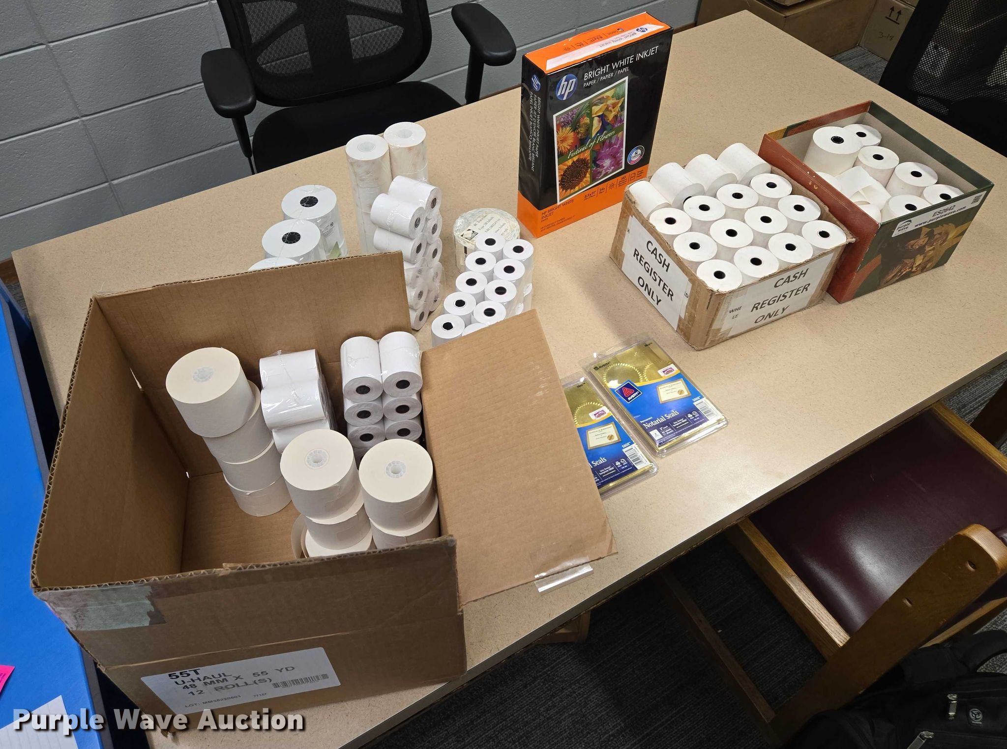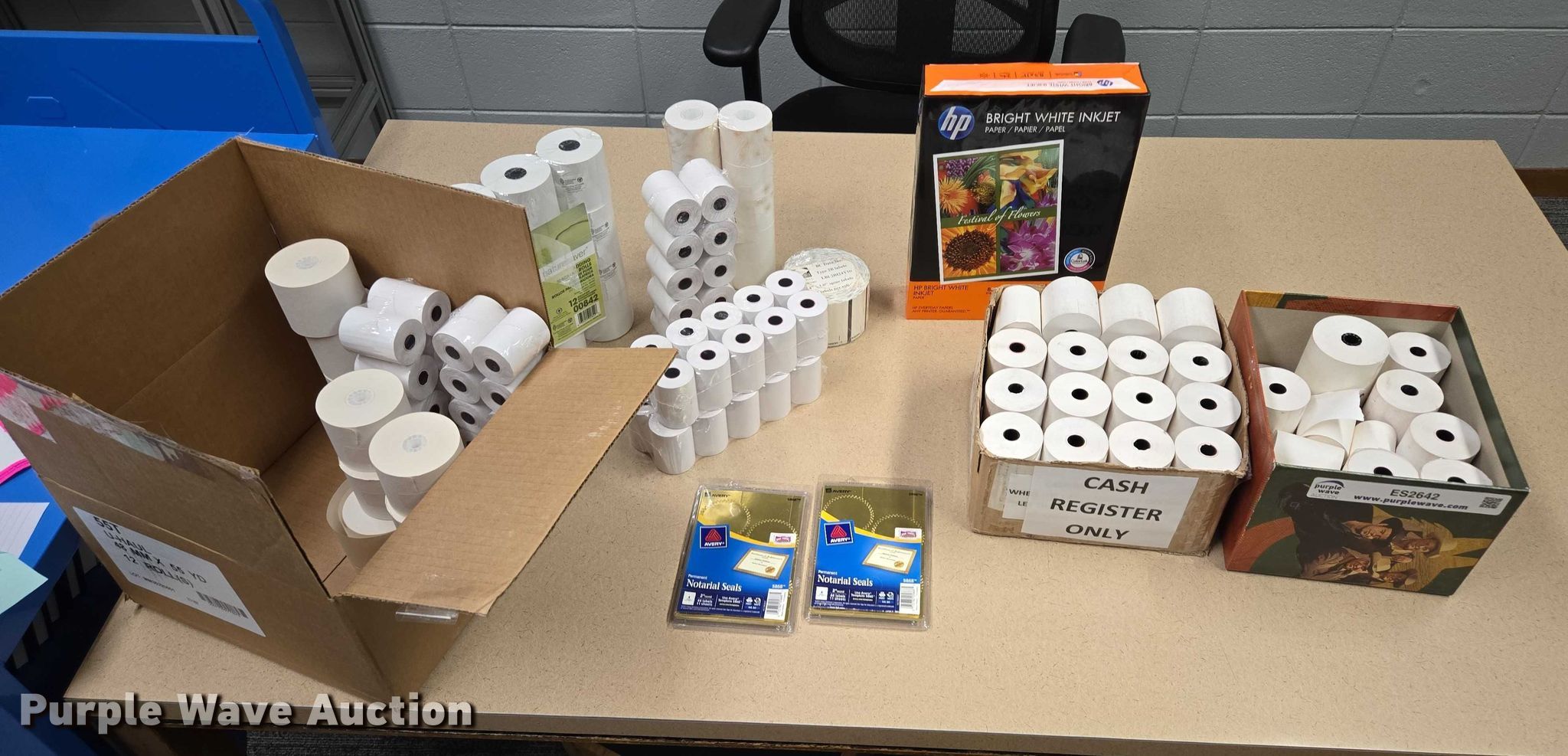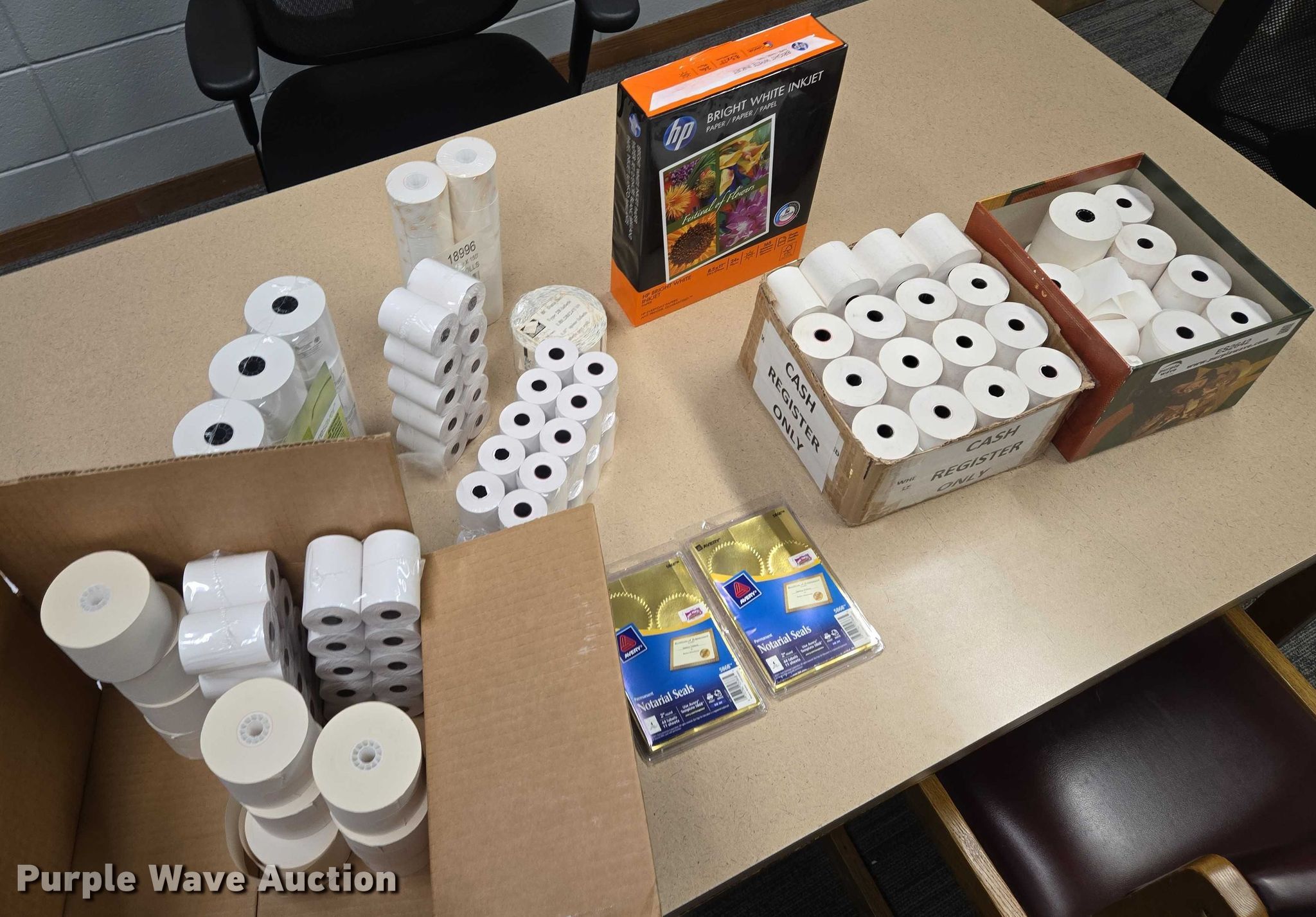 Take a look at this used Receipt paper rolls being sold on January 20th, 2026 in the Tuesday January 20 Government Auction. Take a look at all of the item information below or take a look at similar auctions for Office Supplies.