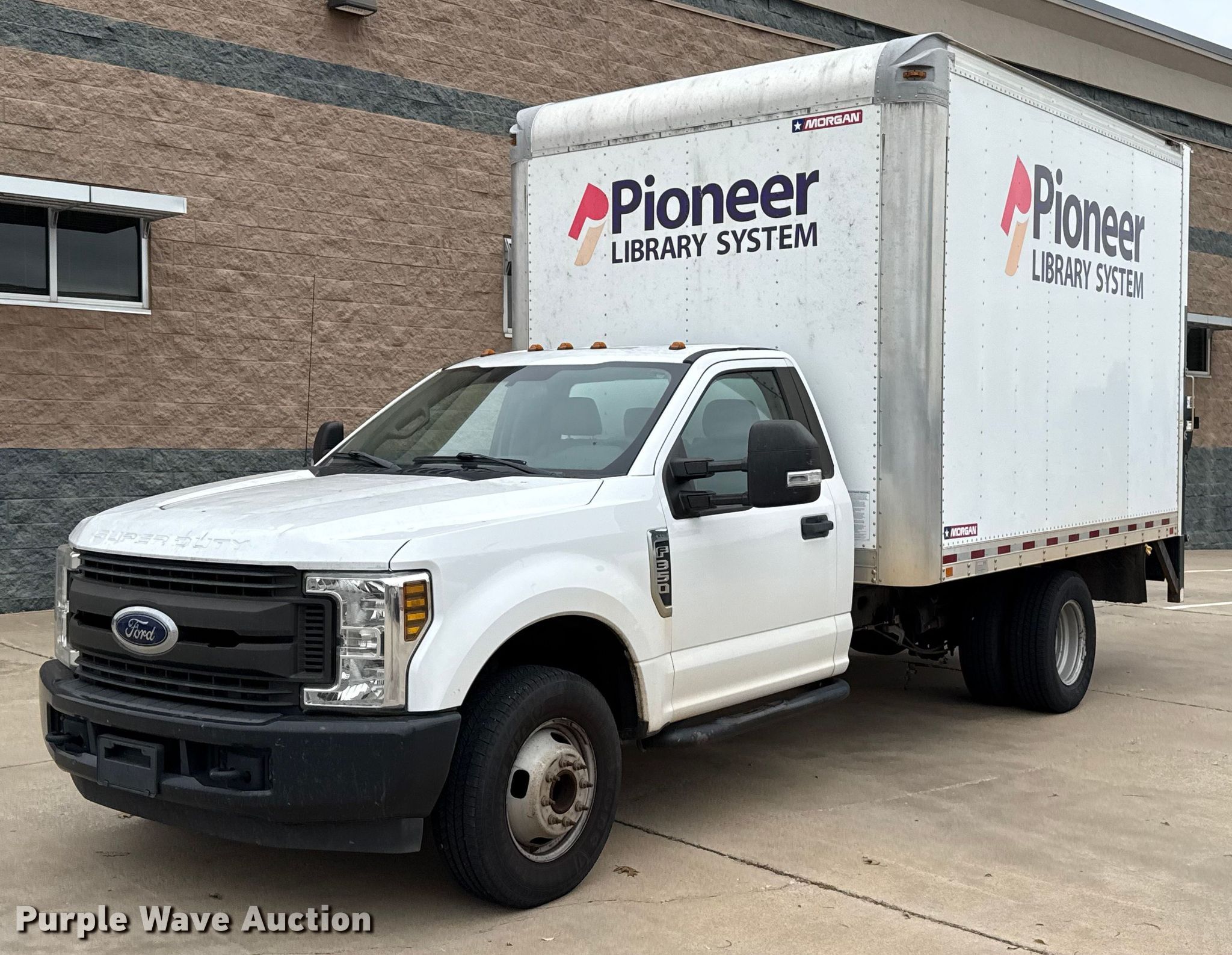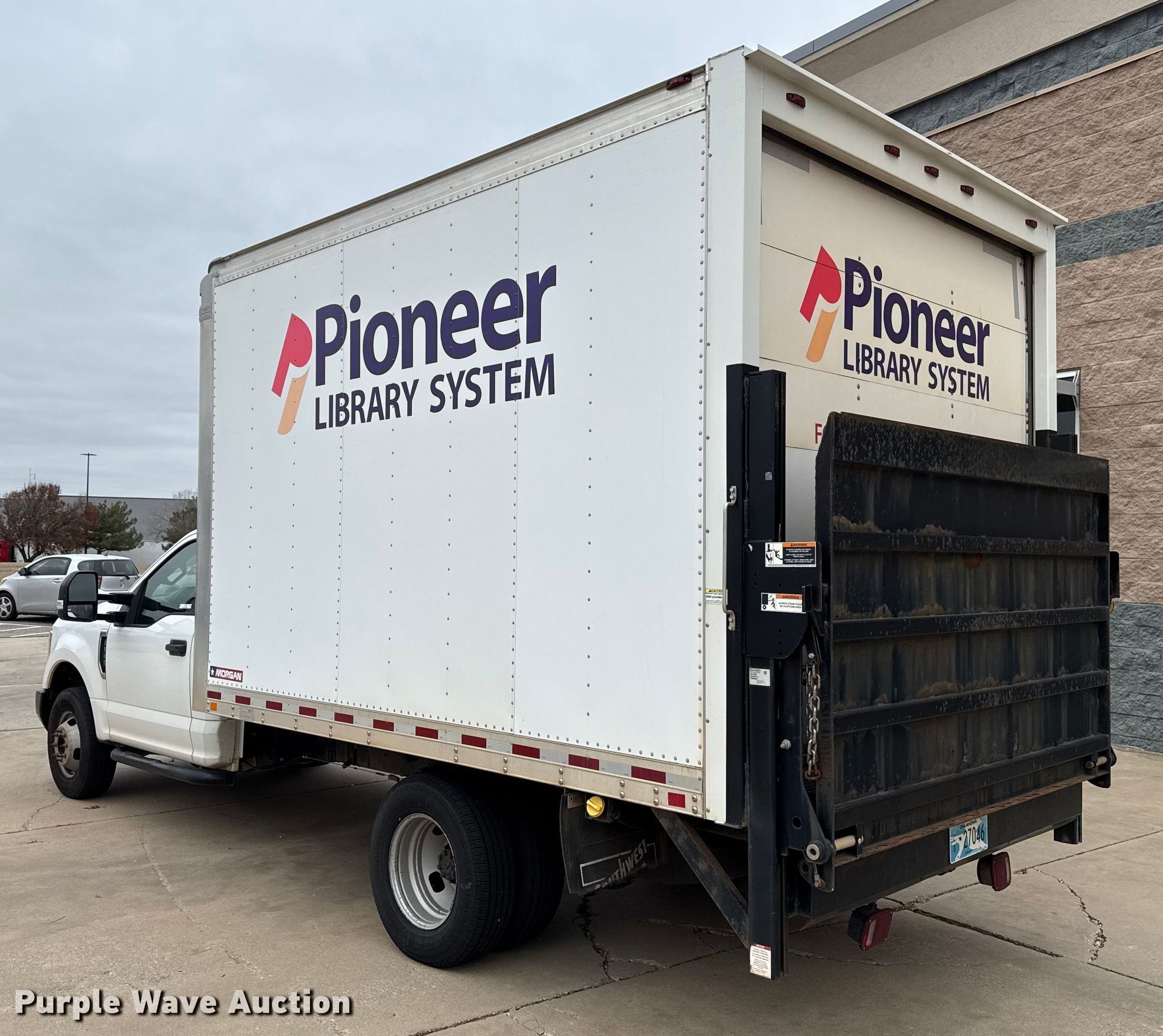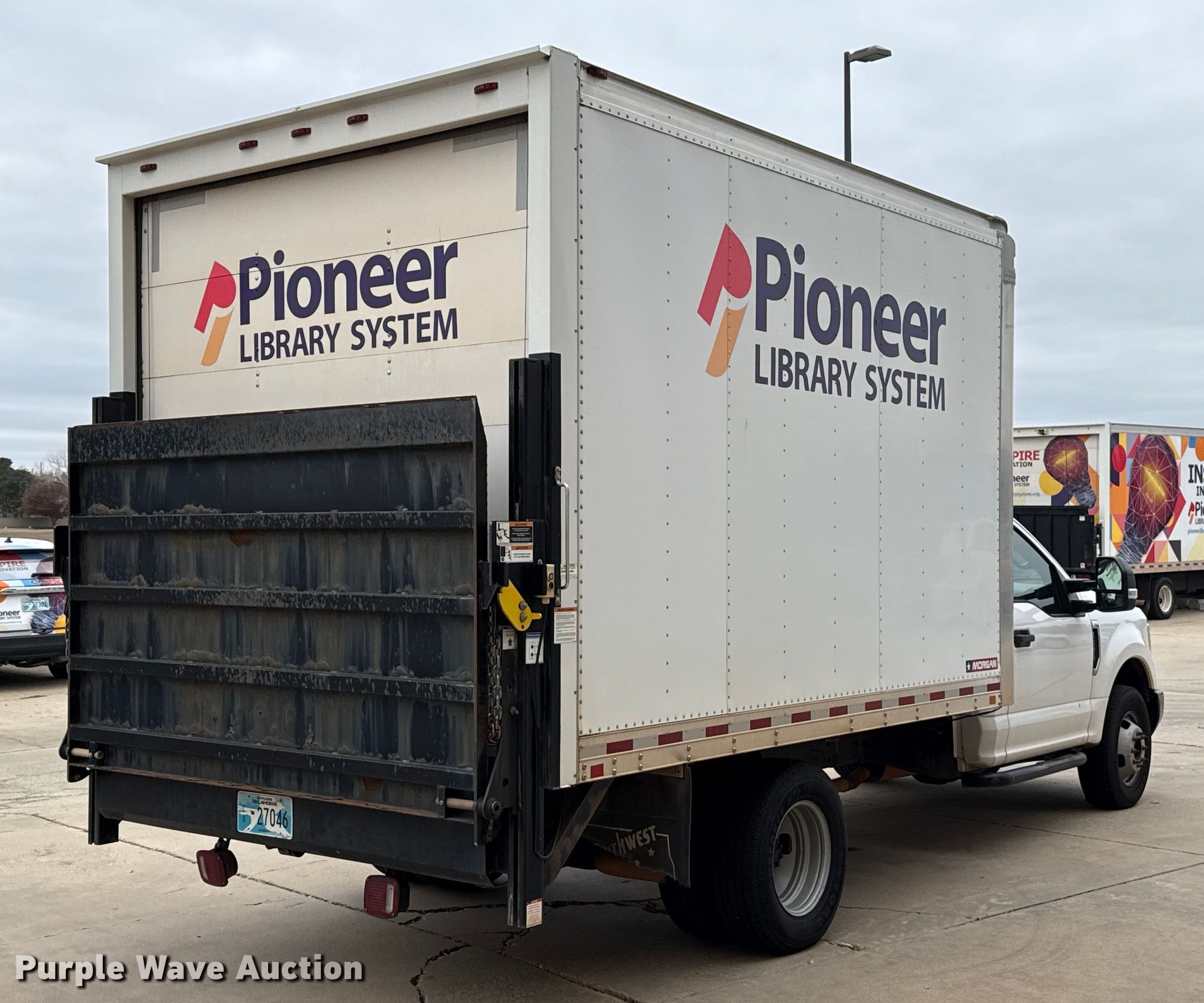2019 Ford F350 Super Duty XL box truck. Miles: 214,935 on odometer, VIN: 1FDRF3G68KEC62660. Engine Ford, Displacement: 6.2L, Cylinders: 8, Fuel type: Gas. Transmission Automatic. Chassis Suspension: Spring, Brakes: Hydraulic, GVWR: 14,000 lbs, Wheelbase: 169". Interior AC, Heat, Heated mirrors, Power windows, Power locks, Cruise control, Backup camera, Auxiliary controls. Features Bed Box bed, Morgan GVSD09112096, Serial: MTX53793-001, Length: 12' 6", Width: 96", Height: 96", Floor: Wood, End gate lift, Palfinger ILM3000, Capacity: 3,000 lbs. Tires Size: LT245/75R17. Notes Decals will be removed prior to auction, Dash warning indicator: TPMS, Hail damage. Oklahoma title. Title distribution may be delayed up to 30 days from verification of funds. Pioneer Library Systems. Norman, OK 73072