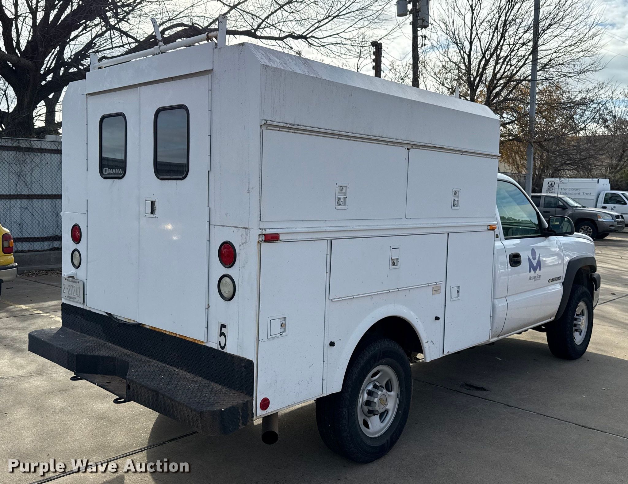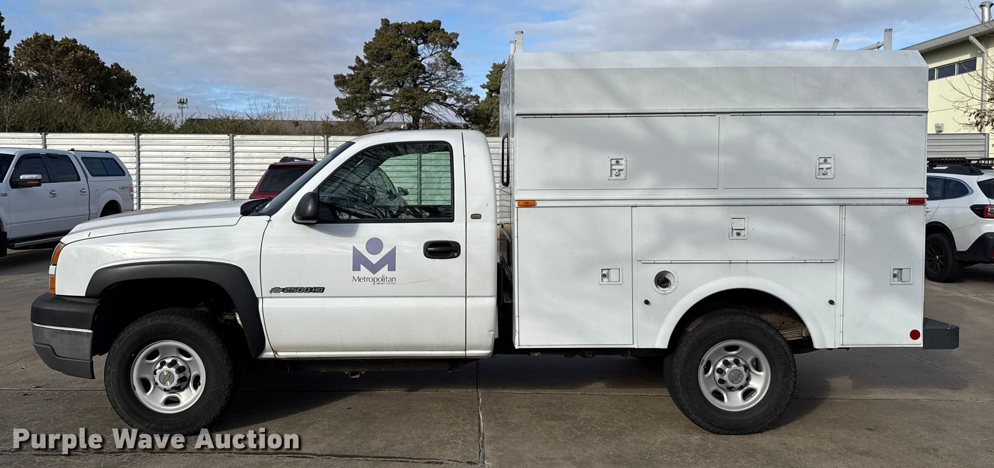 2005 Chevrolet Silverado 2500HD utility bed pickup truck. Miles: 104,950 on odometer, VIN: 1GBHC24U75E259957, Unit #: 31134. Engine Displacement: 6.0L, Cylinders: 8, Fuel type: Gas. Transmission Automatic. Interior AC, Heat, Cruise control. Features Bed Utility bed, Omaha Service Bodies, Serial: 40004, Length: 8', Width: 78". Tires Size: LT245/75R16. Notes Decals will be removed prior to auction, Contents not included. Oklahoma title. Title distribution may be delayed up to 30 days from verification of funds. Metropolitan Library System. 300 Northeast 50th Street. Oklahoma City, OK 73105