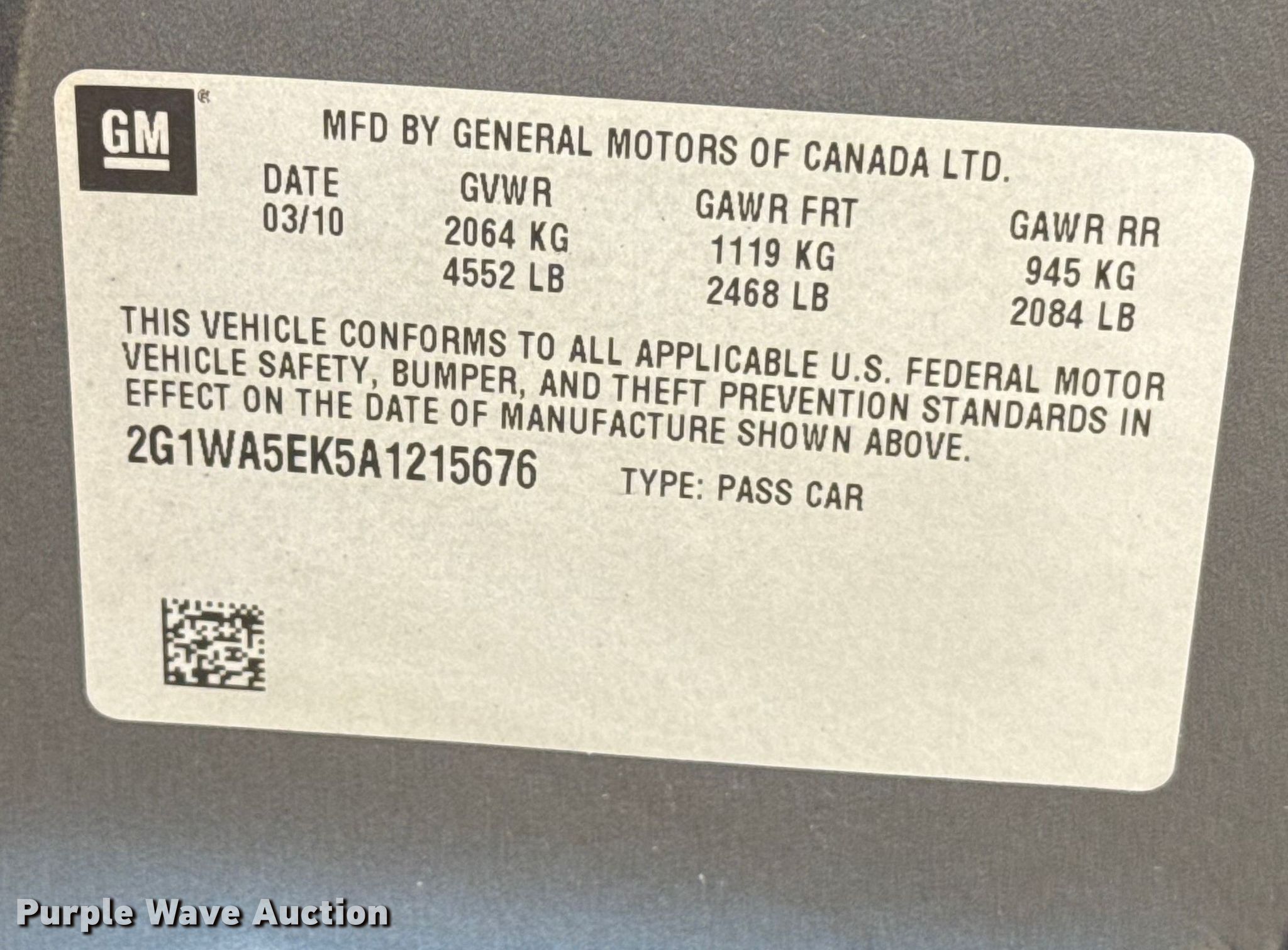 - VIN: 2G1WA5EK5A1215676