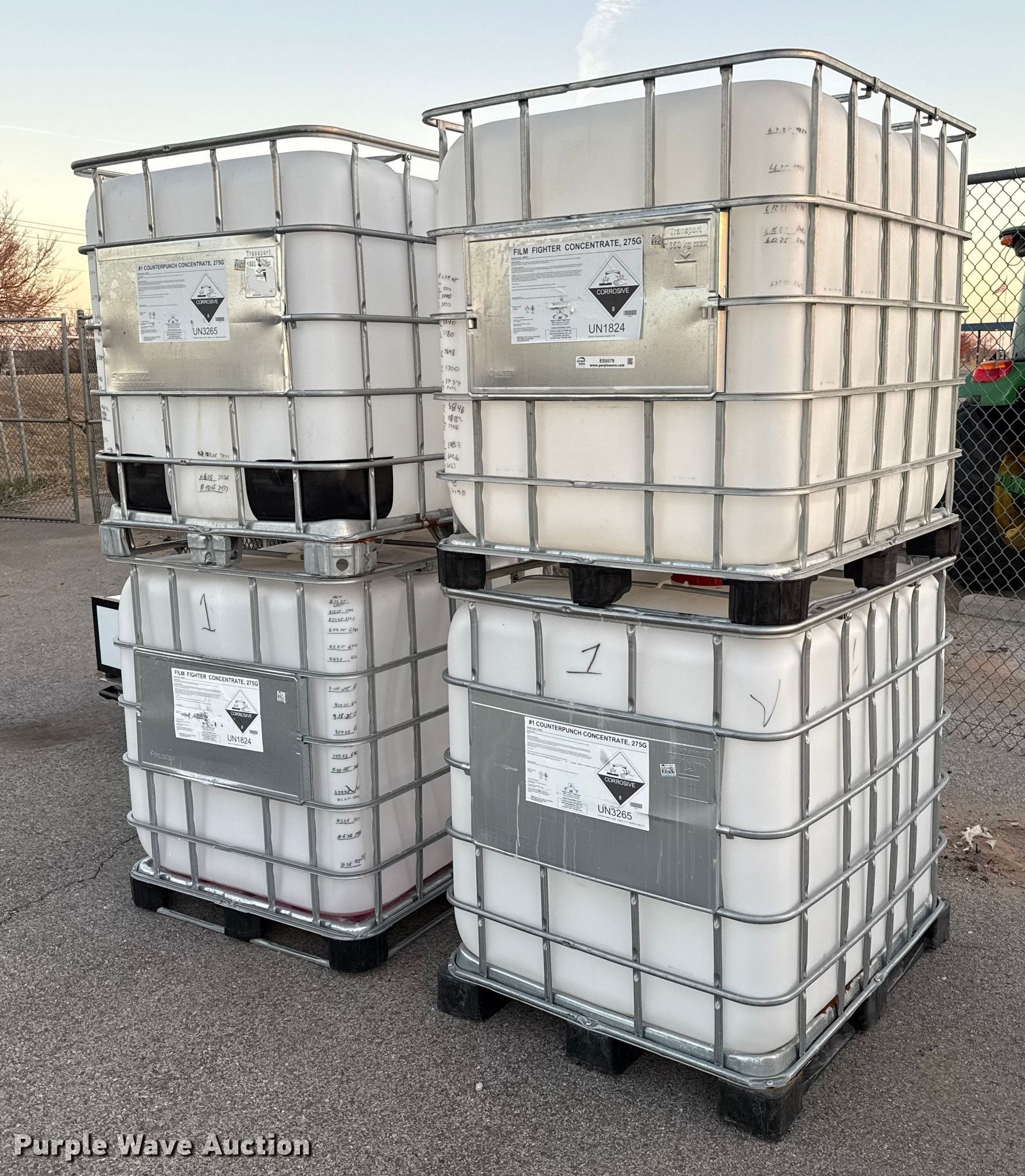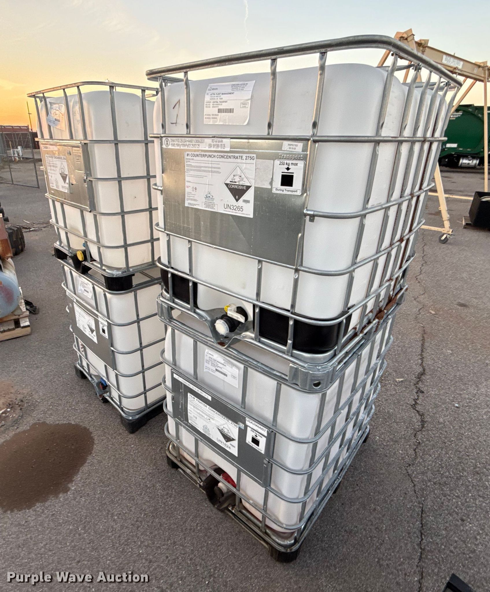 Purple Wave is selling a used Tanks in Oklahoma. This item is a (4) Poly totes with the following: Capacity: 275 gallons